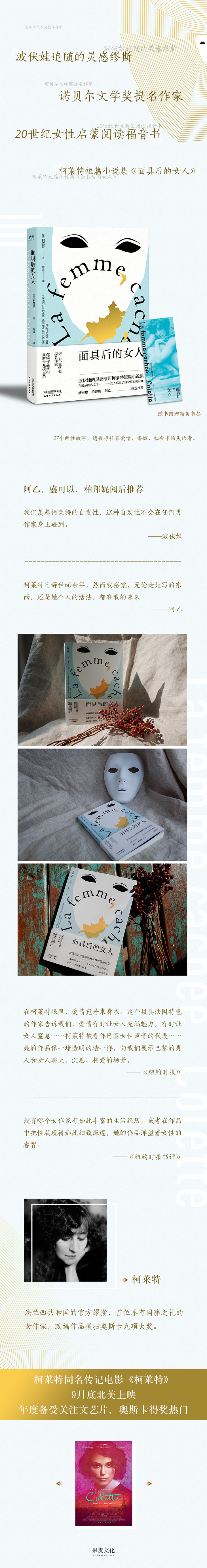 面具后的女人 柯莱特 著 诺贝尔文学奖提名 伏波娃 阿乙 盛可以 柏邦妮 推荐 短篇小说集 横扫奥斯卡九项大奖 外国小说 果麦图书
