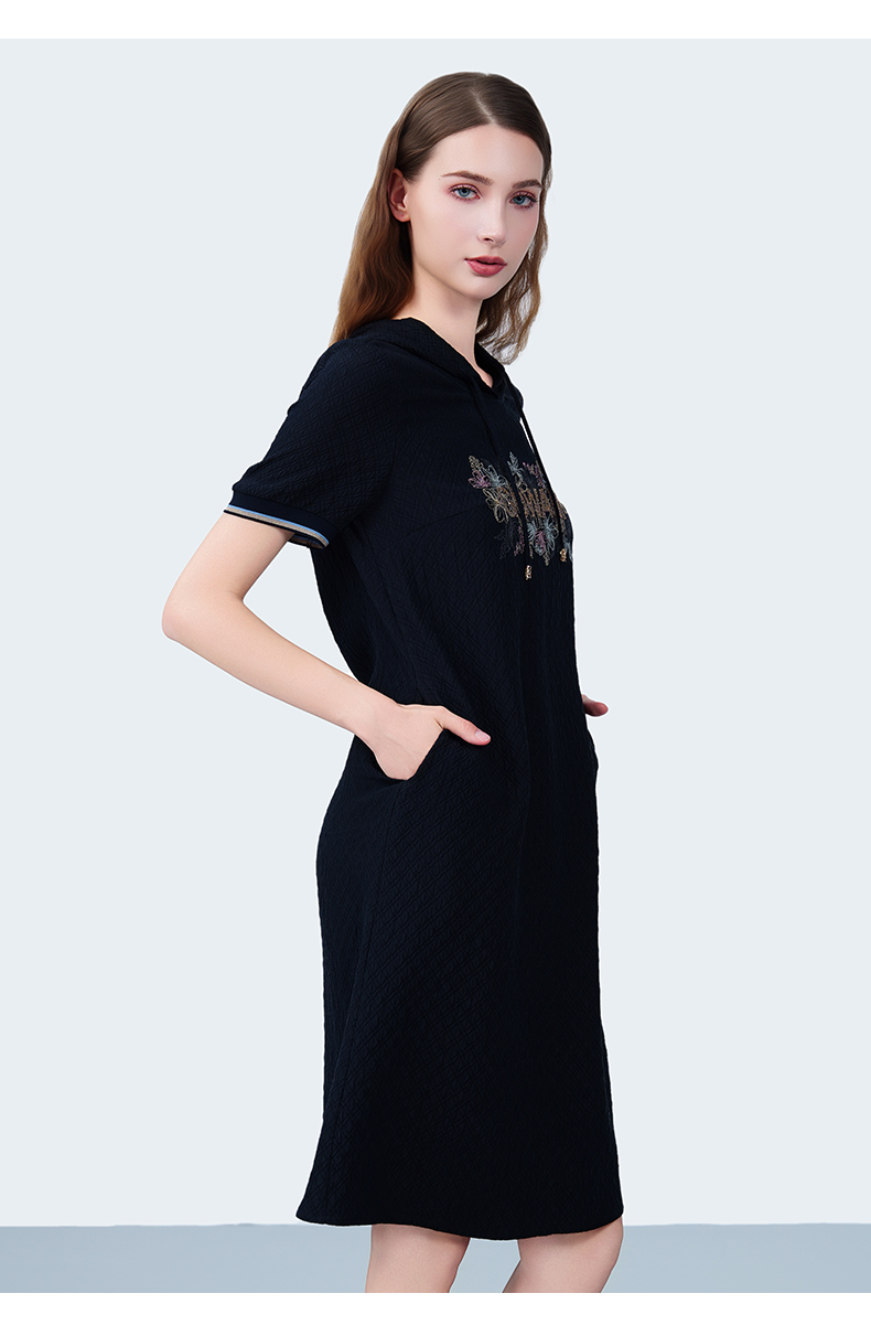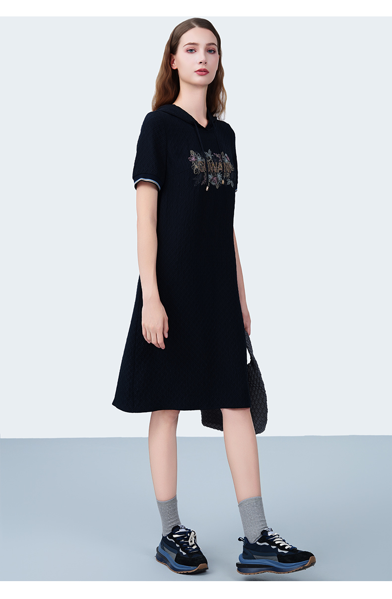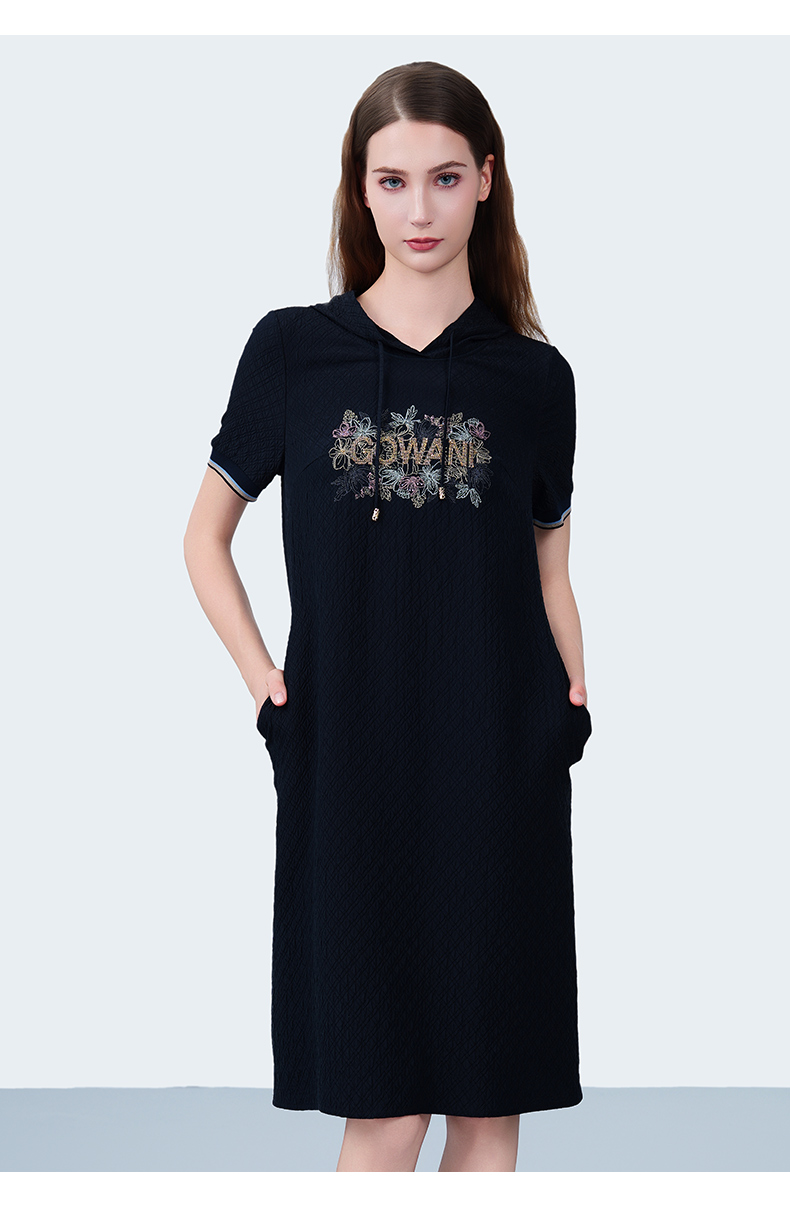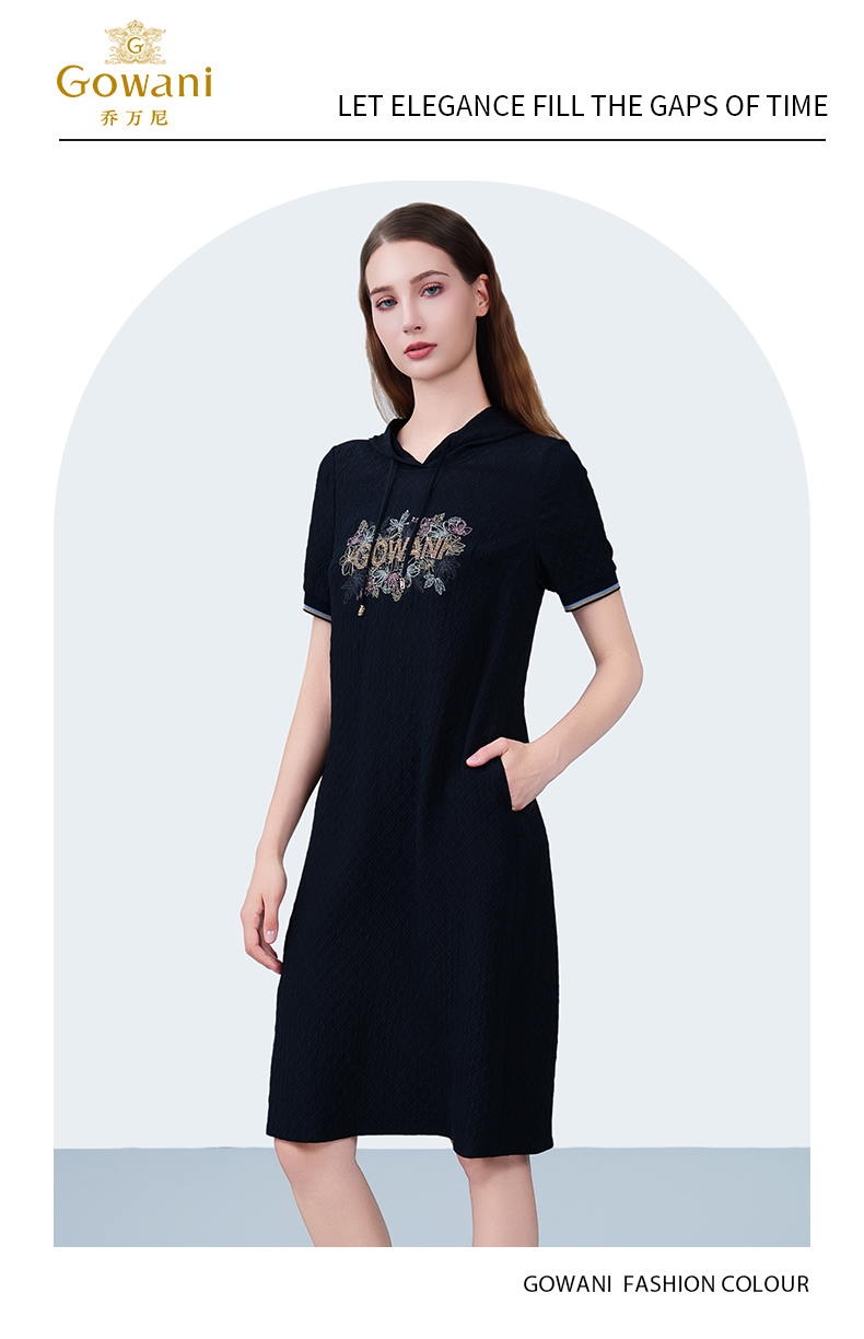 乔万尼2025新品休闲连帽100%真丝宽松连衣裙ED2E466