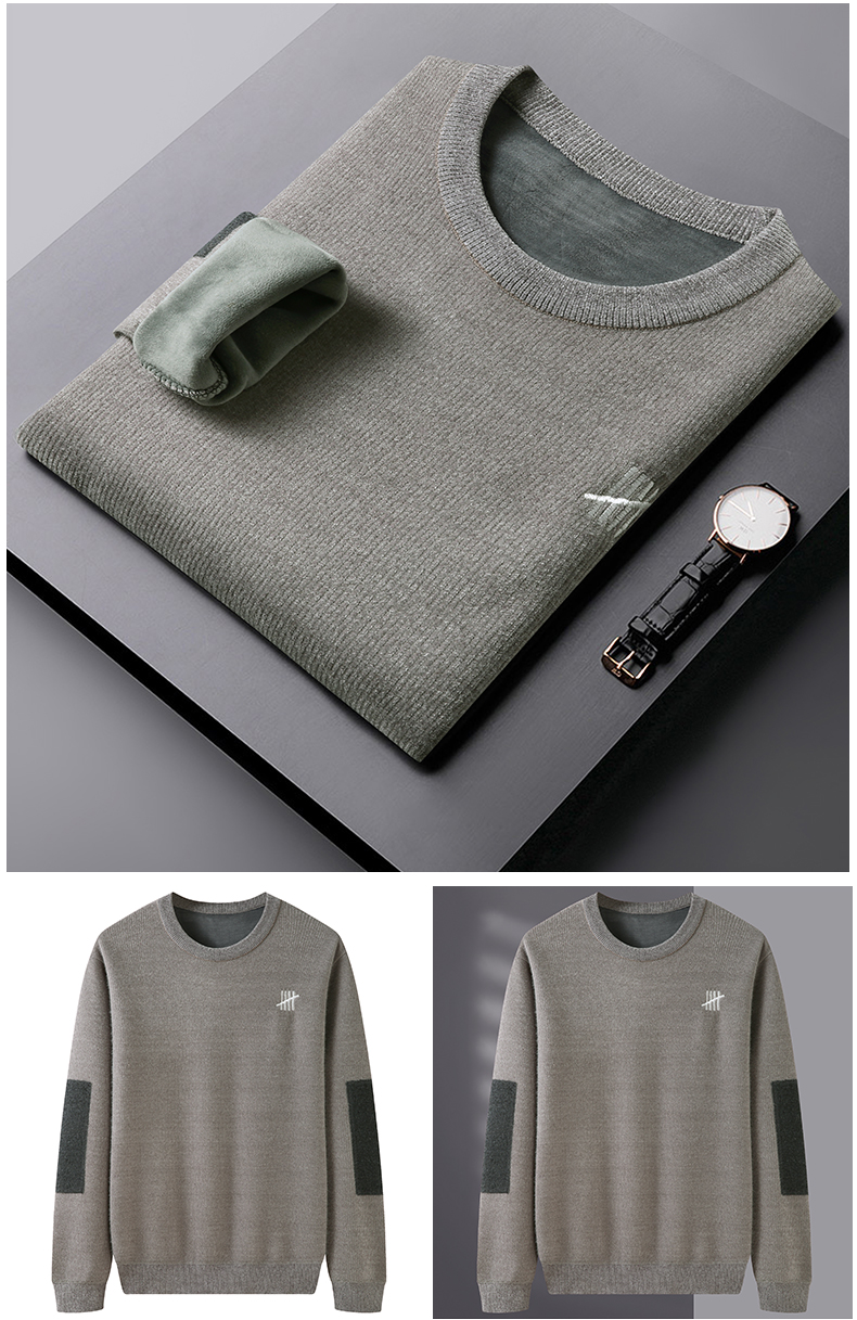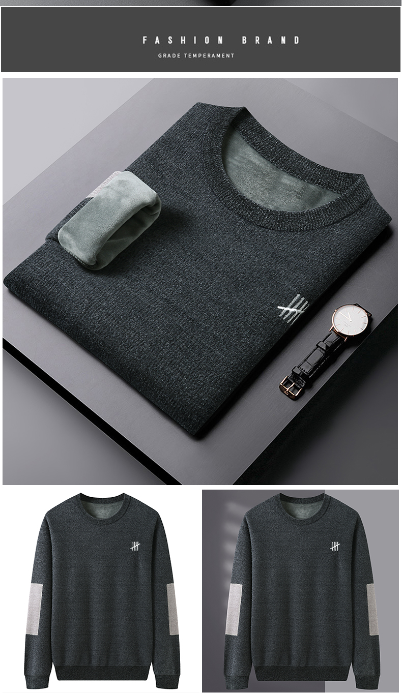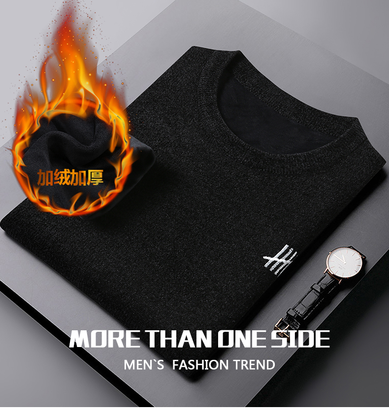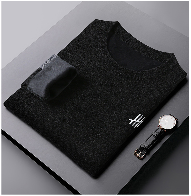 【圈】雪貂绒【新款DDS】大依优型大码男装加绒雪貂绒毛衣圆领毛衫针织衫休闲加肥加大男士胖子大码内搭上衣