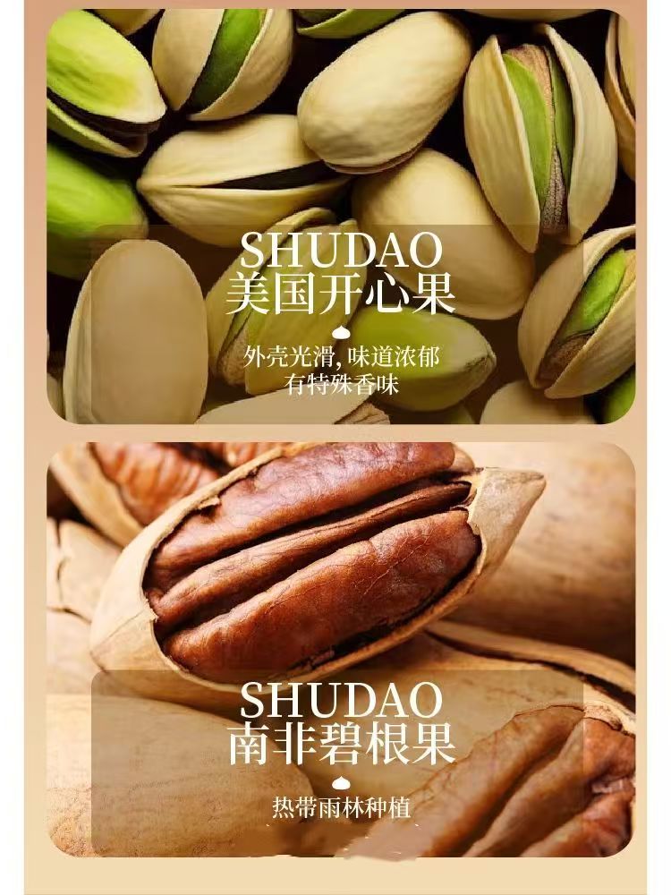 【甄选】熟道坚果脆脆夏威夷果山核桃碧根果开心果黑芝麻可可脆片120g*2罐