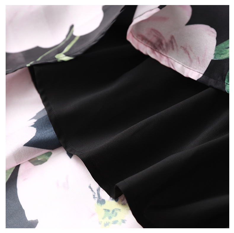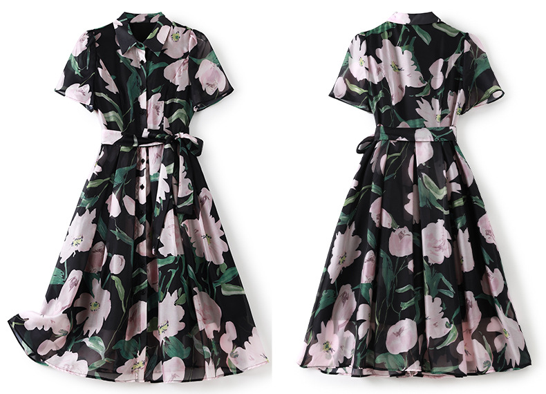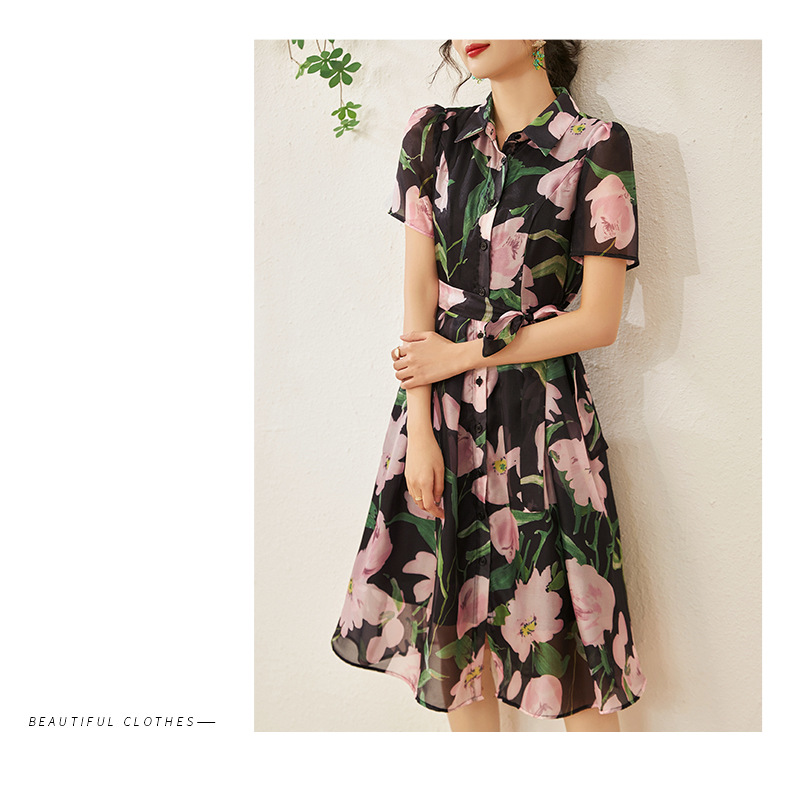 惊艳优雅,印花收腰连衣裙A字衬衫裙感名媛气质时尚女WLZD-2302106