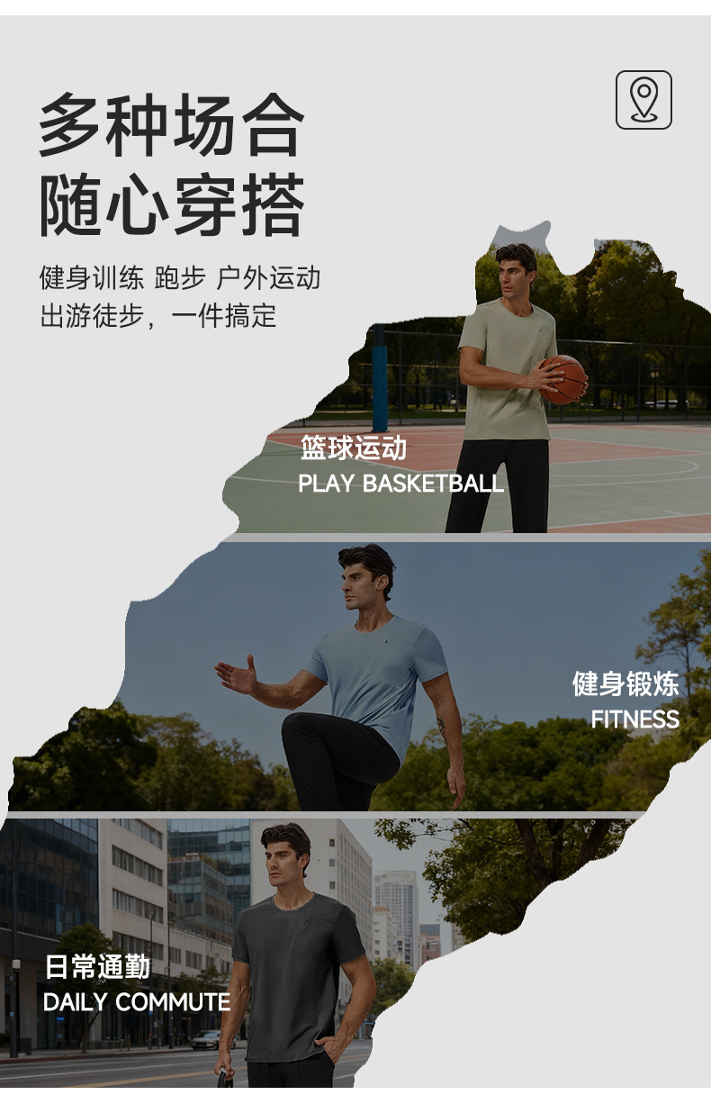 跃牌【欲动春风】男装系列 春夏运动短袖抗菌凉感透气宽松休闲健身跑步T恤51241