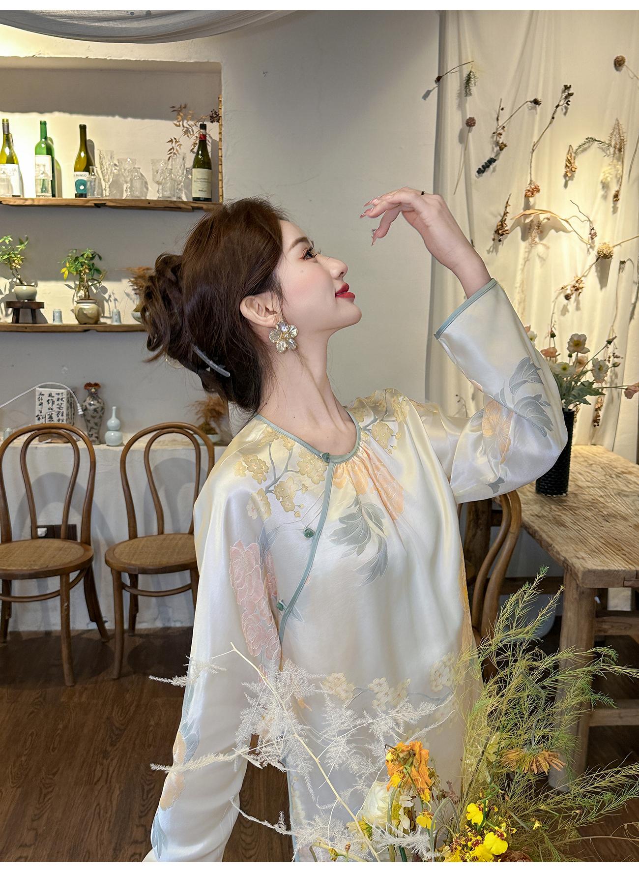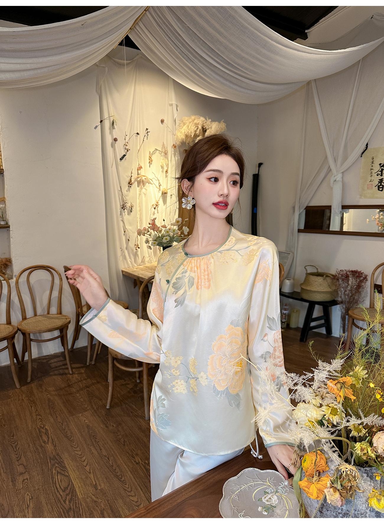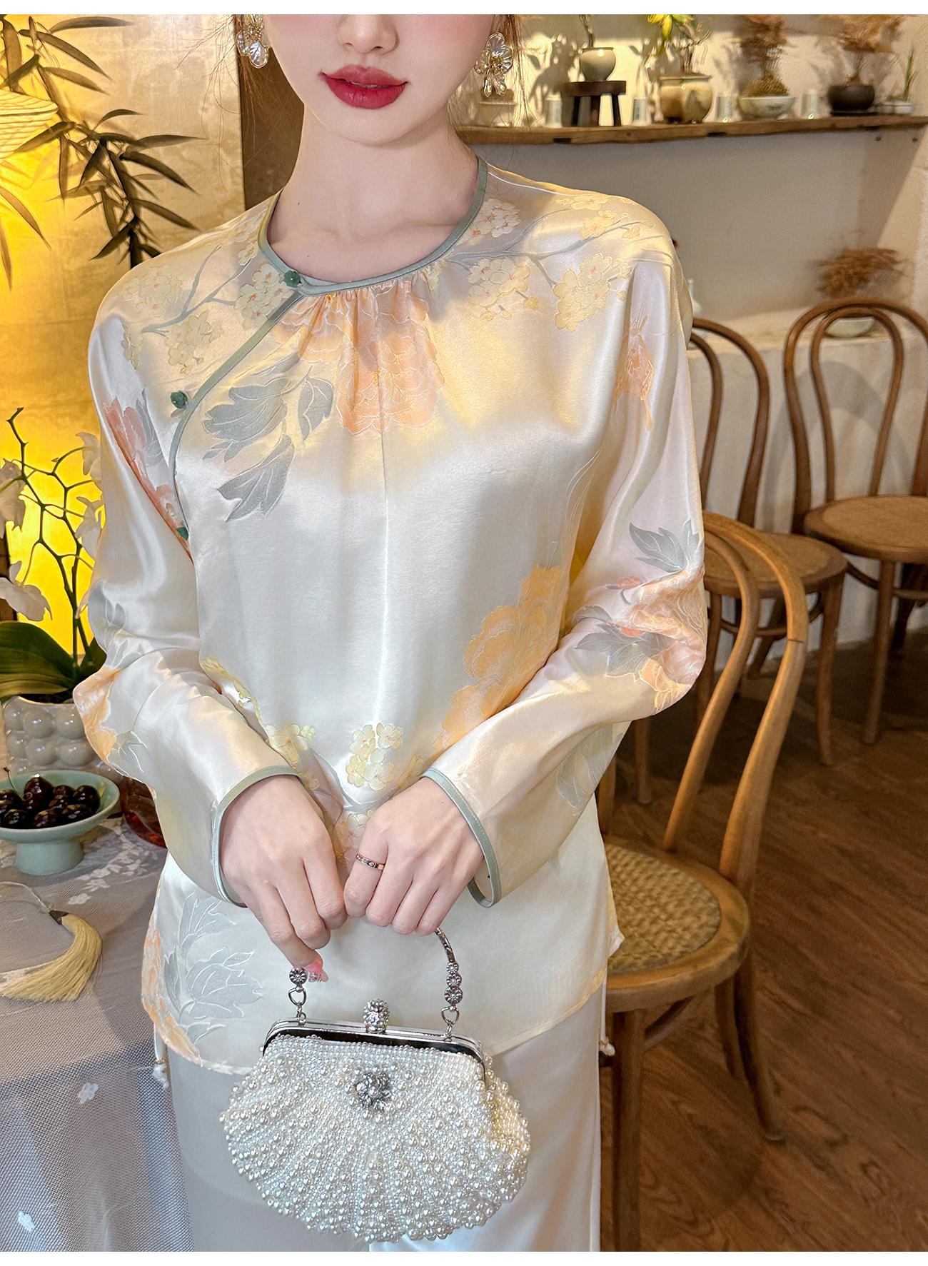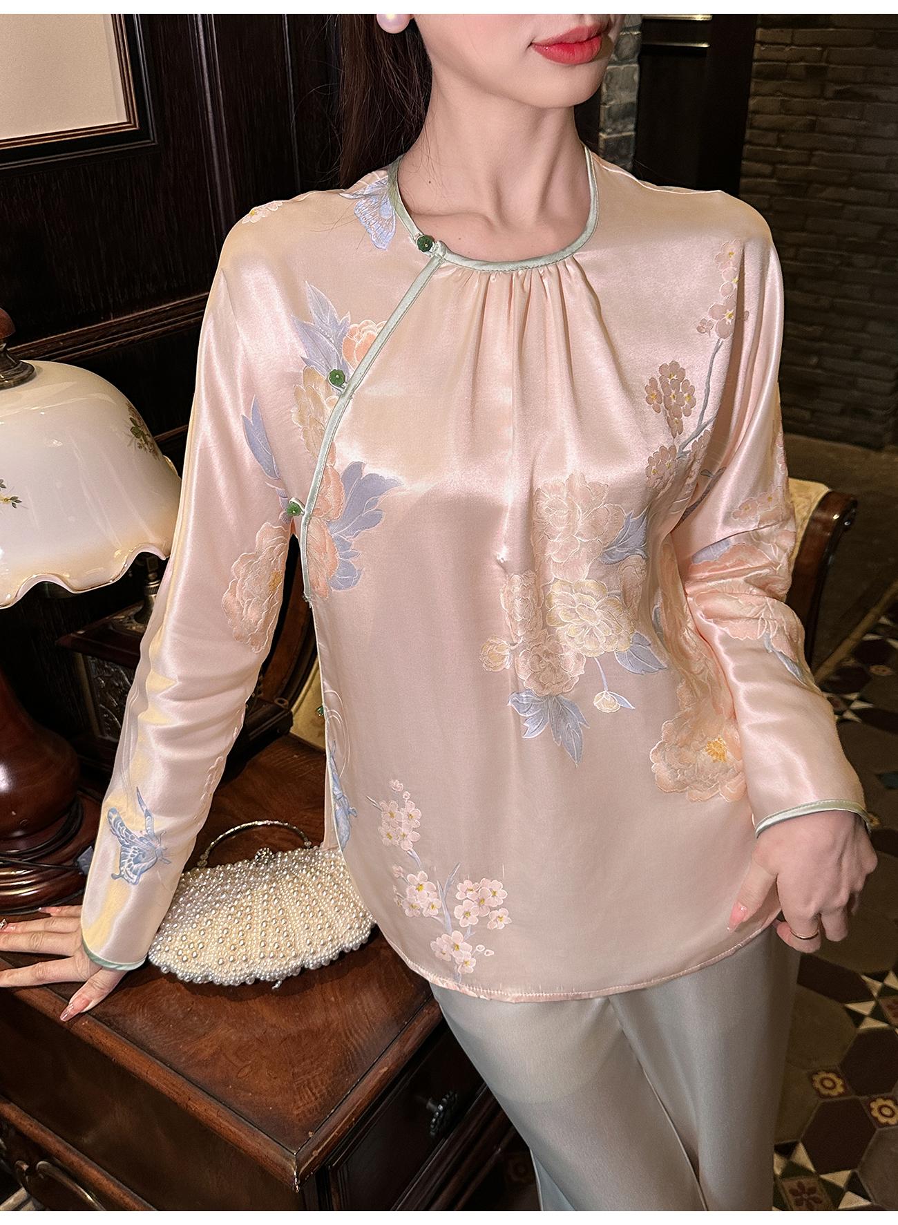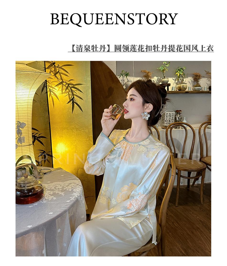 BeQueenStory【清泉牡丹】新中式圆领莲花扣牡丹提花桑蚕丝国风上衣