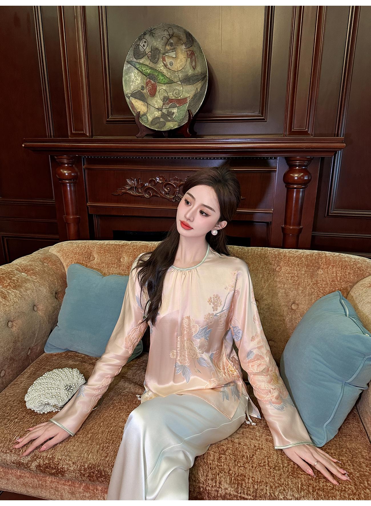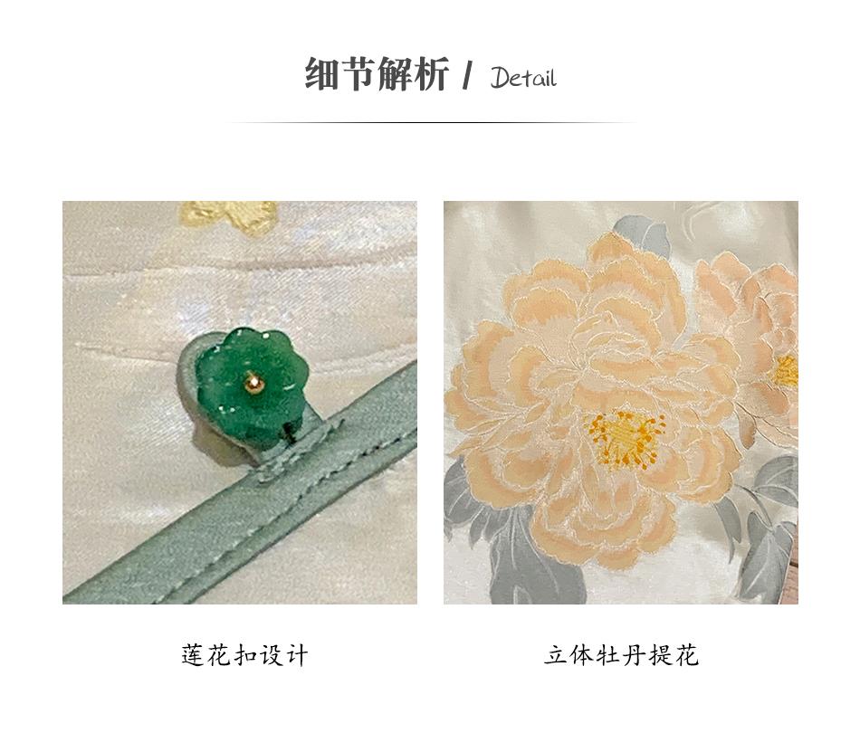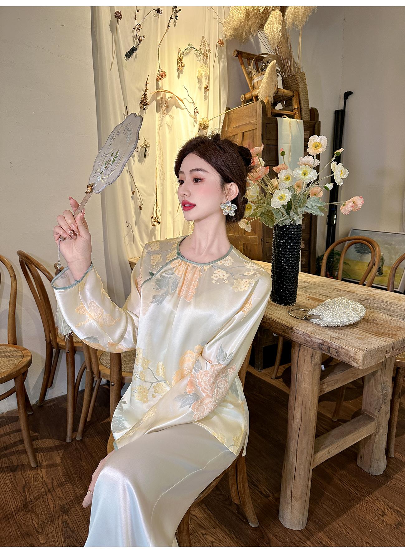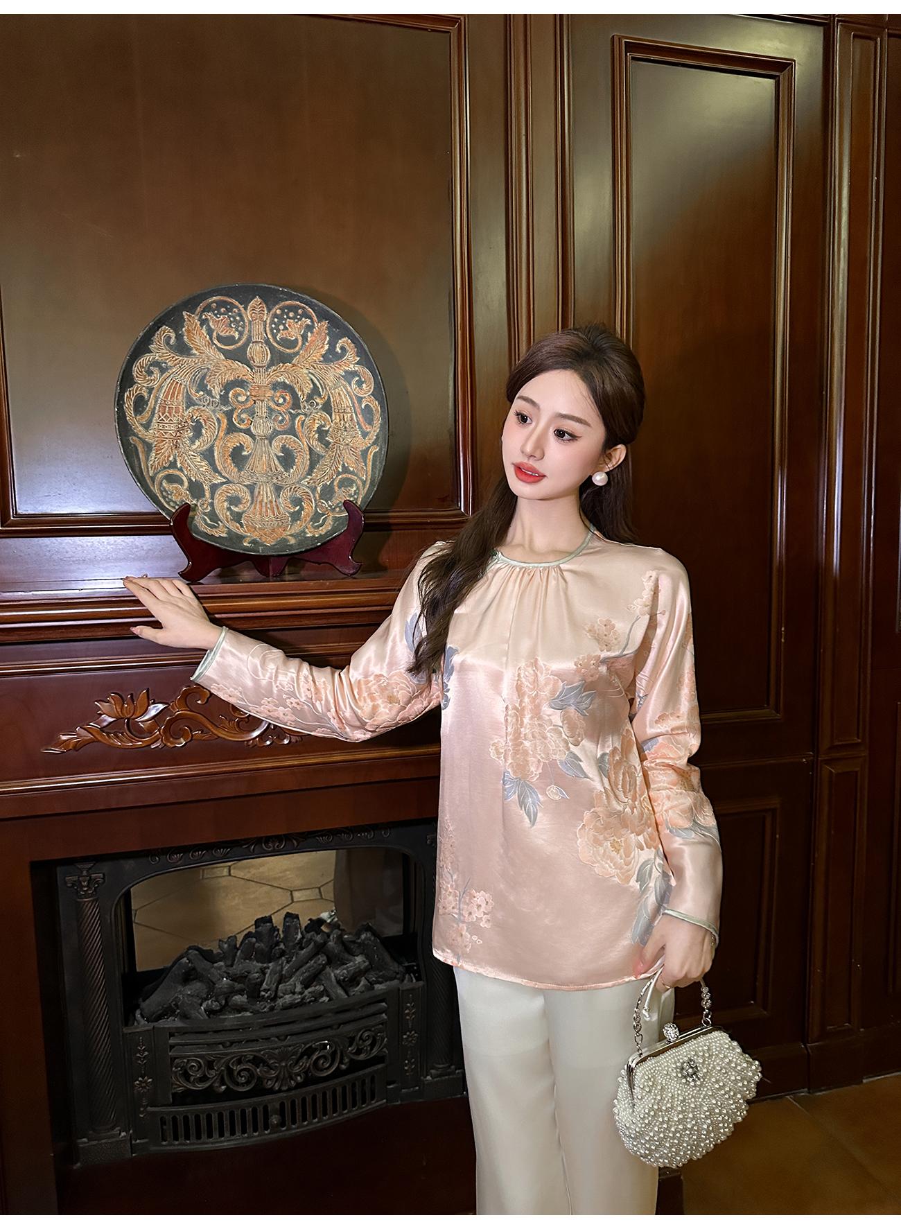 BeQueenStory【清泉牡丹】新中式圆领莲花扣牡丹提花桑蚕丝国风上衣