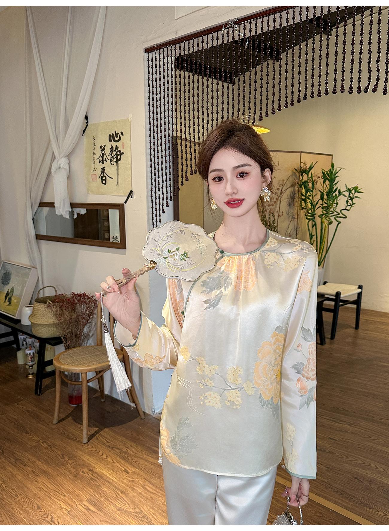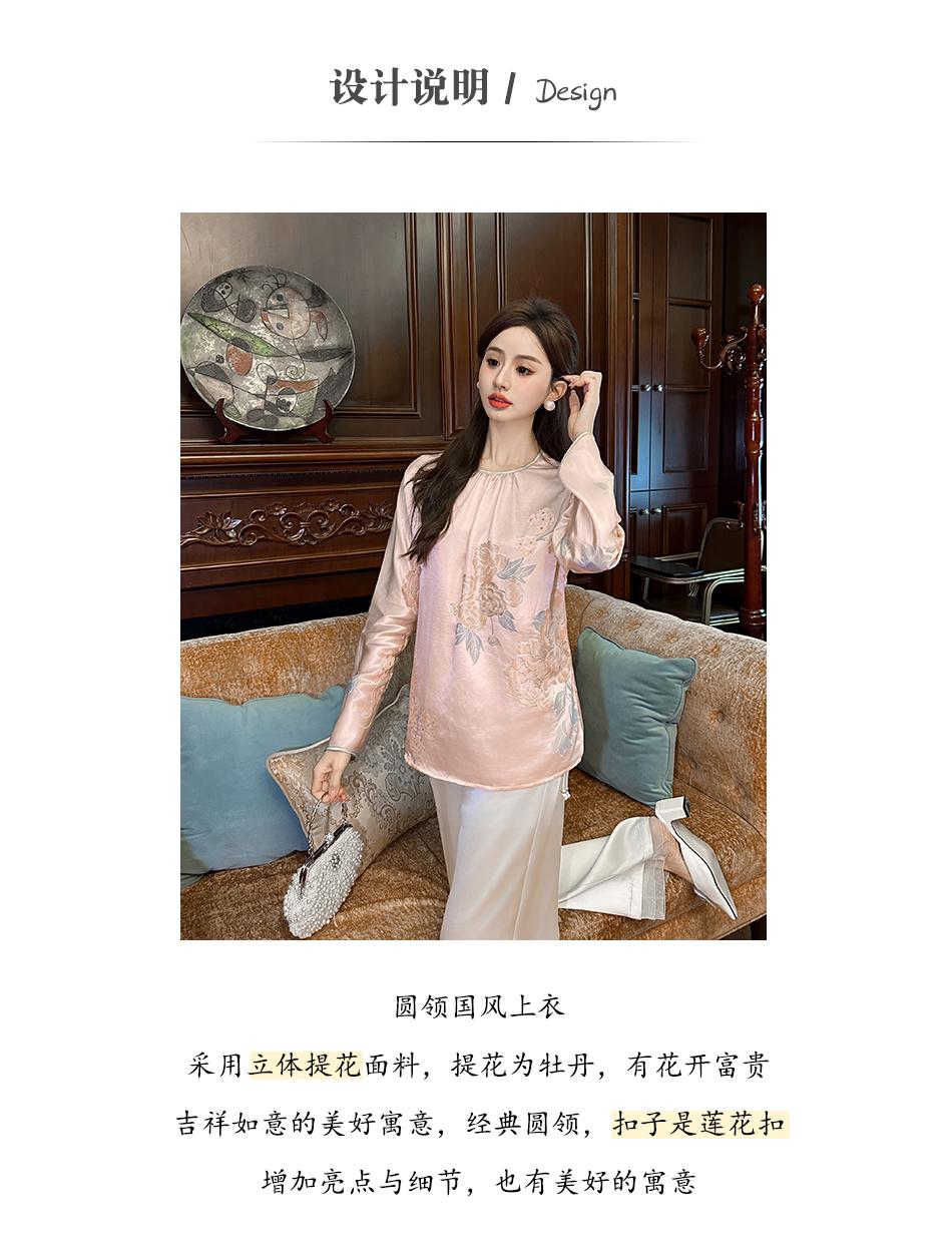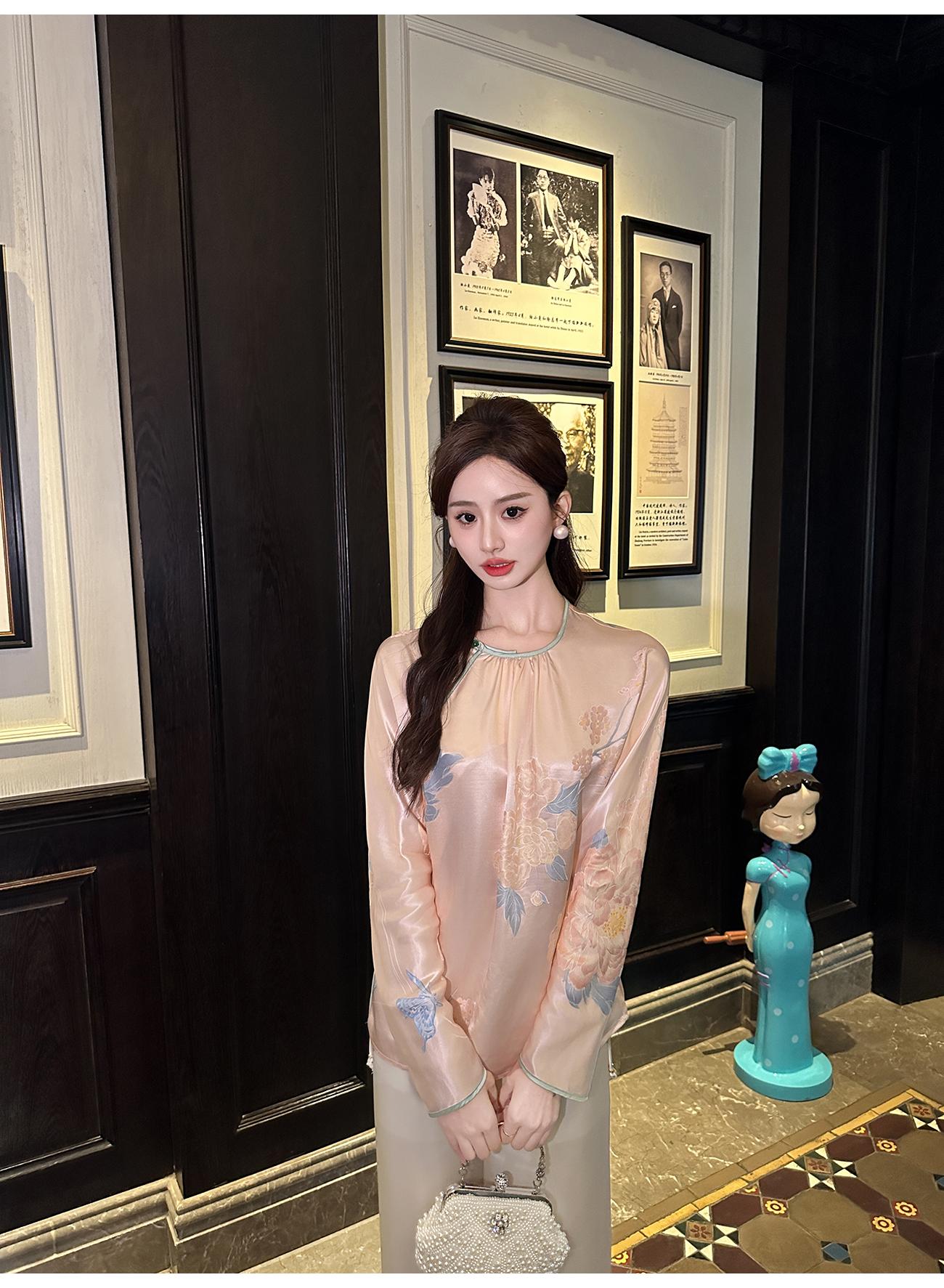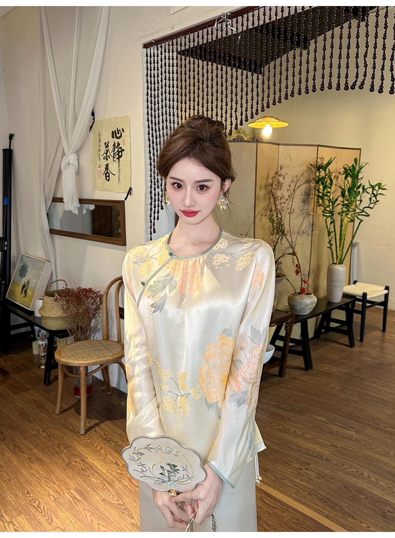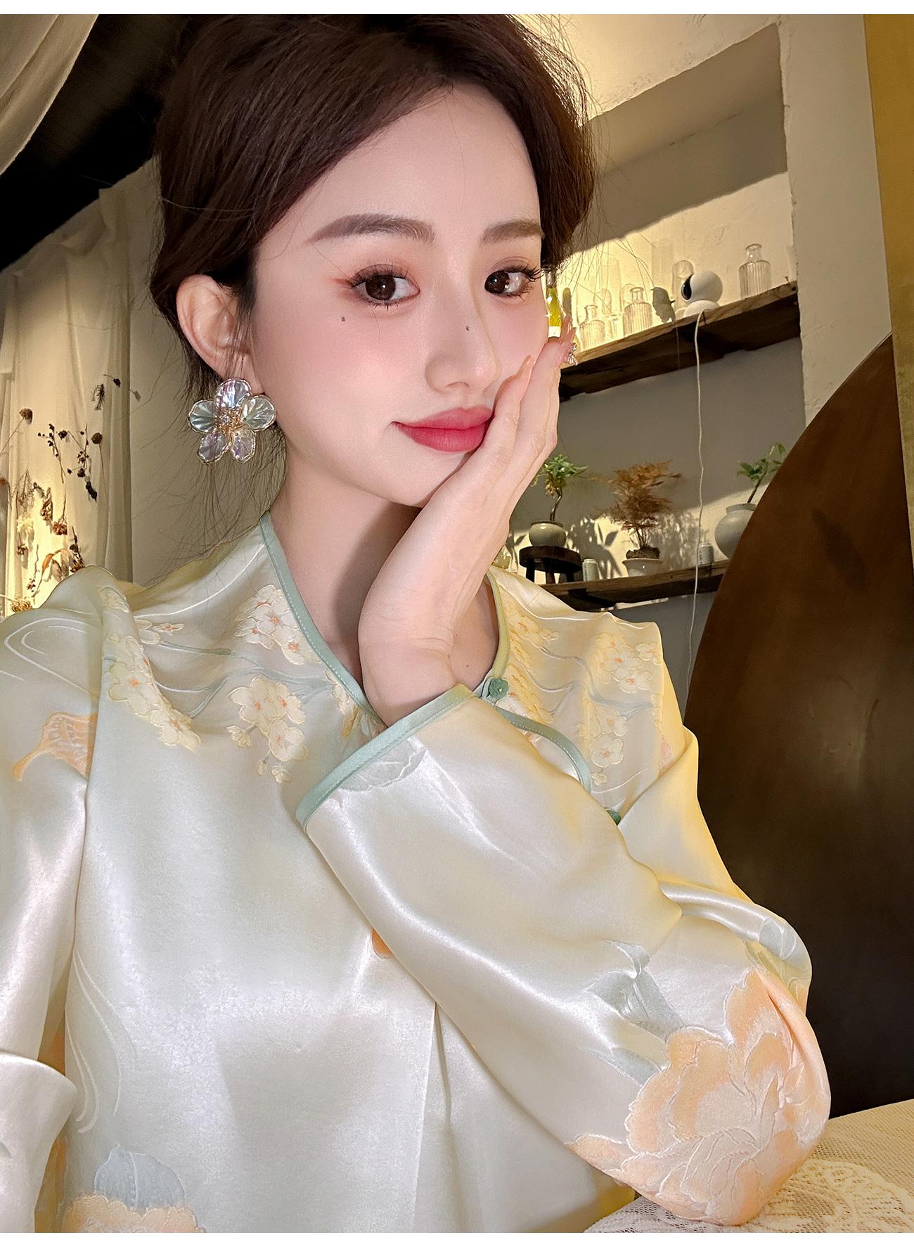 BeQueenStory【清泉牡丹】新中式圆领莲花扣牡丹提花桑蚕丝国风上衣