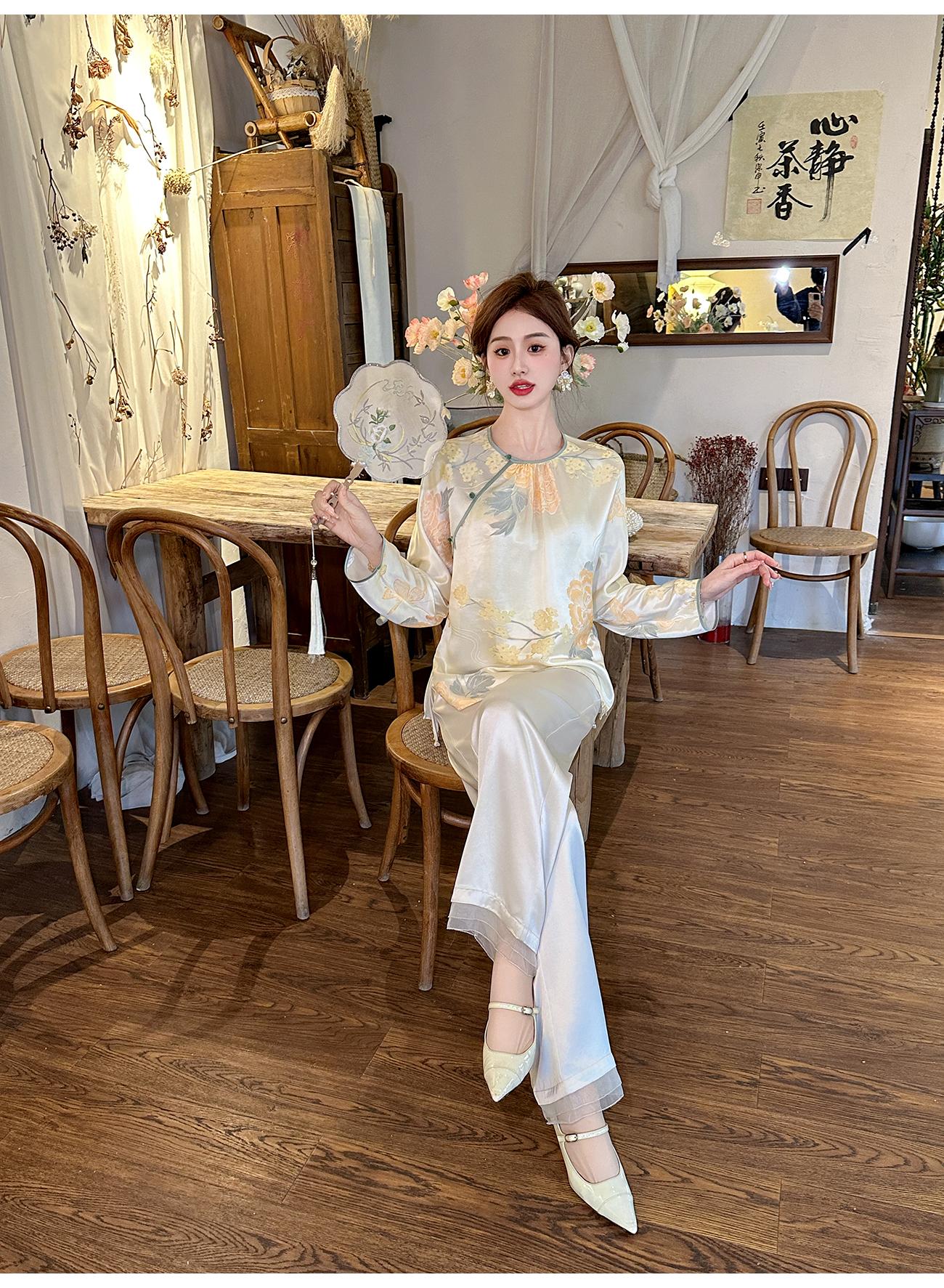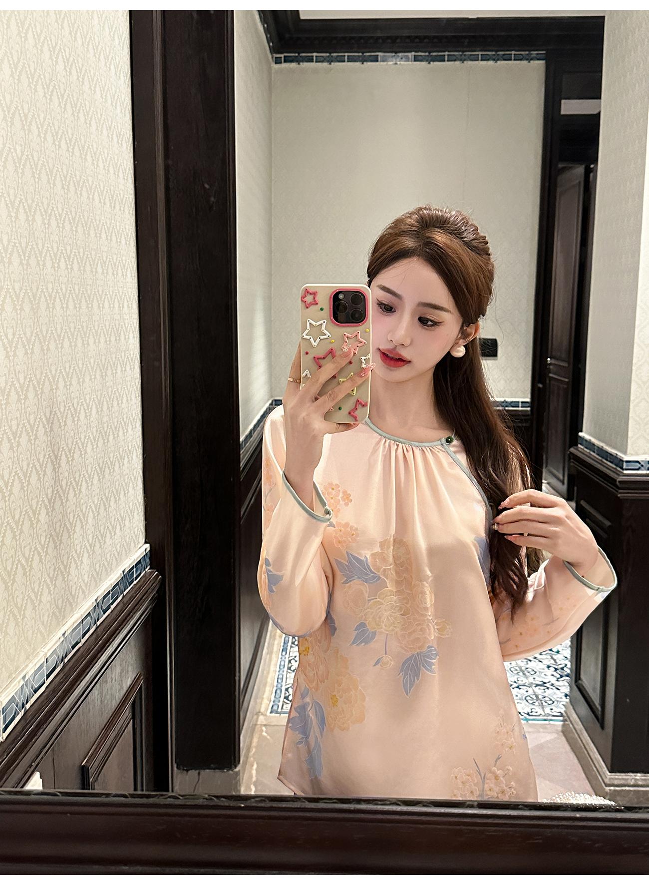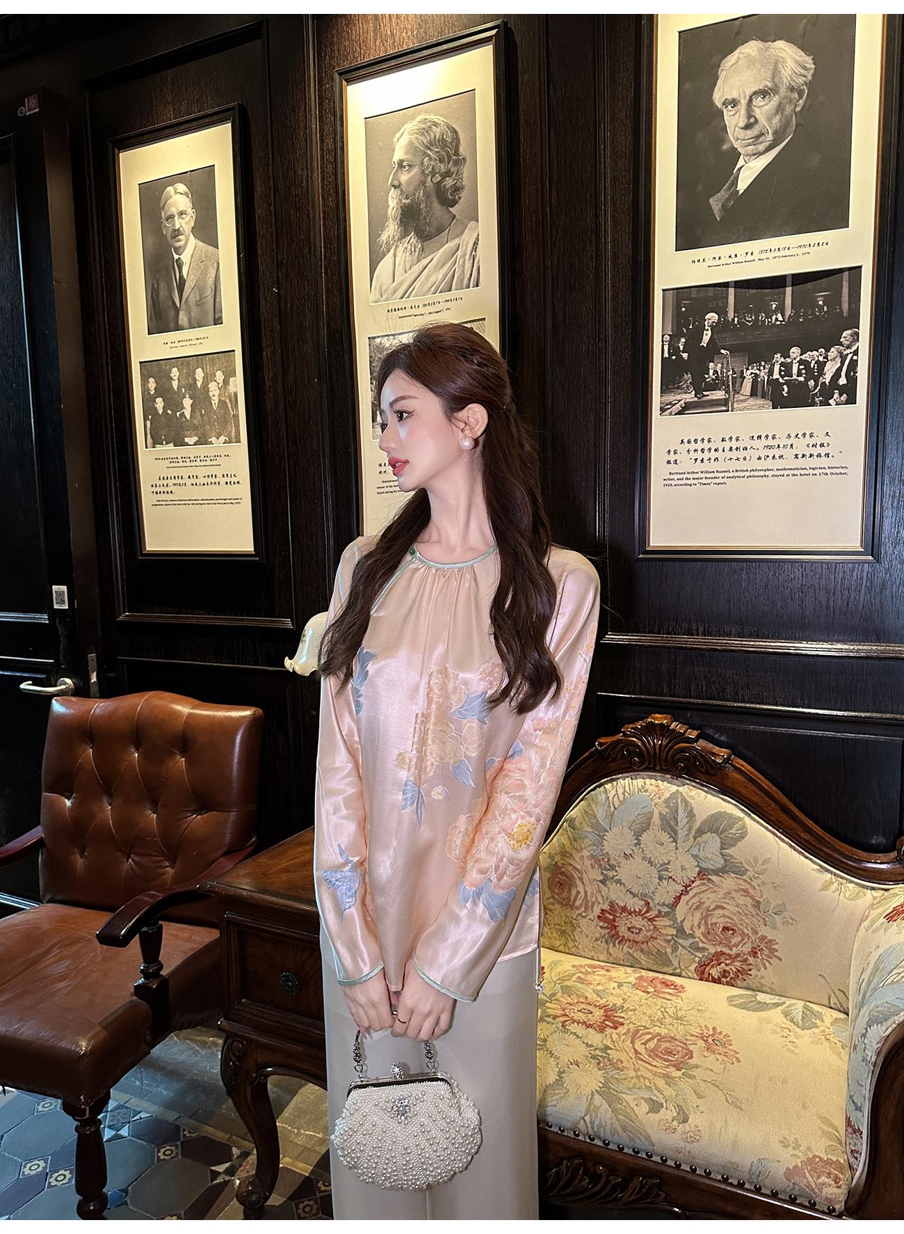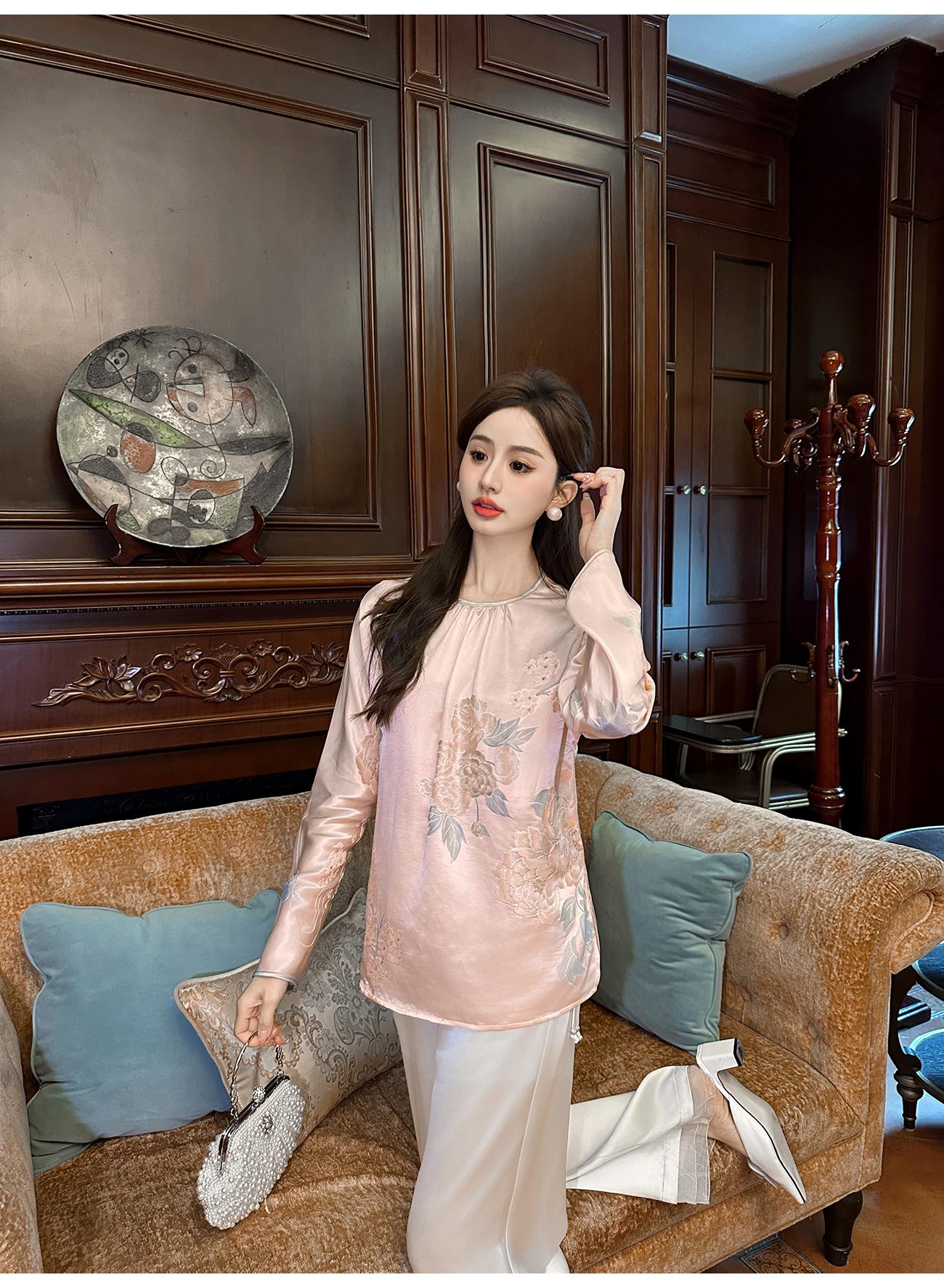 BeQueenStory【清泉牡丹】新中式圆领莲花扣牡丹提花桑蚕丝国风上衣
