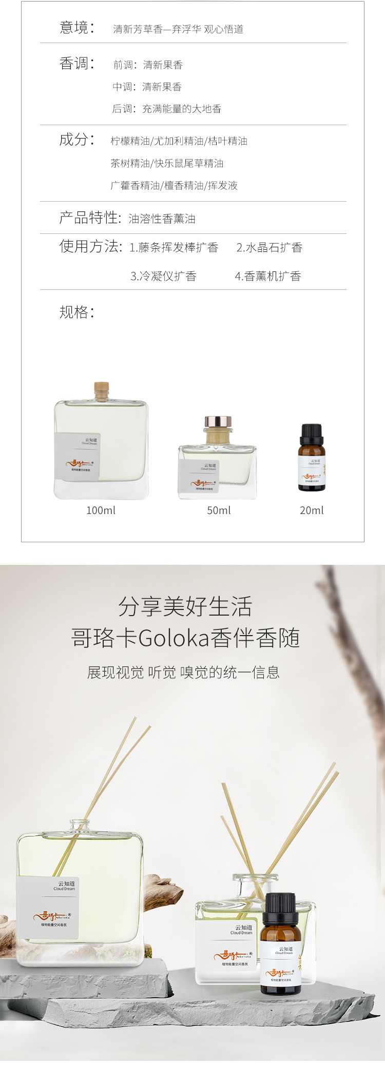 云知道香薰油无火香薰精油哥珞卡植物香氛家用室内车载酒店香薰