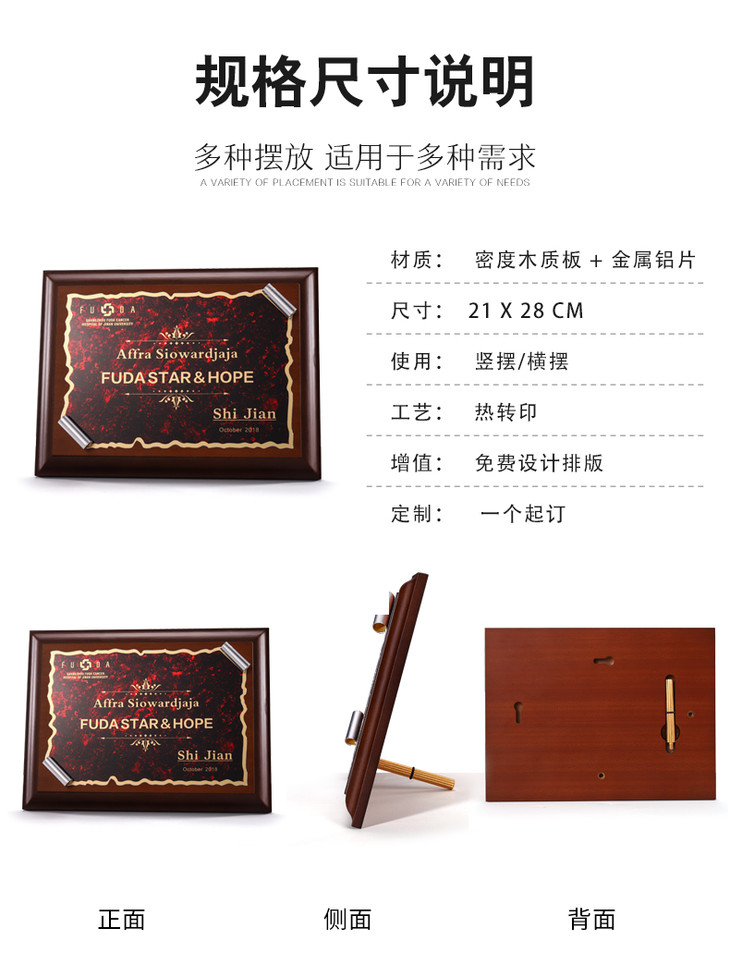 奖牌定制定做木质立体卷边金属授权牌荣誉证书经销商制作企业颁奖