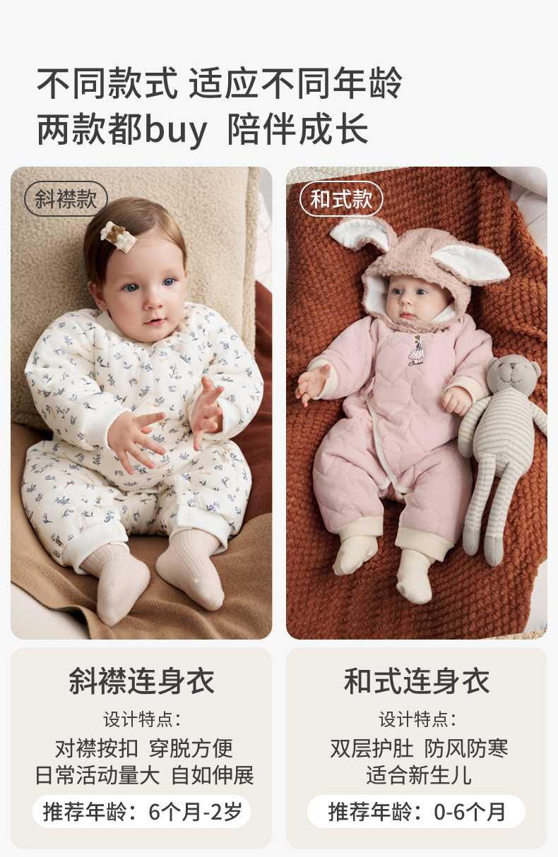 【有味生活家专属】嫚熙婴儿连体衣夹棉连身衣宝宝衣服秋冬保暖加厚外出棉服爬服哈衣