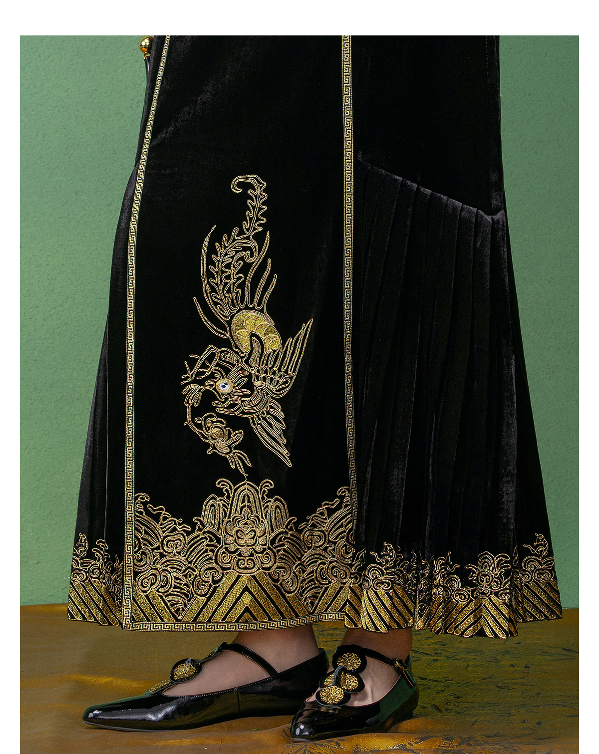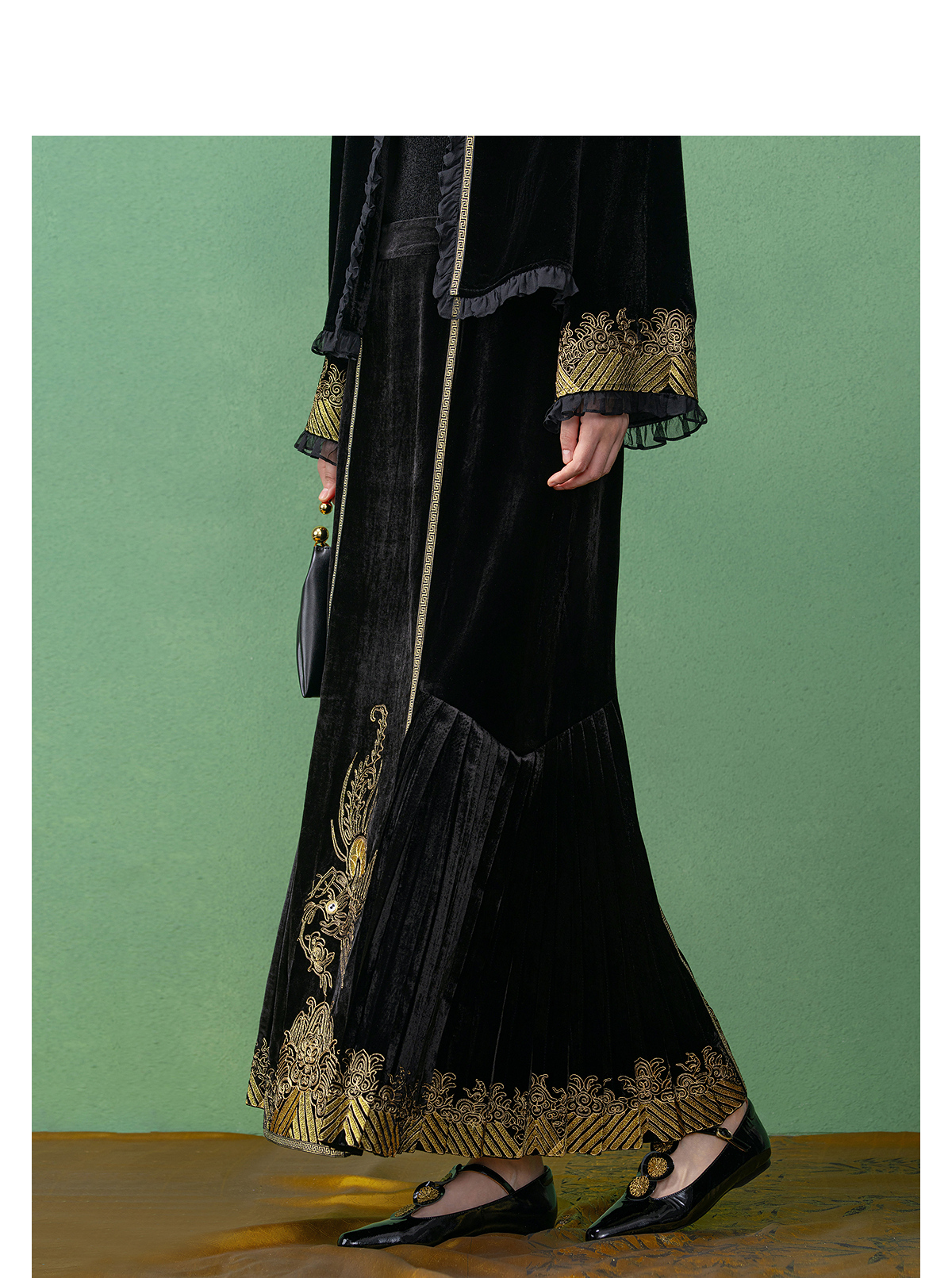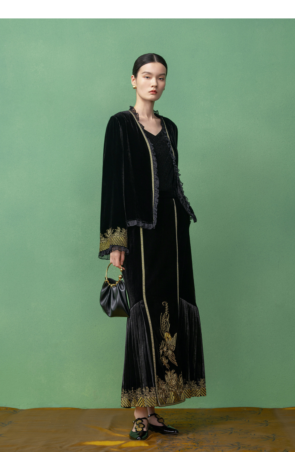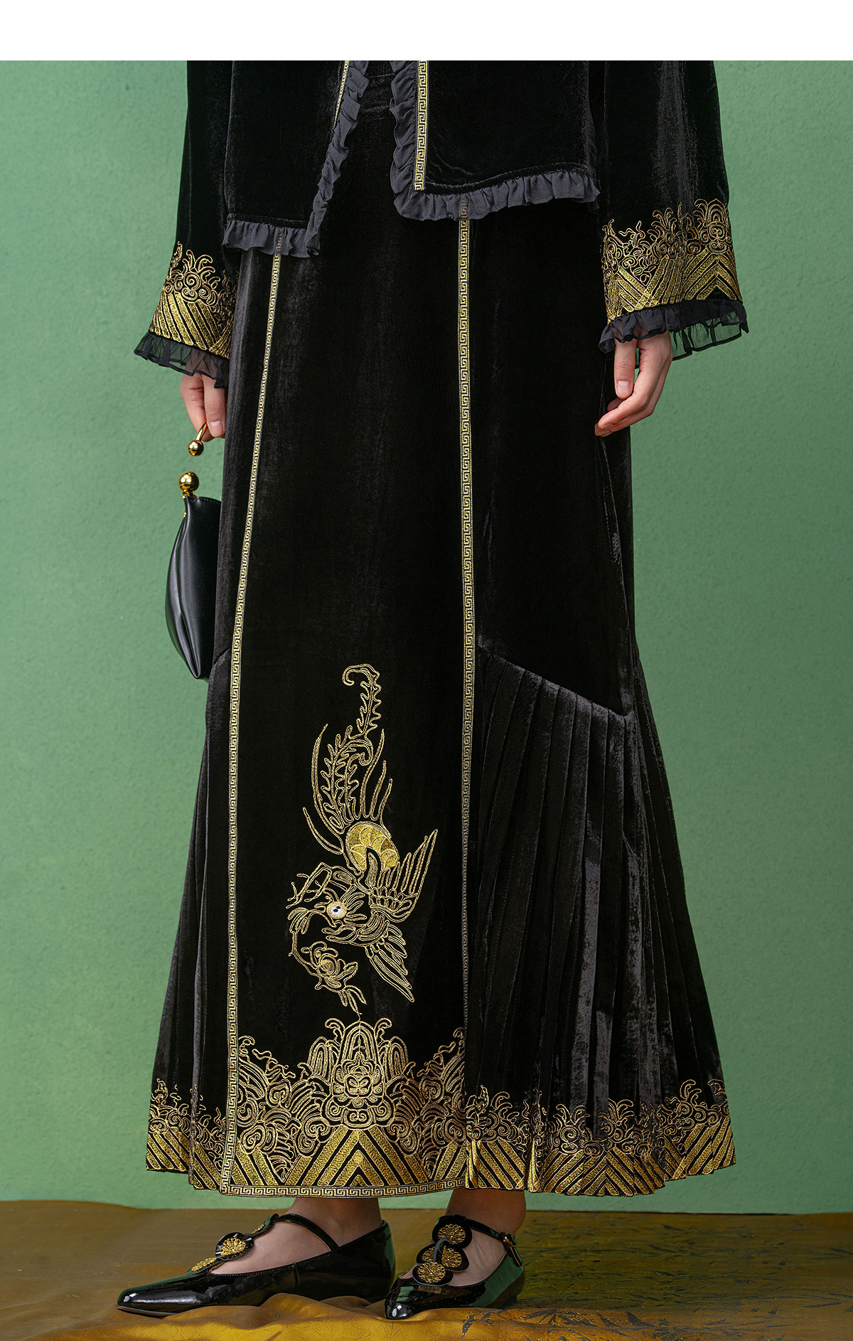 【林栖设计小店】凤衔灵芝马面裙真丝丝绒绣花2025秋冬新款女1953227
