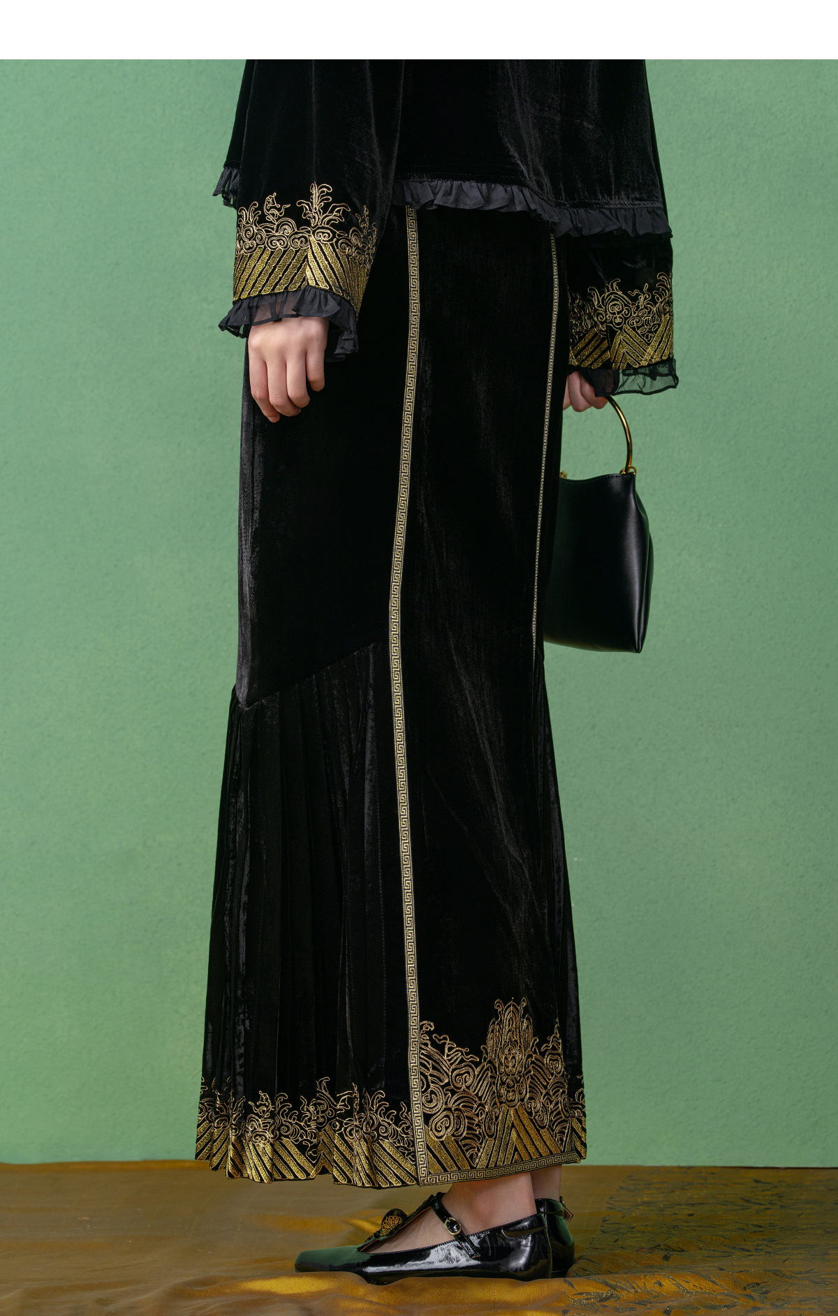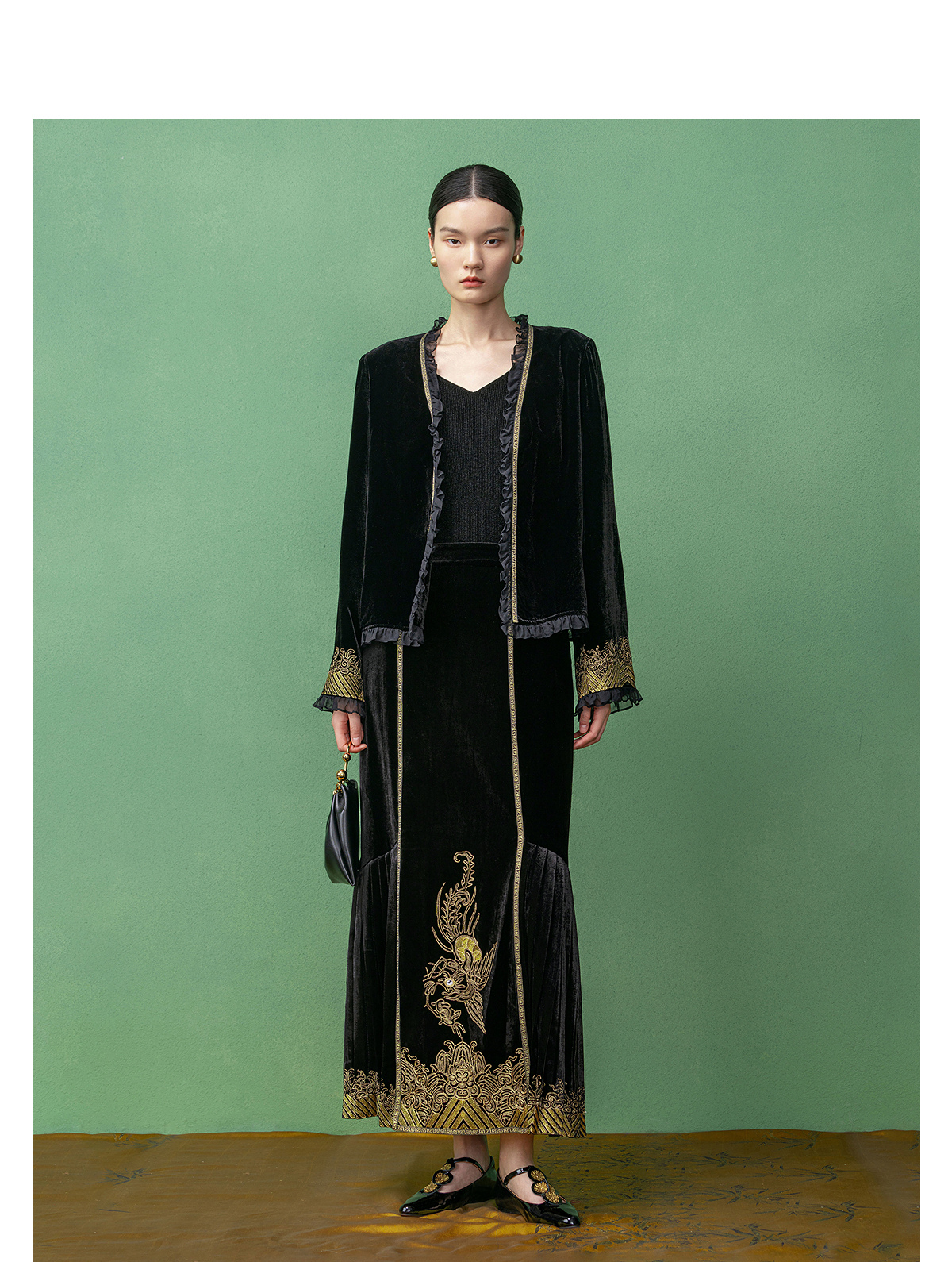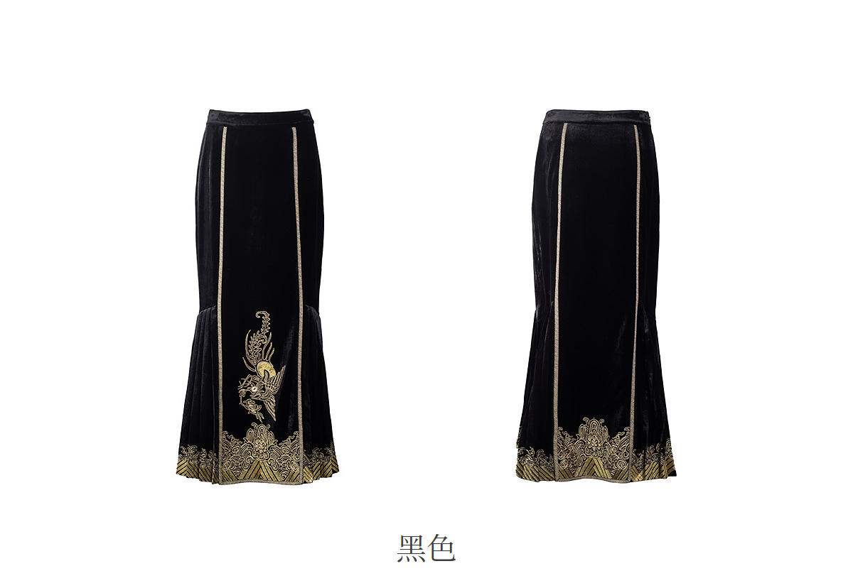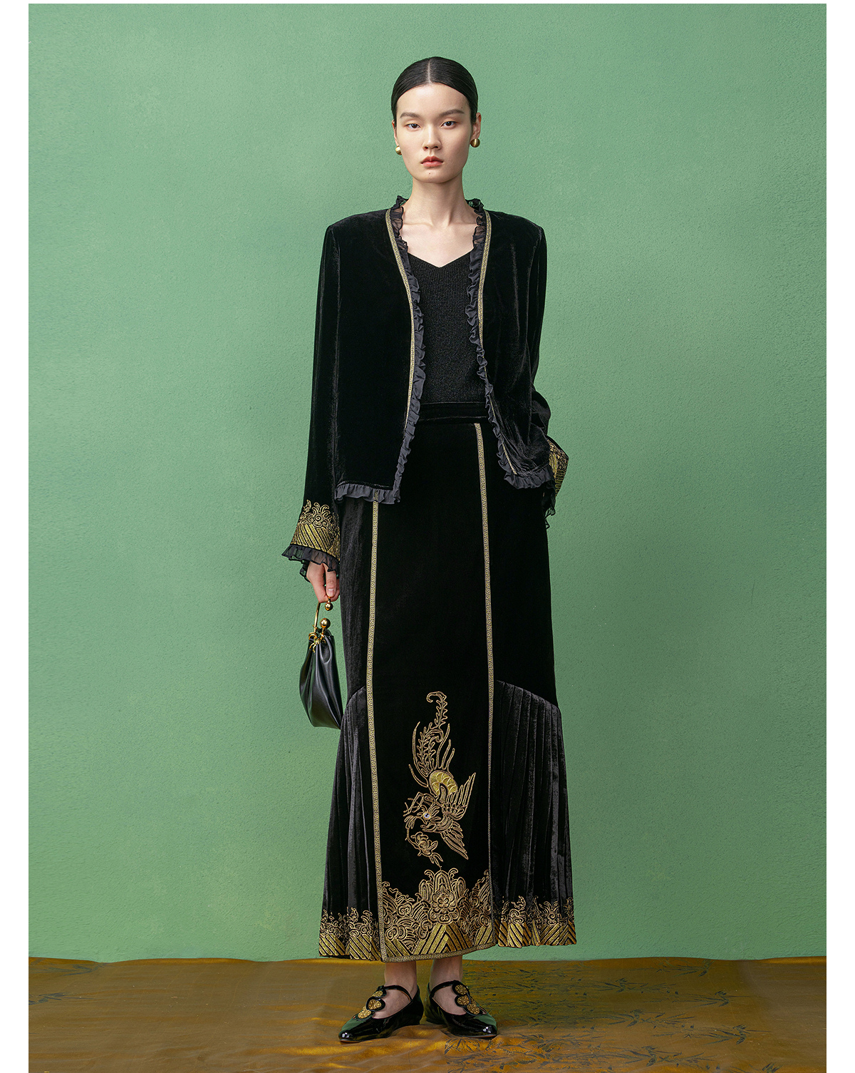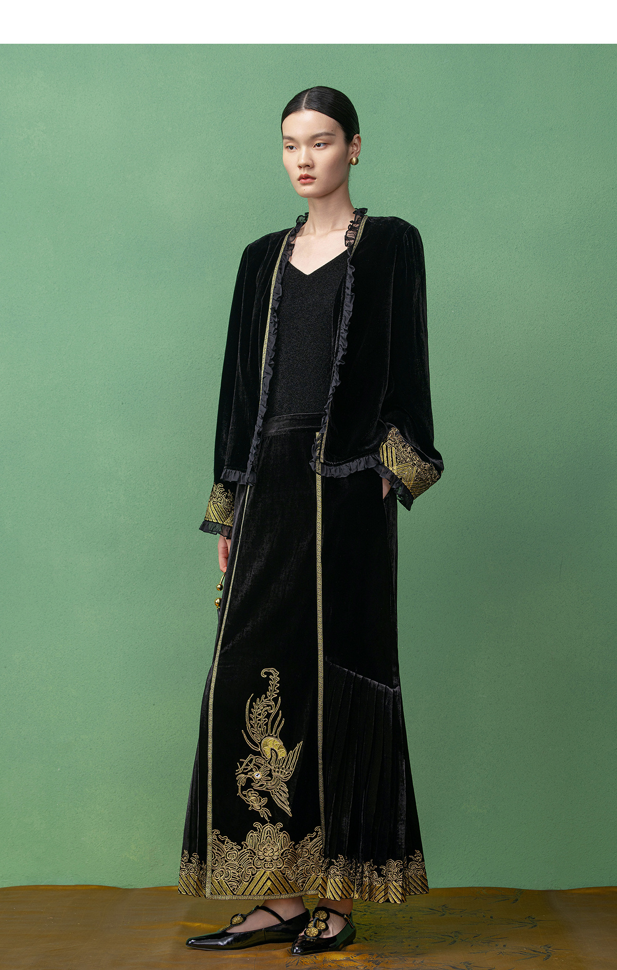 【林栖设计小店】凤衔灵芝马面裙真丝丝绒绣花2025秋冬新款女1953227