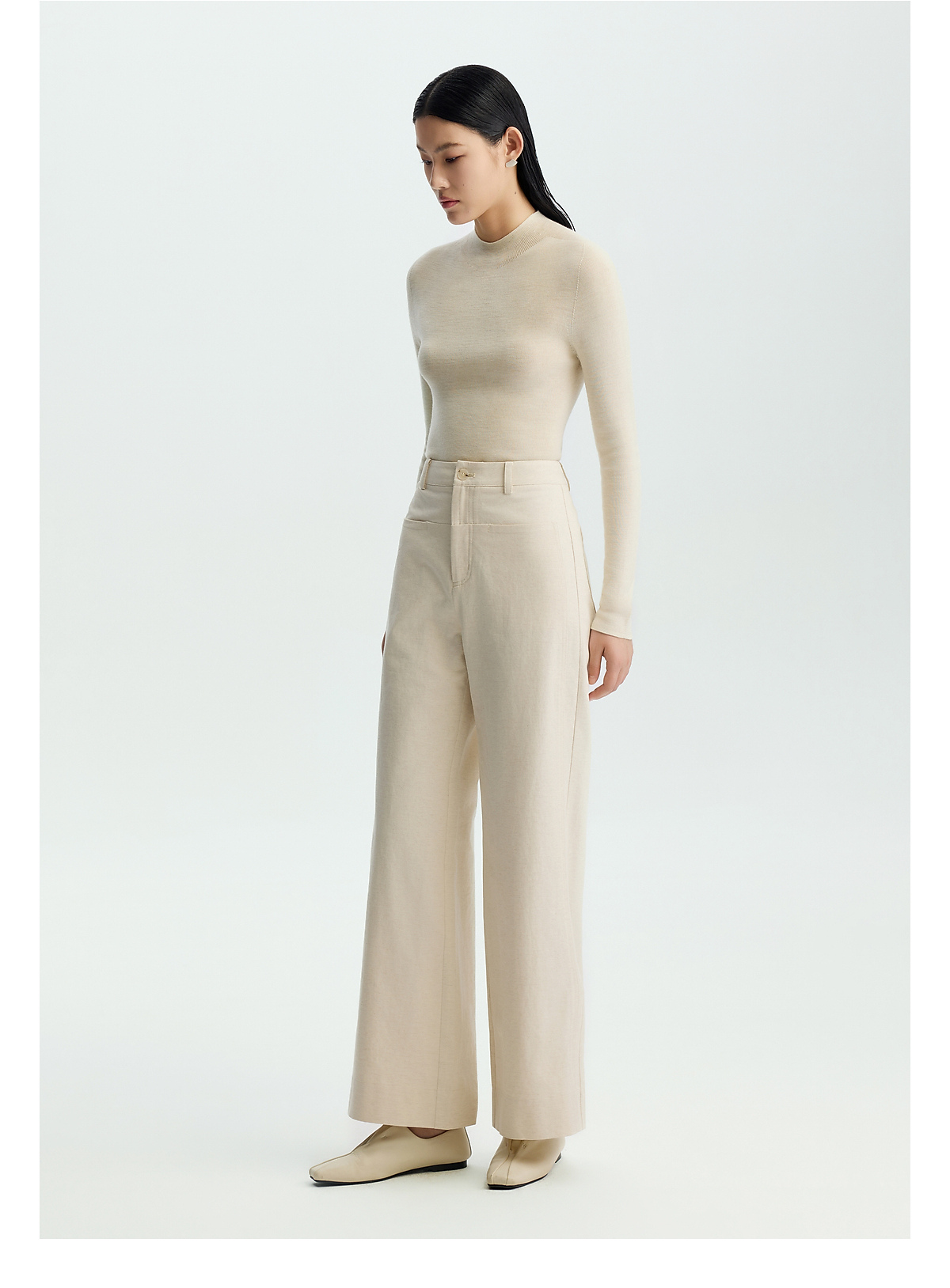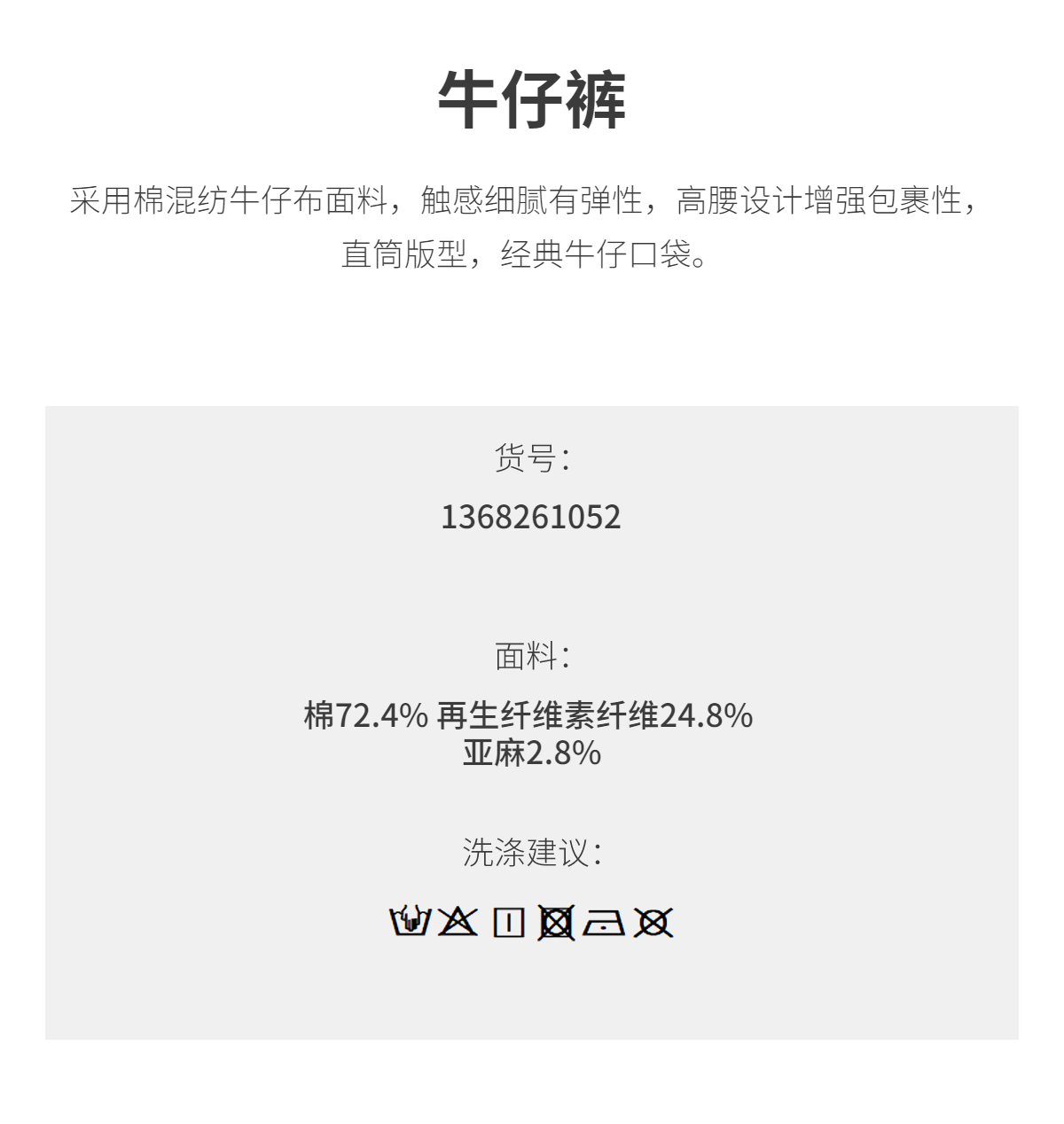 商场同款PURE TOUCH女装26春新款棉混纺牛仔裤微弹白色高腰直筒裤