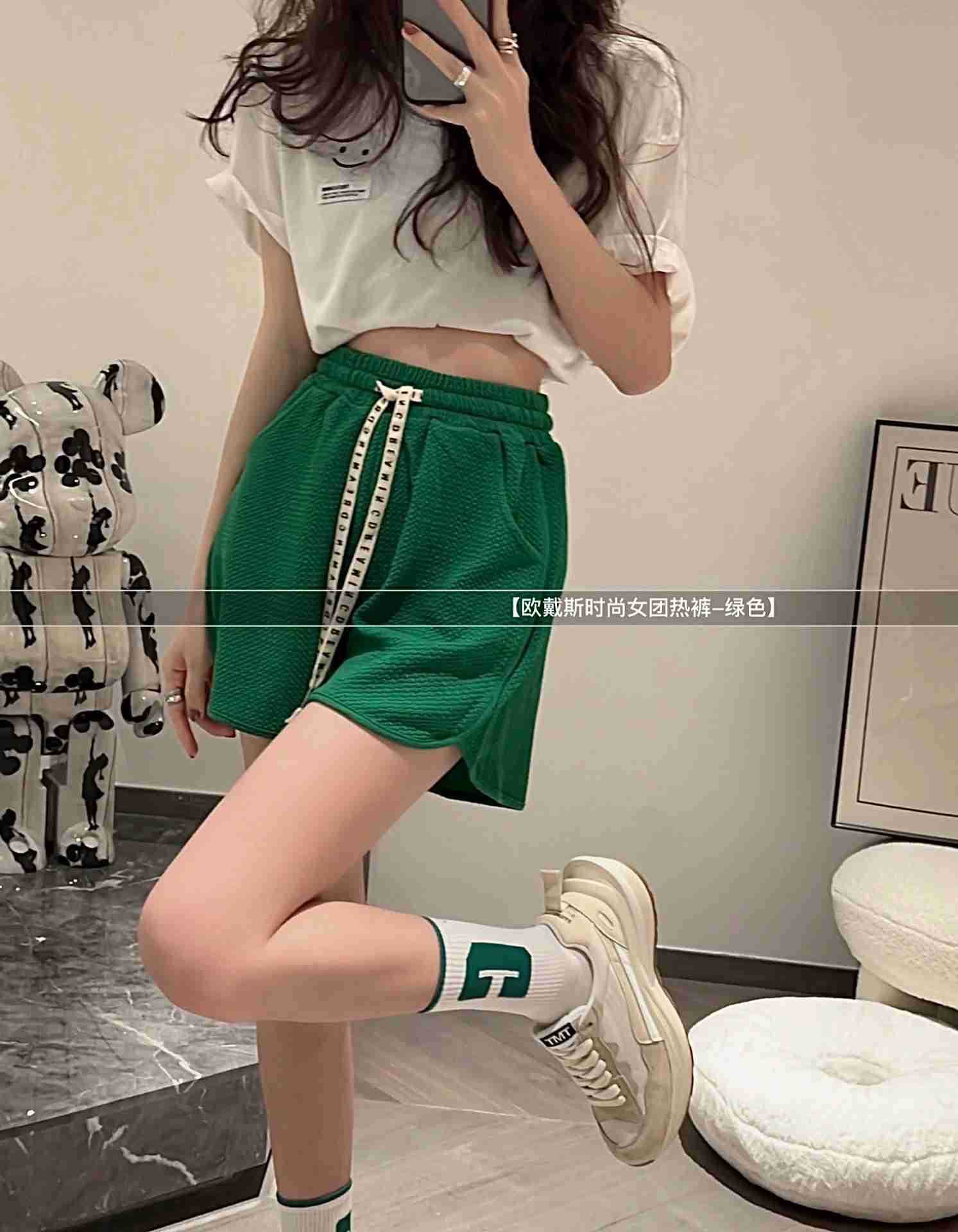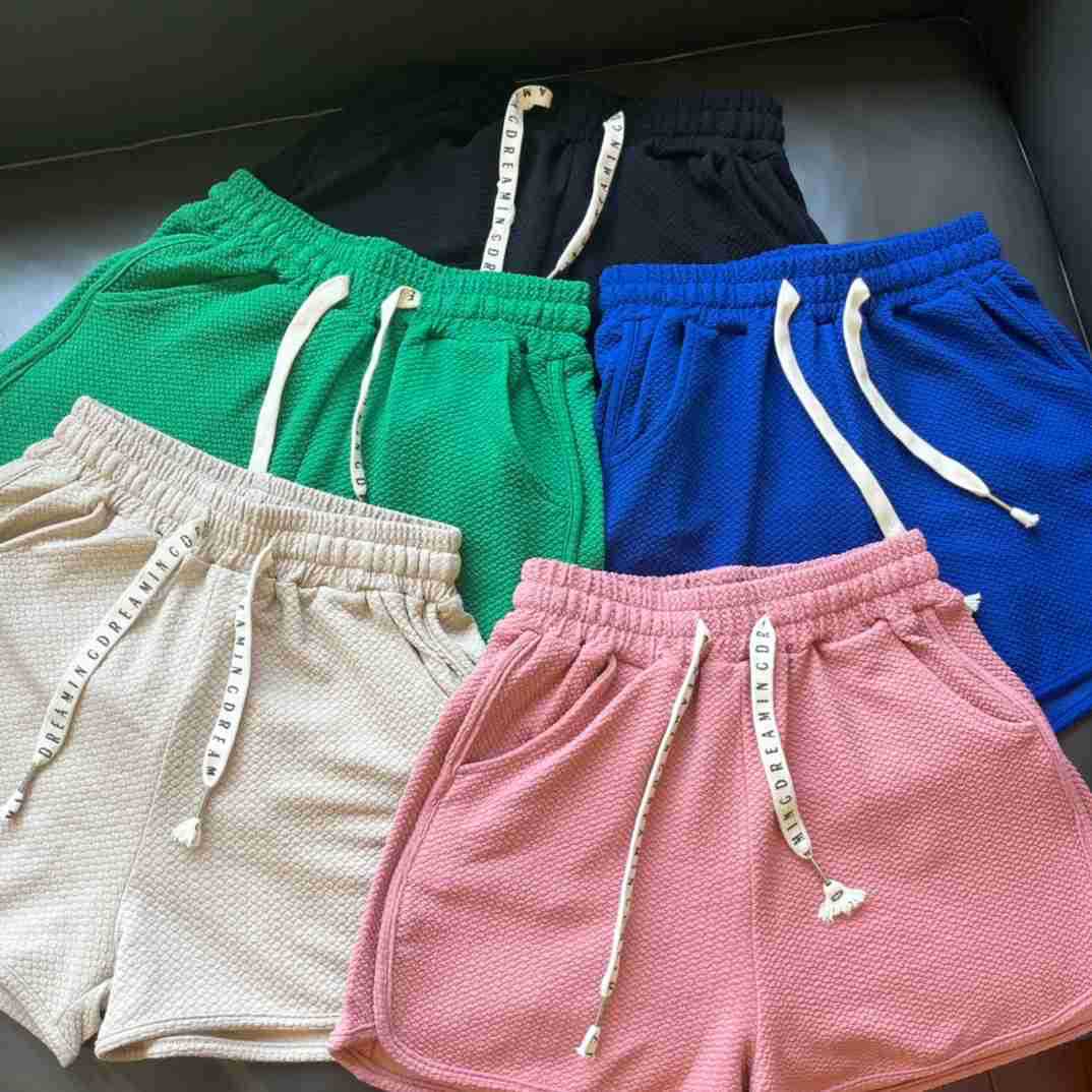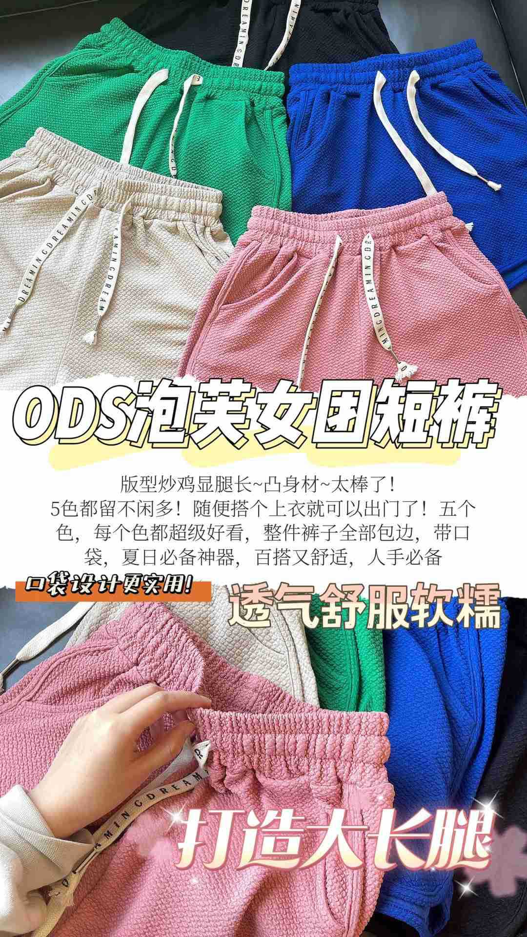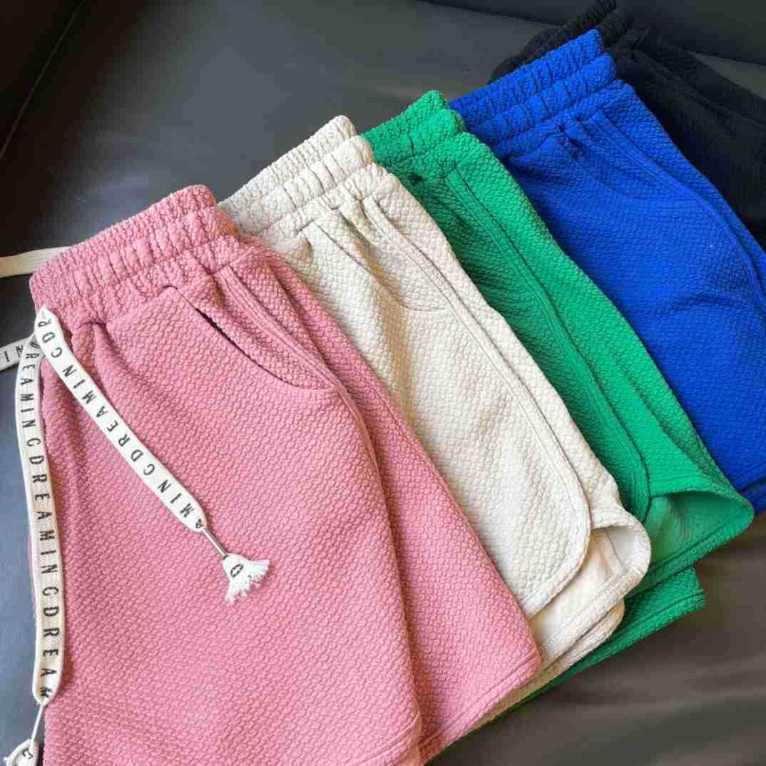 华夫格泡芙休闲短裤女2023夏季新款韩版宽松抽绳运动热裤