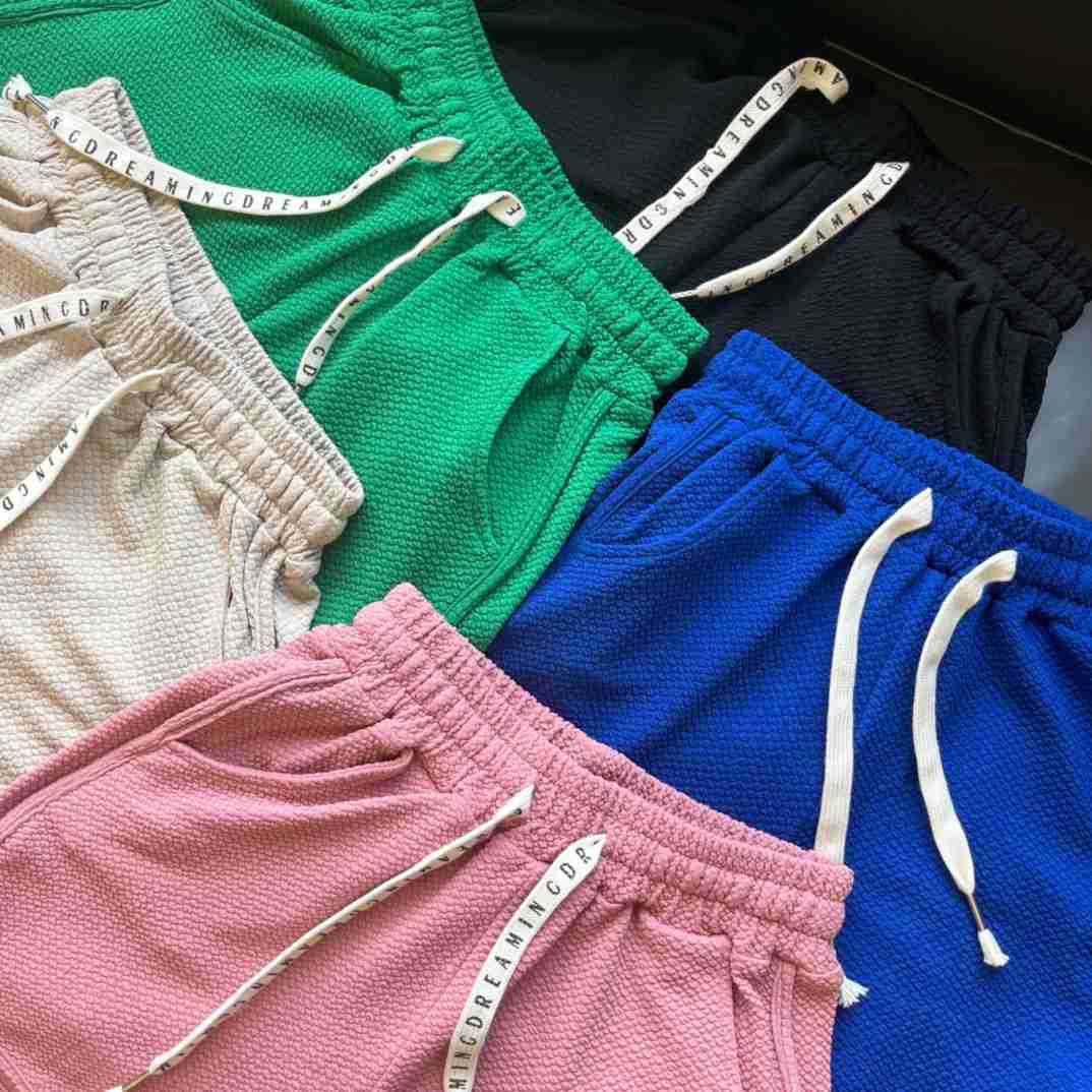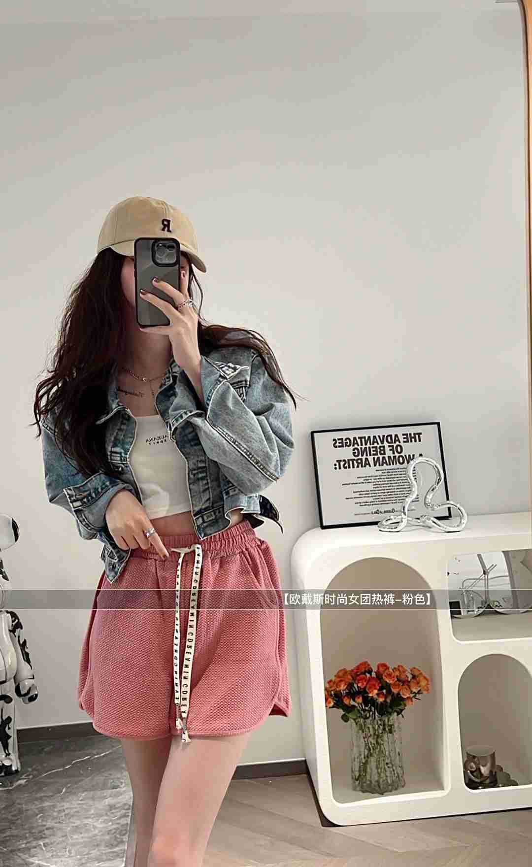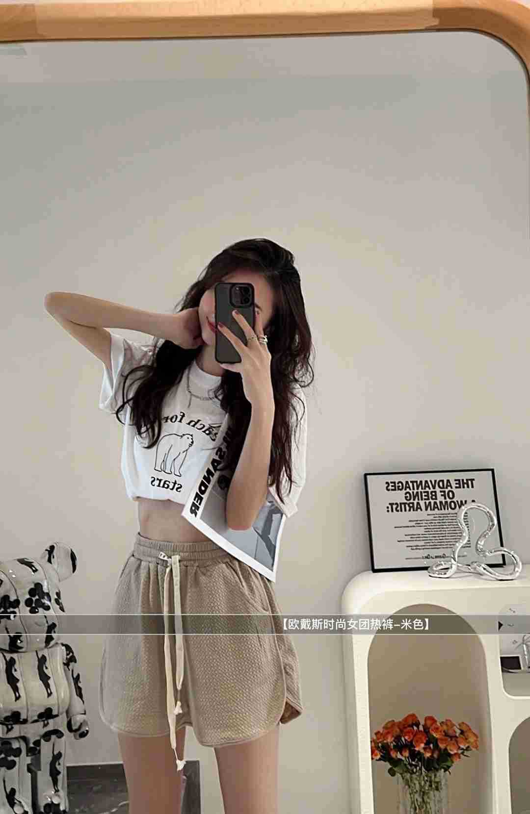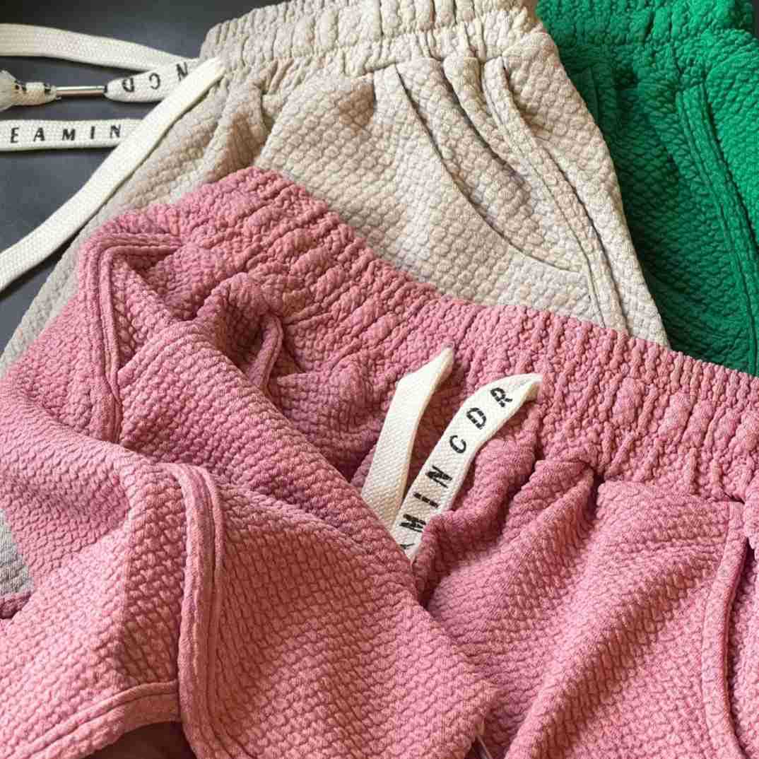 华夫格泡芙休闲短裤女2023夏季新款韩版宽松抽绳运动热裤
