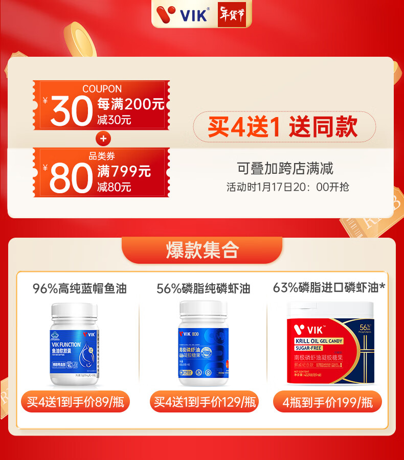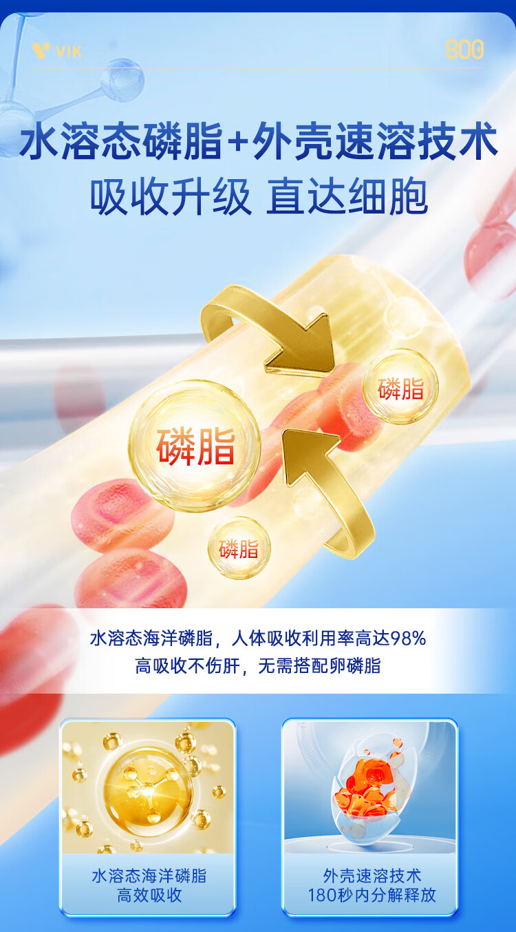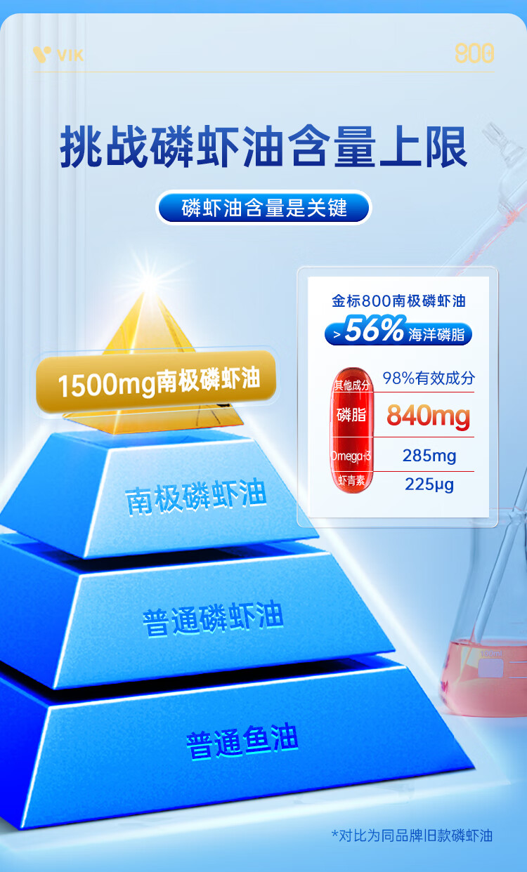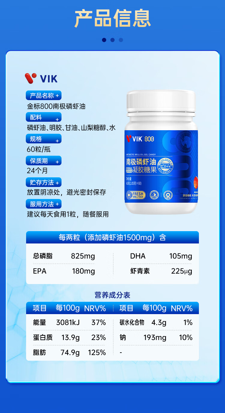 VIK纯南极磷虾油60粒56%海洋磷脂金标800深海鱼油升级高纯度强吸收Omega-3DHAepa虾青素中老年成人易吞服送礼