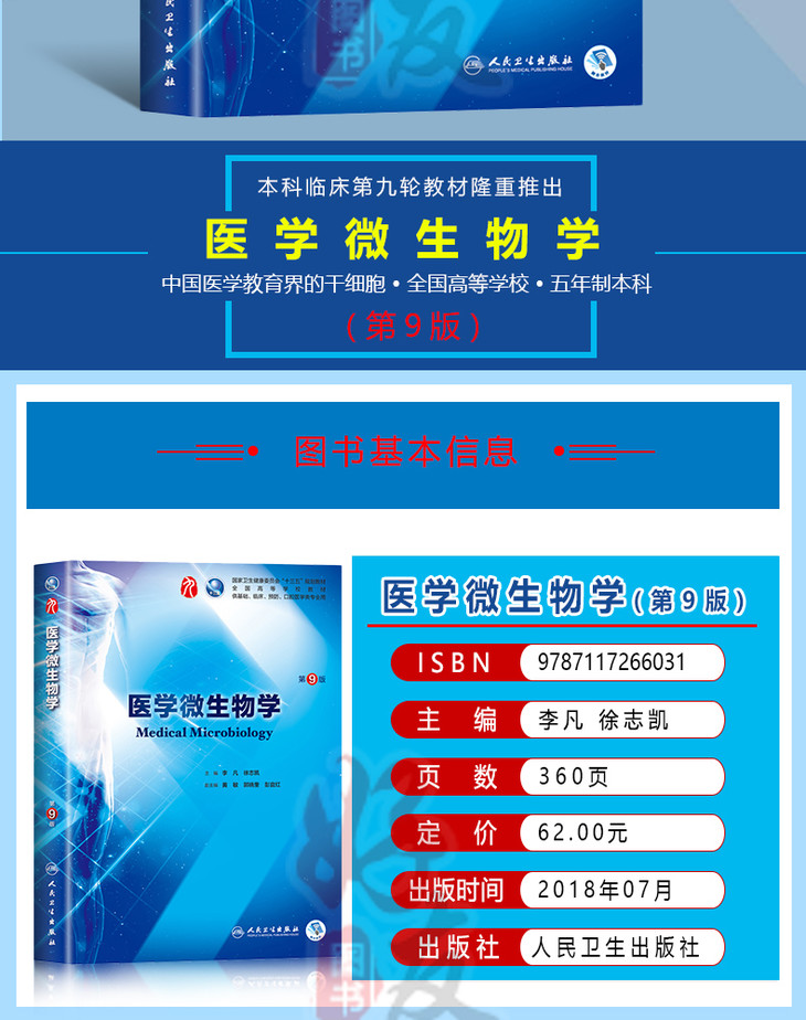医学微生物学第9版人卫版第九版 李凡 徐志凯主编 第九轮本科临床西医教材 人民卫生出版社 第8八版升级教材教辅9787117266031