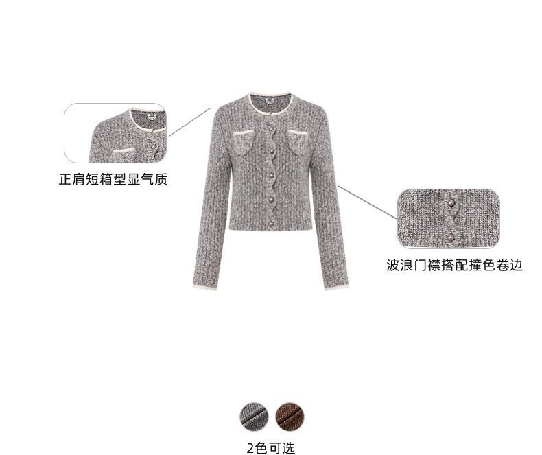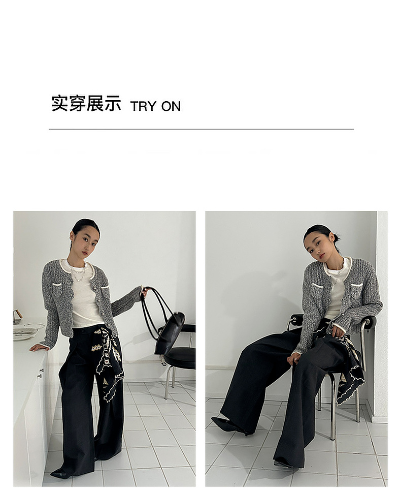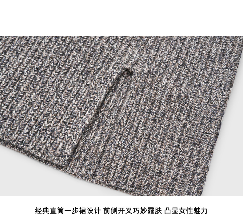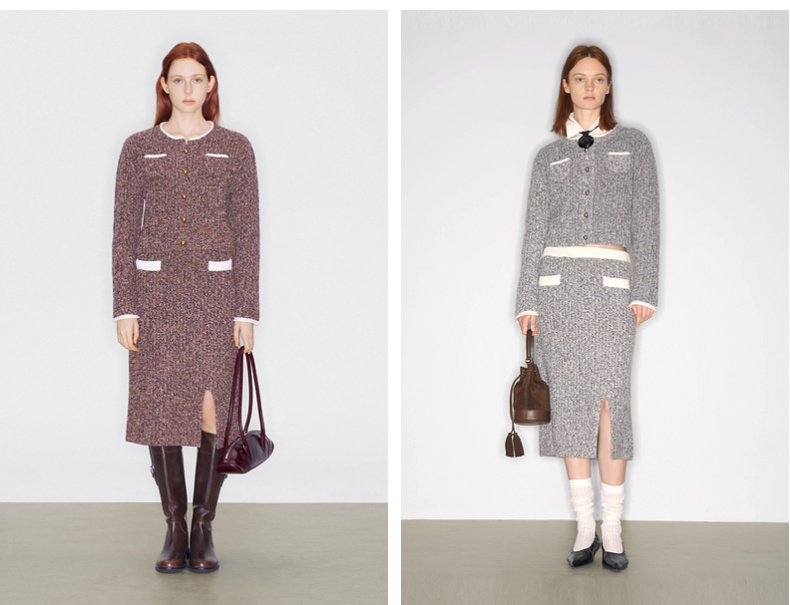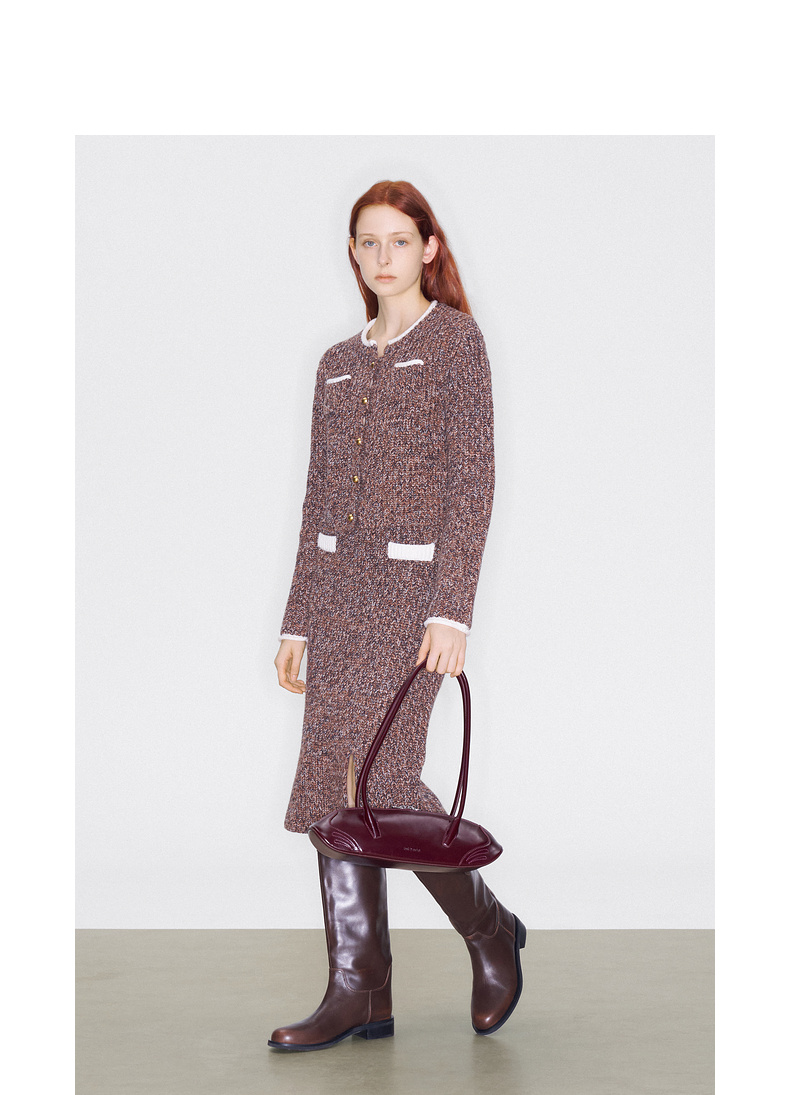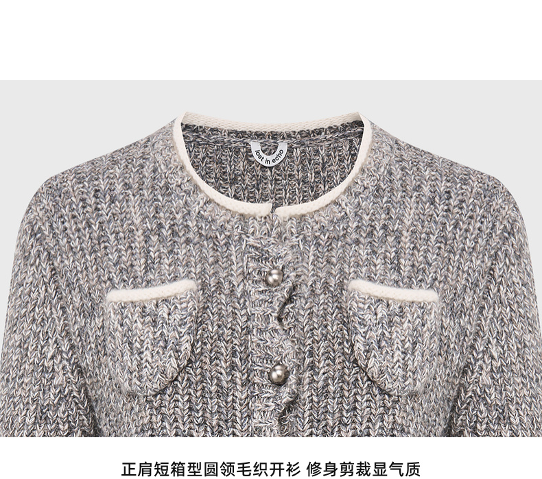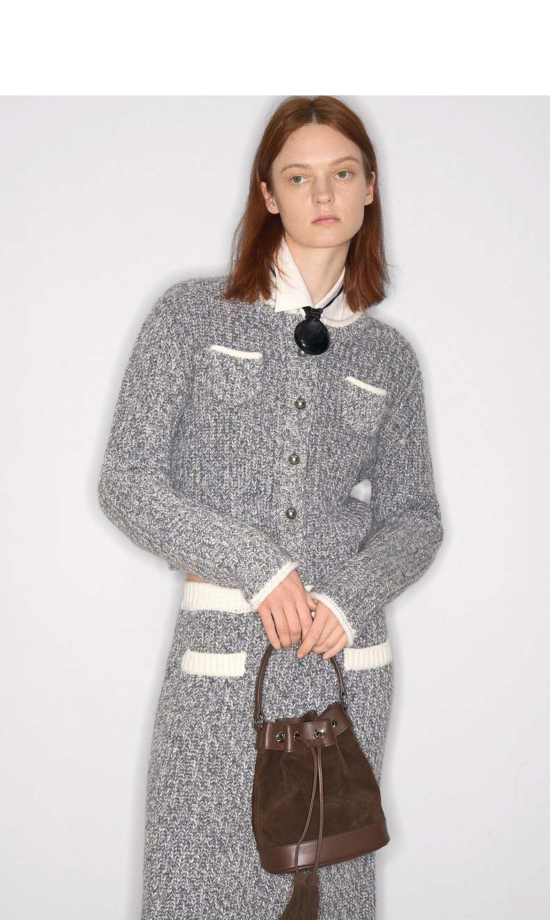 lost in echo2025早秋新款撞色卷边花纱毛织短外套直筒开衩一步裙