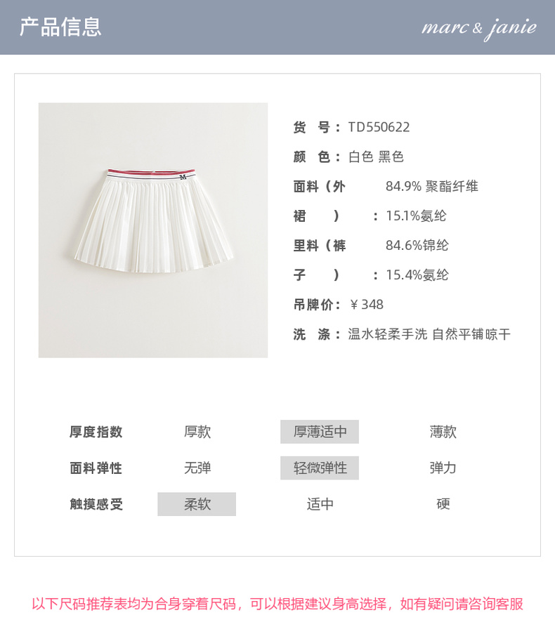 马克珍妮女童网球运动百褶裙裤儿童短裙裤子2025年夏装新款550622