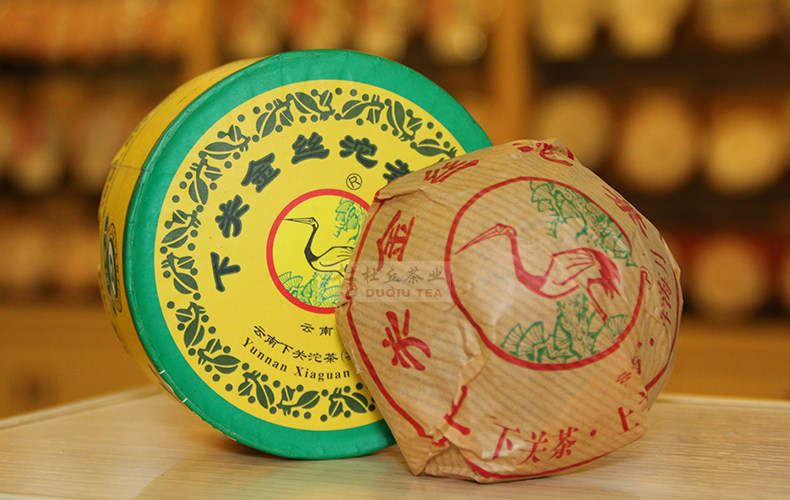 下关金丝沱,自2004年3月份面世以来,以其茶底幼嫩,口感清爽,香气张扬,生津好甜度高,深受广大茶友推崇和喜爱。特别是04年旧包装金丝沱,其外盒松鹤商标的鹤眼睛为红色,俗称红眼睛金丝沱。从2004年8月份金丝沱外包装更改后,红眼睛金丝沱已不再生产,因其存量少,品质好,已成为的一个好茶品。
