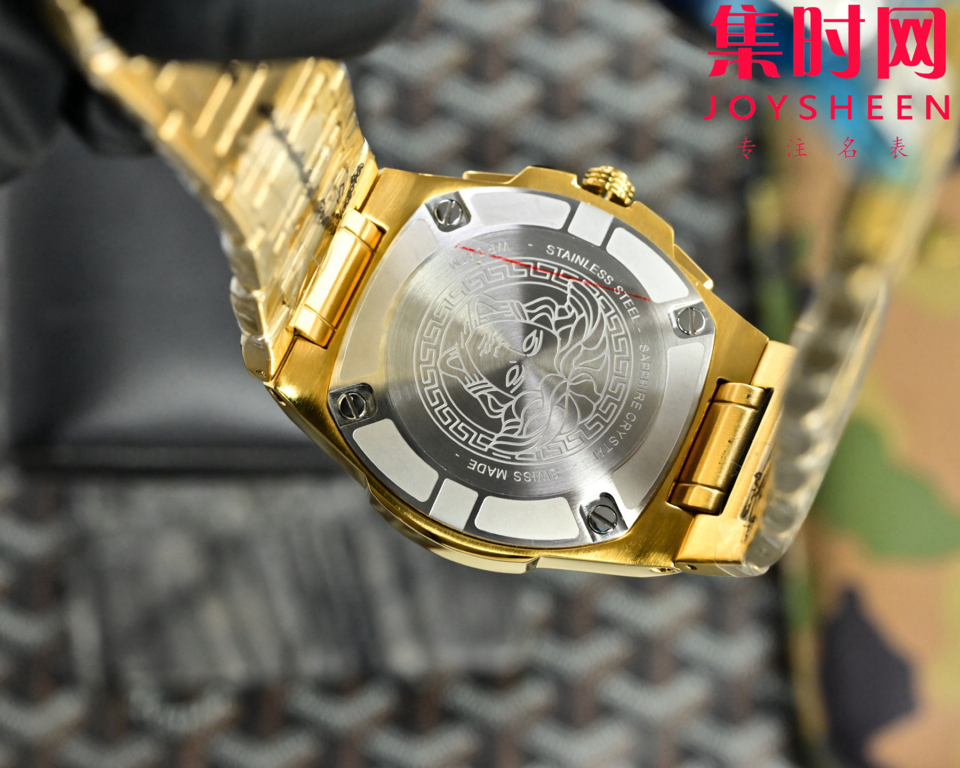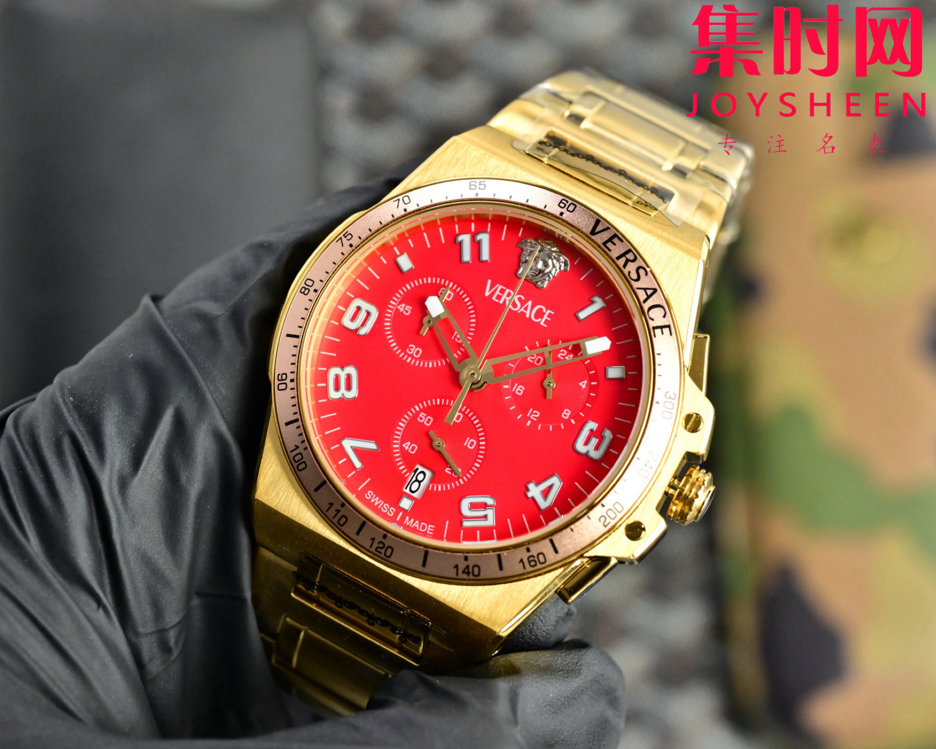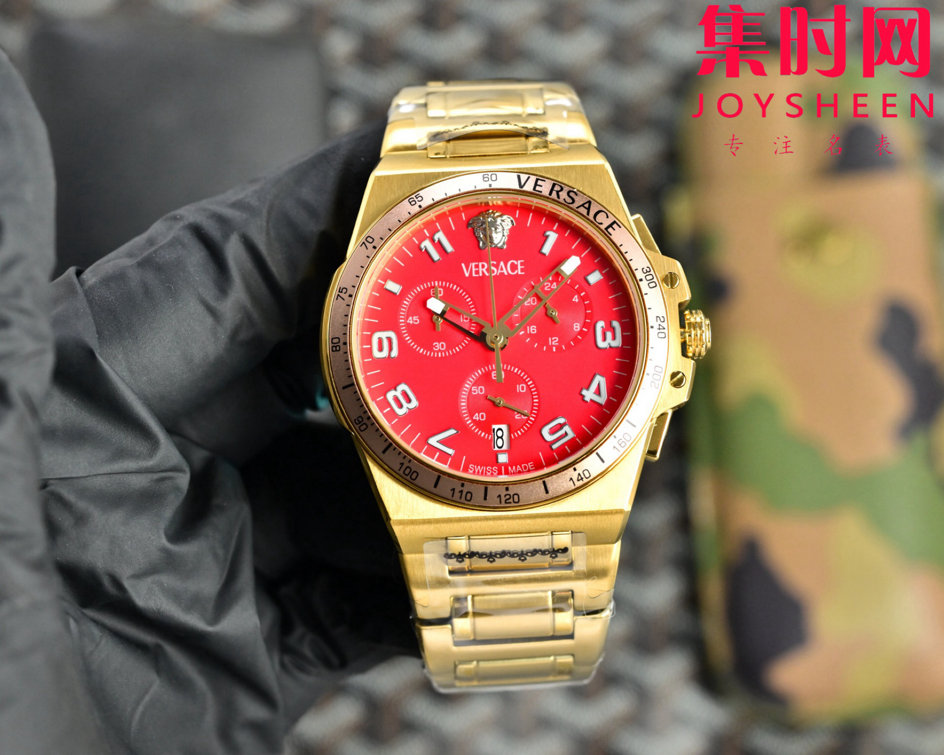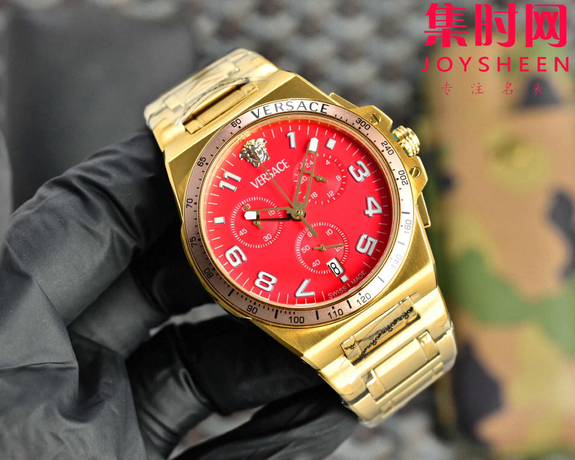 范思哲新款六针计时 多功能男士腕表 采用进口VK计时石英机芯 316L精钢表壳表带 表径45mm 希腊回纹环绕表圈,浮雕英文优雅表面,12点位美杜莎浮雕头像,一眼勾勒迷人视线。成功男士值得拥有。