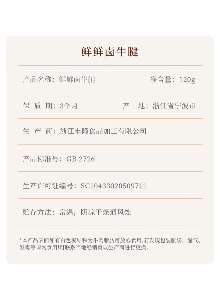 太丰鲜鲜卤牛腱120g 精选牛腱子整块原切 肉筋相间