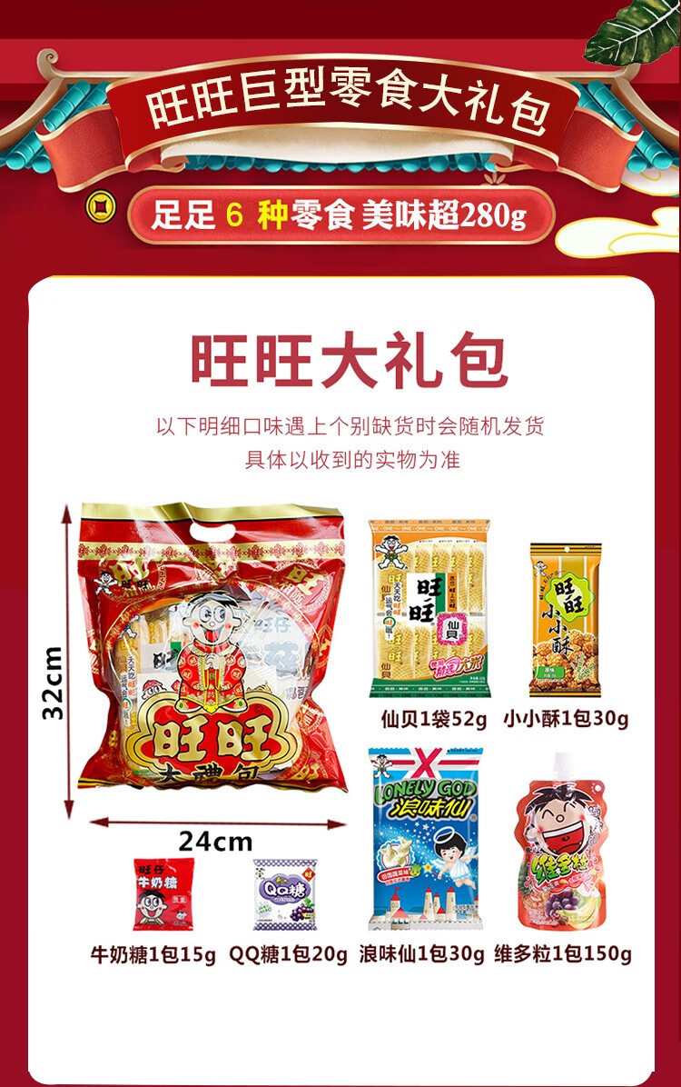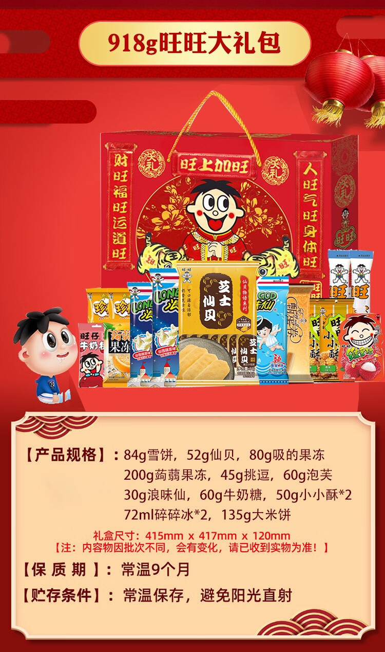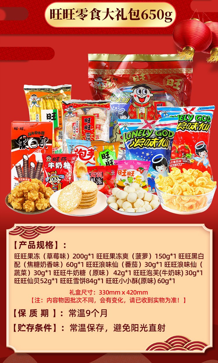 【童年记忆中的味道,旺旺零食大礼包】把美味和爱带回家,多款零食多规格礼盒,送亲朋好友首选巨型大零食礼盒