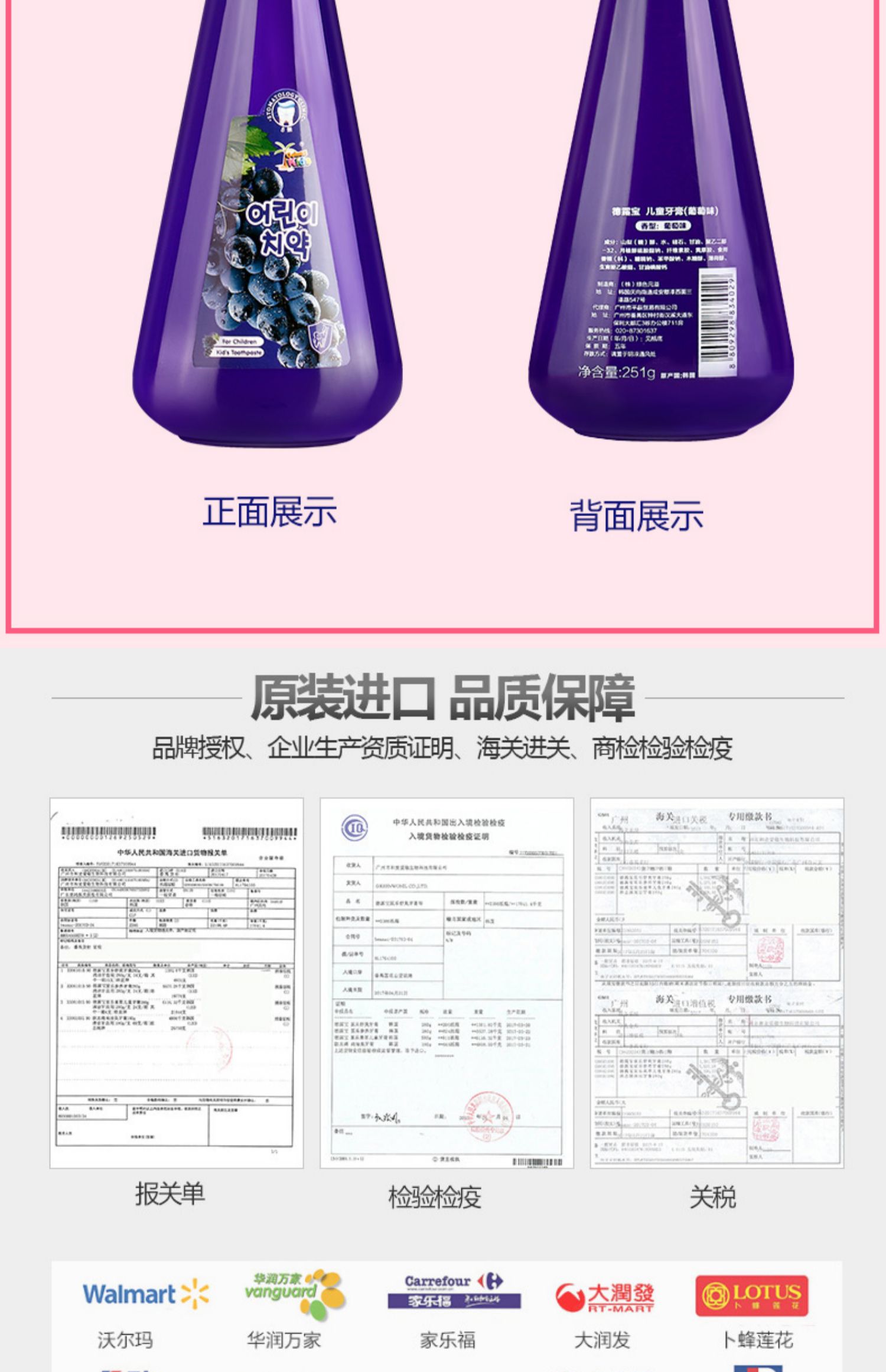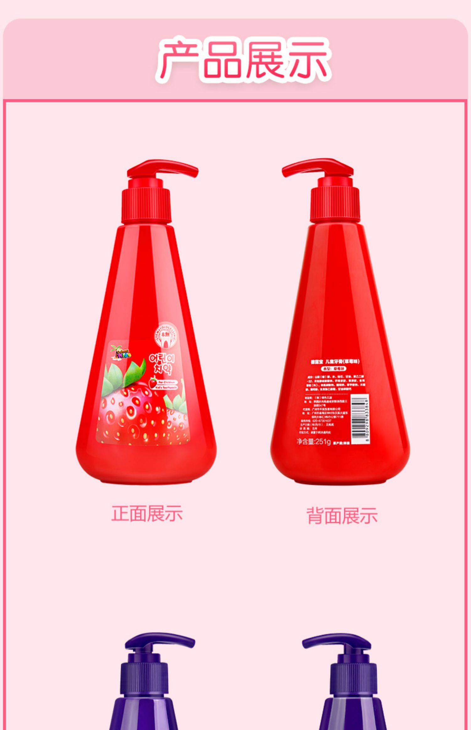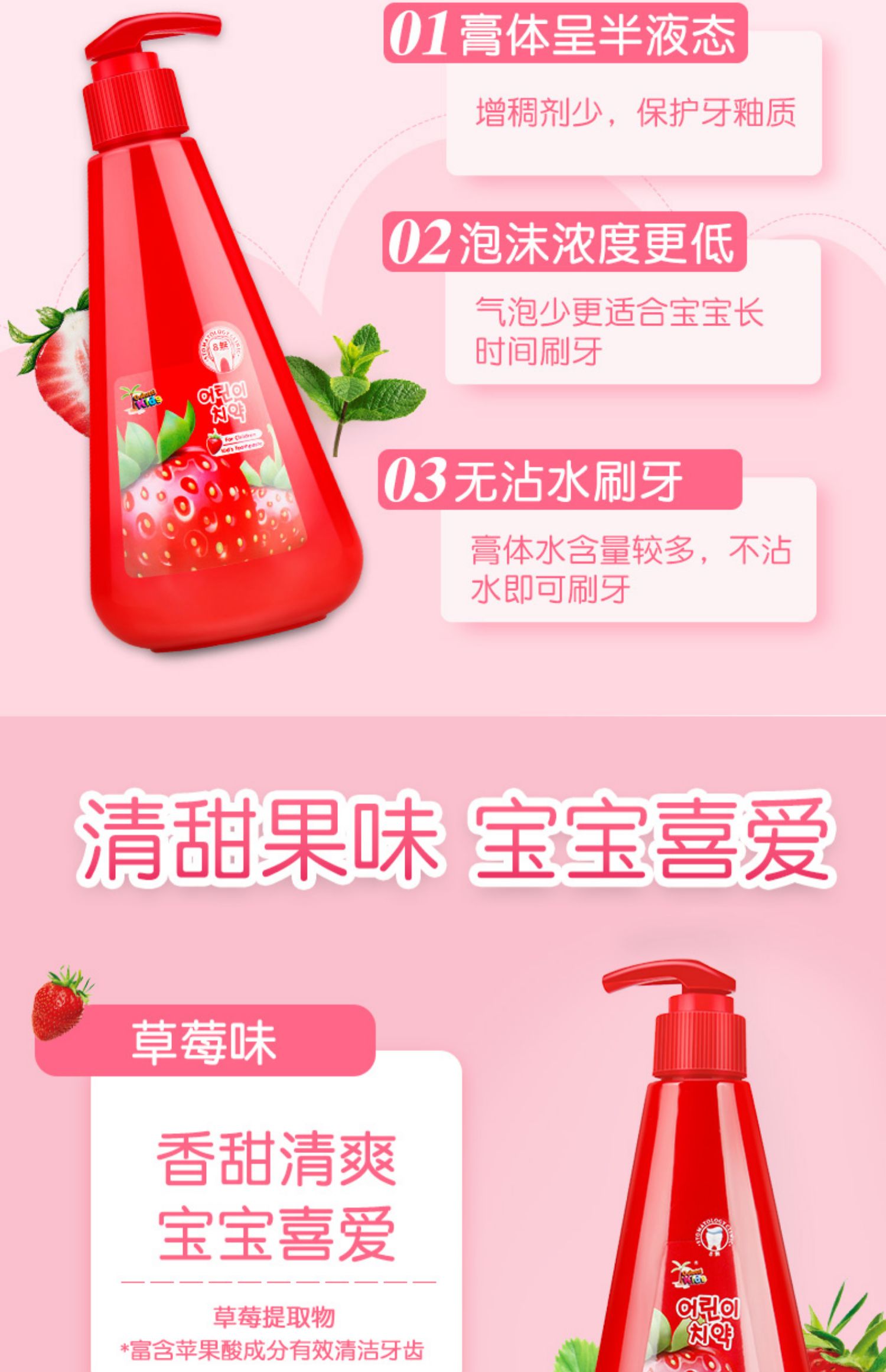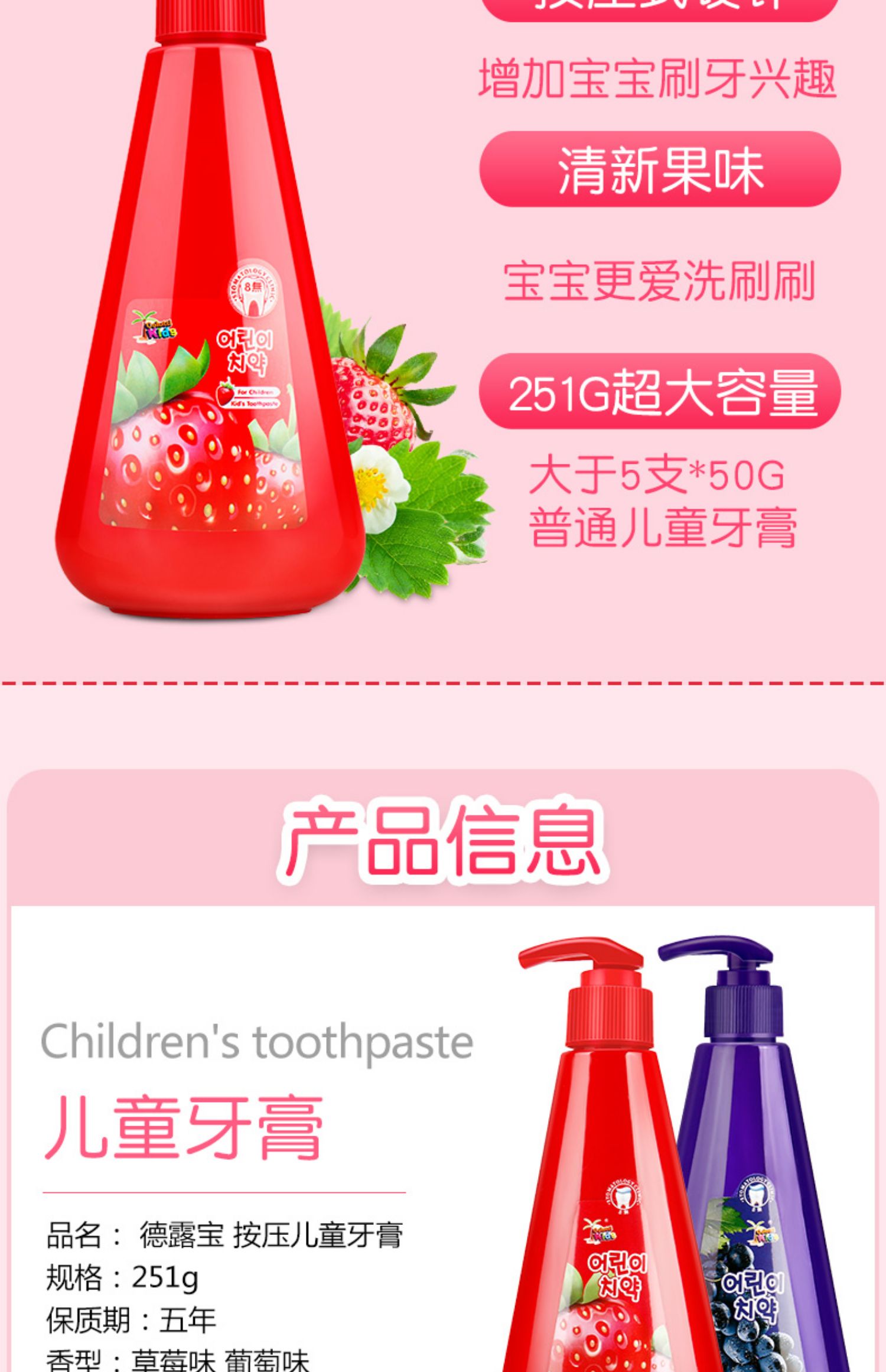 【中欧班列精选】韩国儿童牙膏 原装进口德露宝儿童牙膏按压式 251g/支
