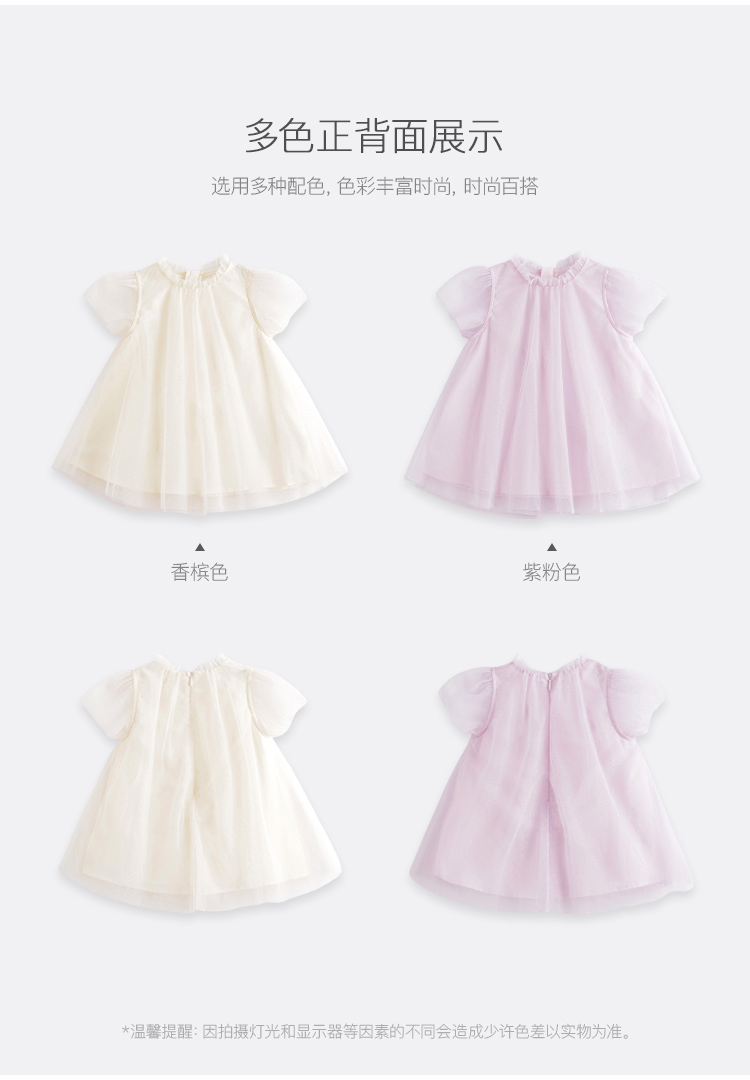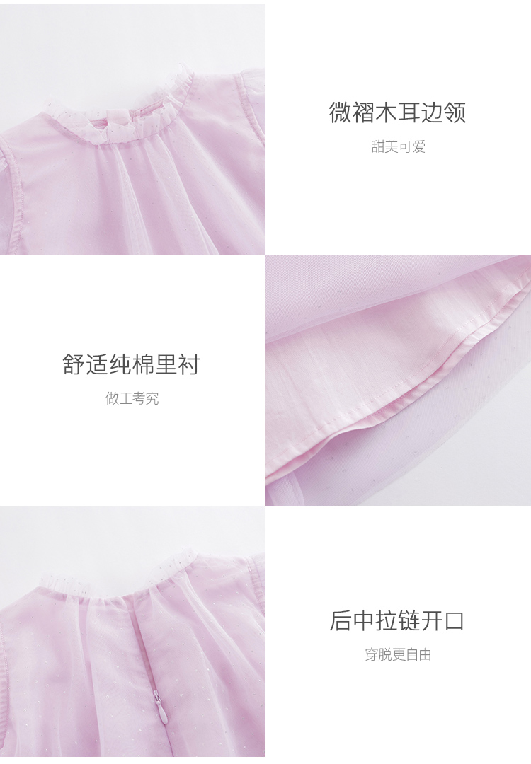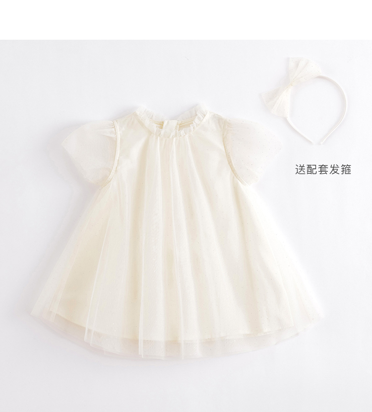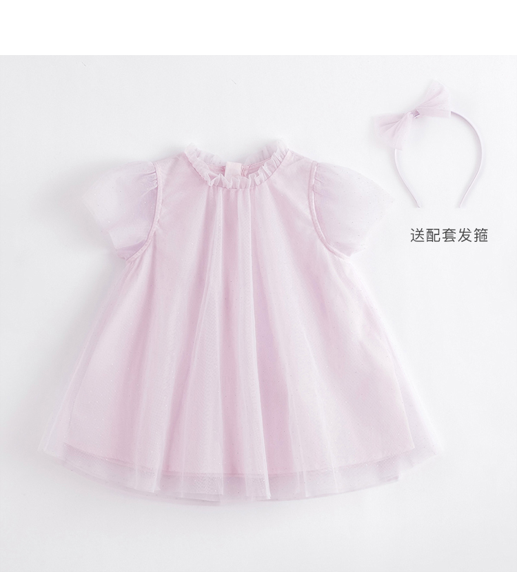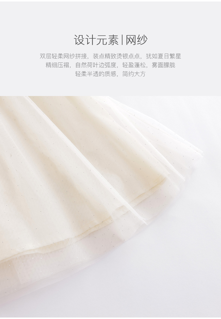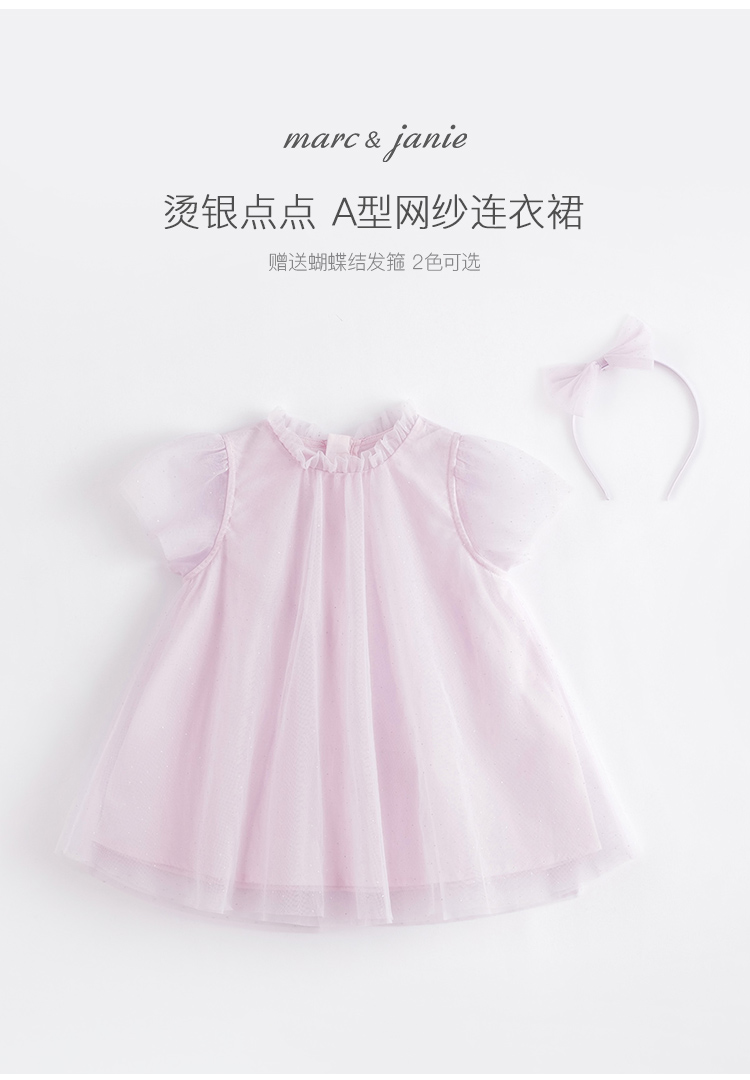 马克珍妮夏装新款 女童A版烫银点点网纱短袖连衣裙220972