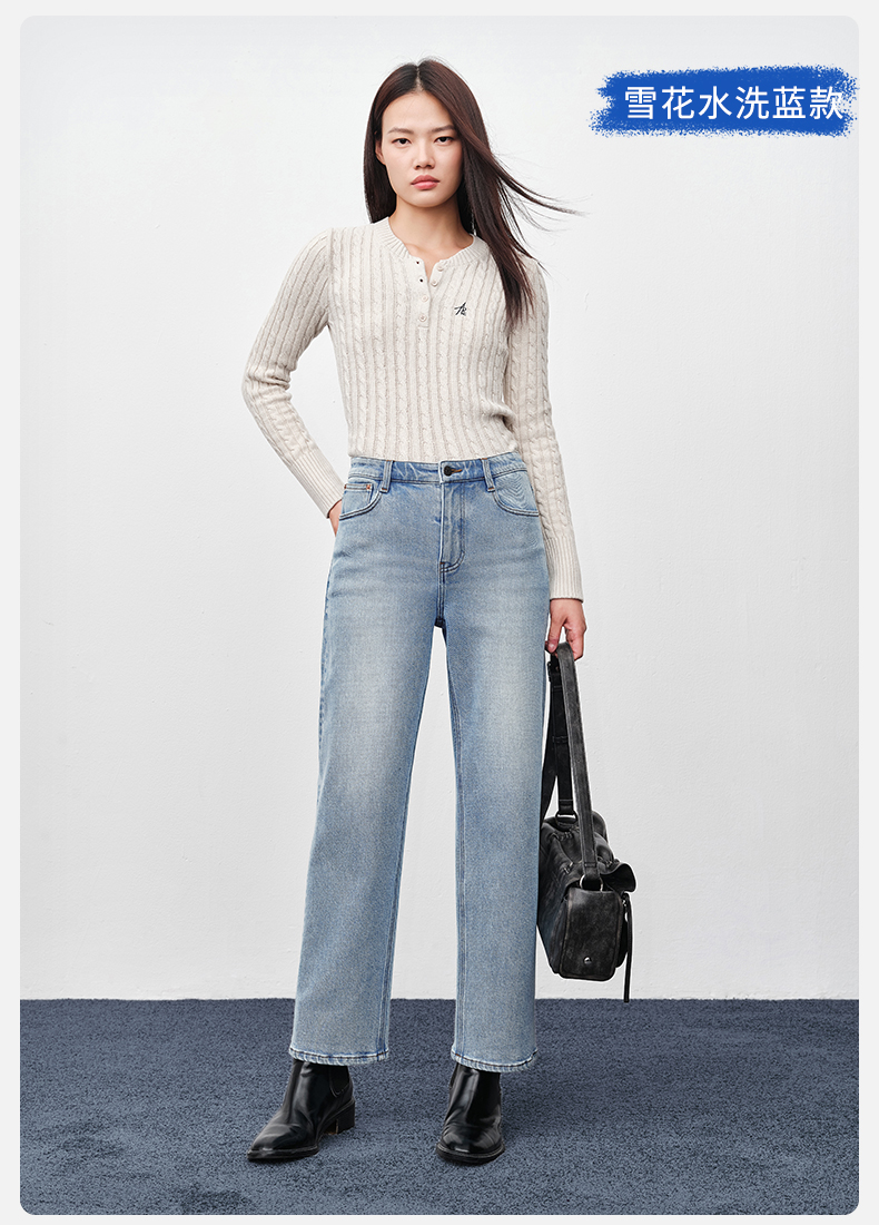 【保暖宽松薯条裤】simplepieces秋冬新款SPS牛仔拖地阔腿直筒裤