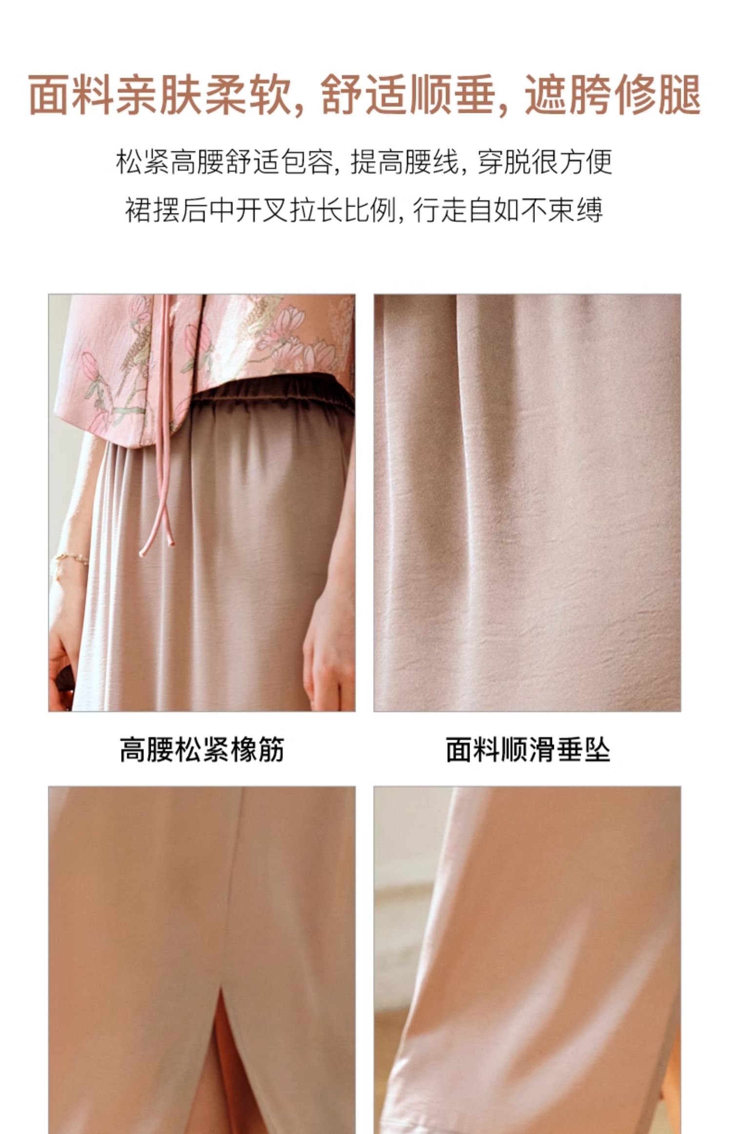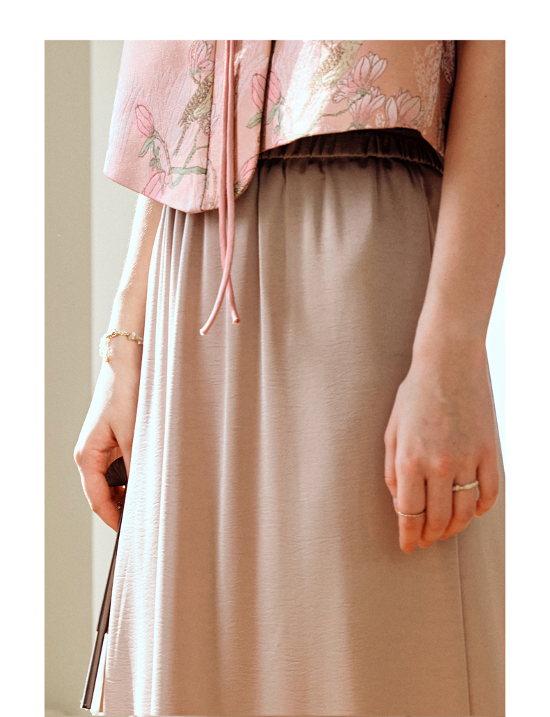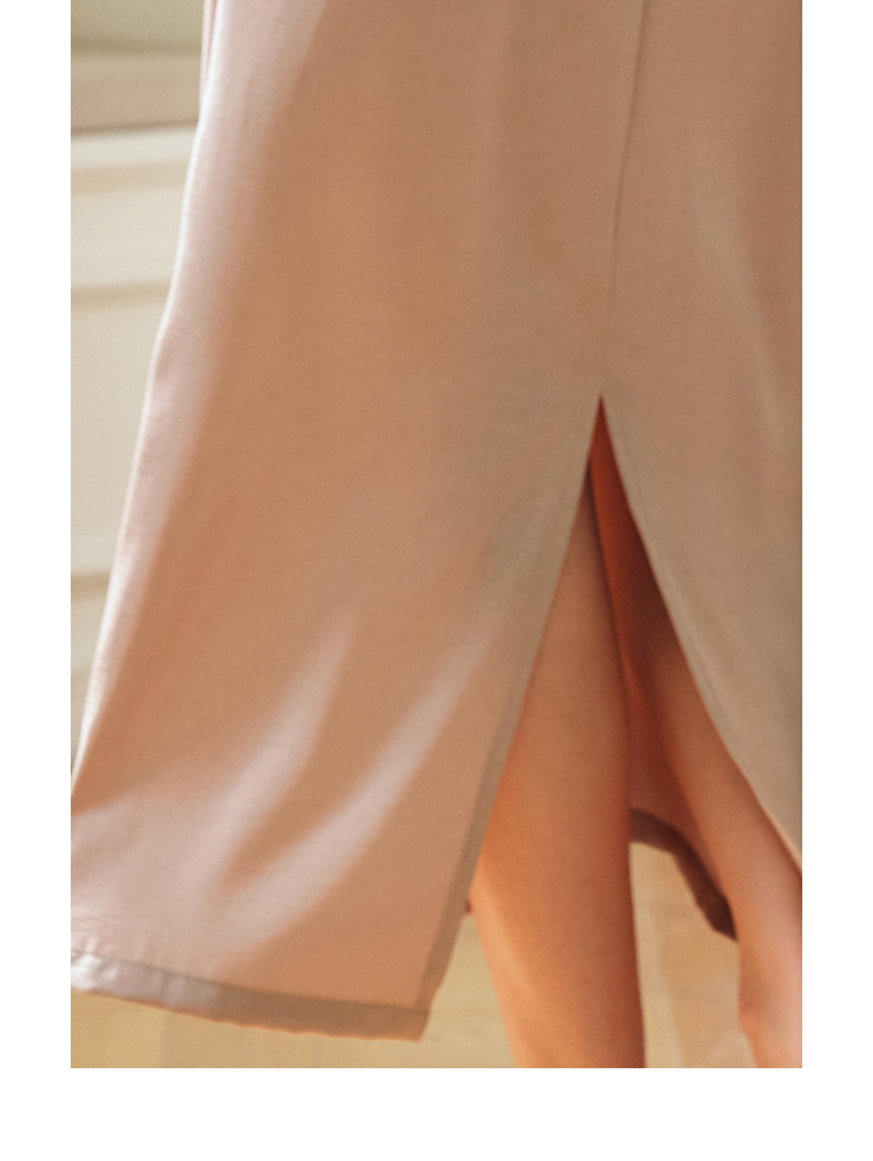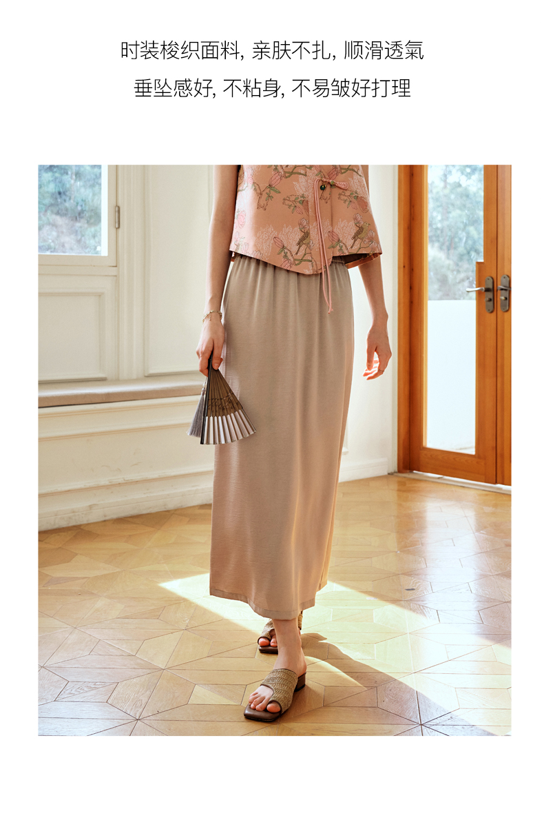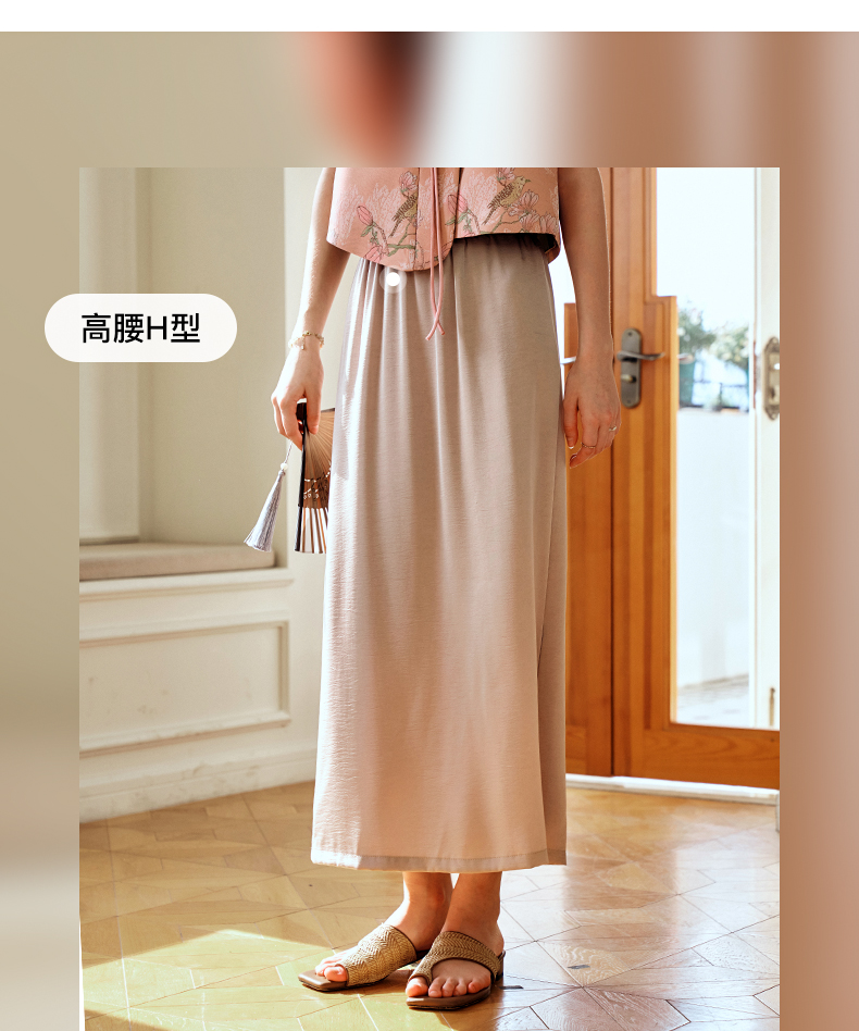 OLrain欧芮儿粉色高腰半身裙女夏季2024年新款气质百搭开叉半裙