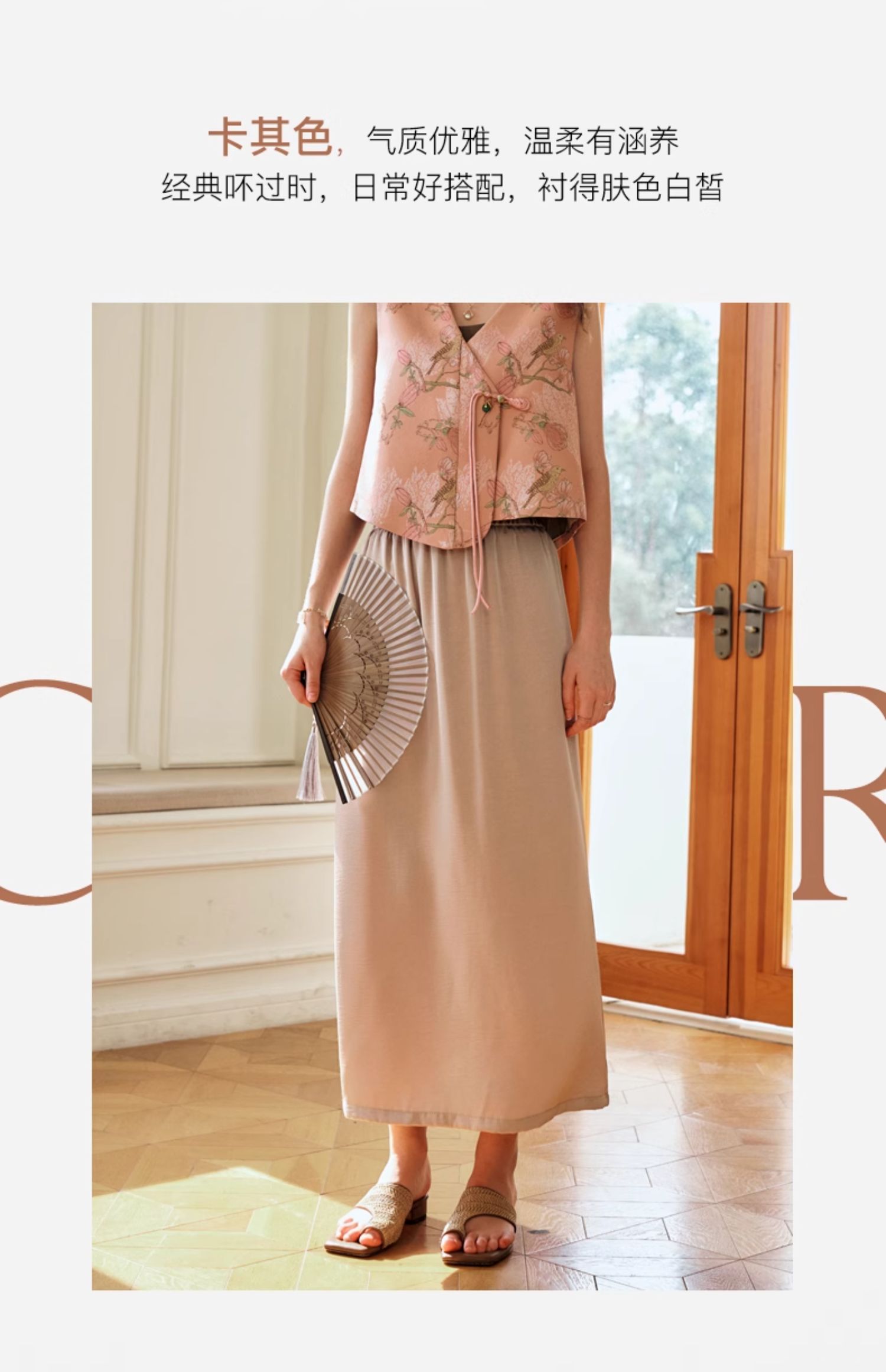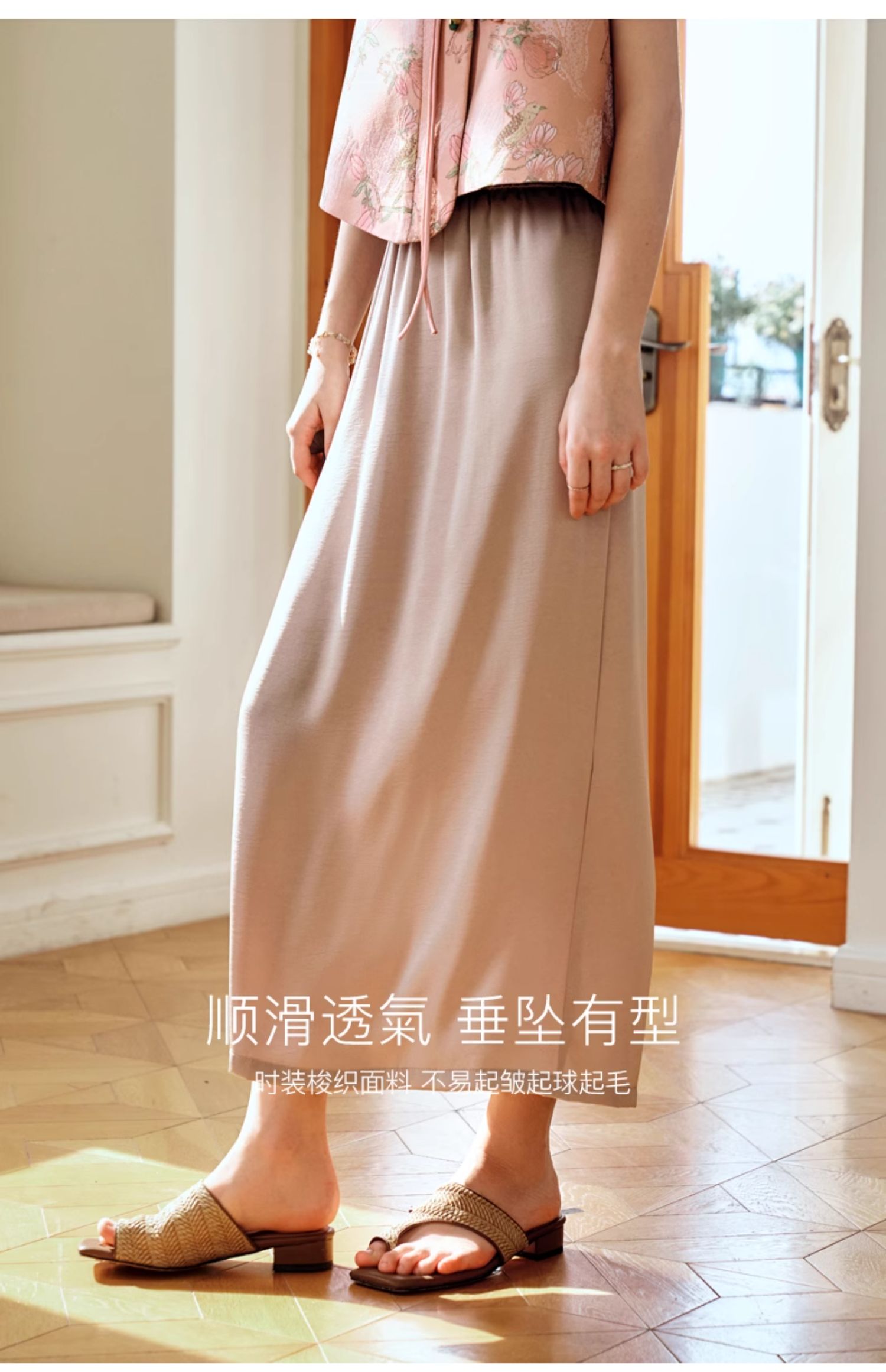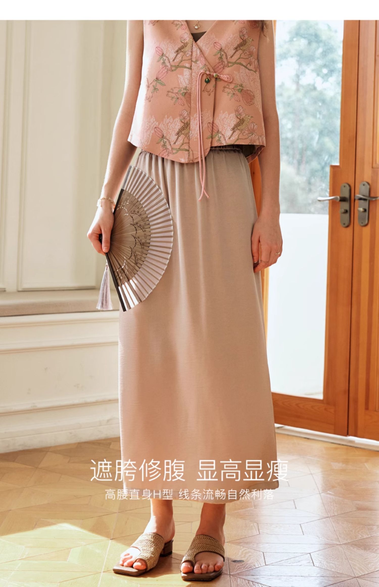 OLrain欧芮儿粉色高腰半身裙女夏季2024年新款气质百搭开叉半裙