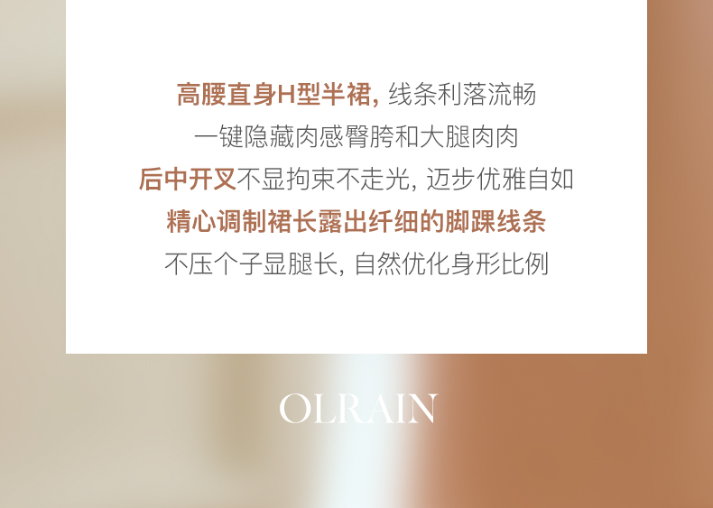 - “精致”是欧芮儿olrain品牌文化的核心,欧芮儿认为,精致的女人,不但要外在动人,更要内在迷人,内外兼修,有魅力、有气质、有内涵,自信而不自傲,优雅而不矫揉,自有万种风情而不轻浮,更不故作矜持。