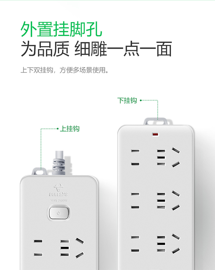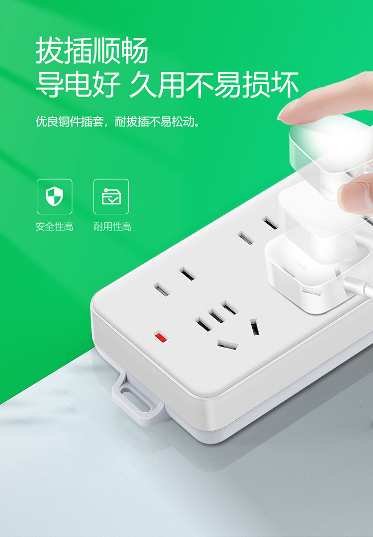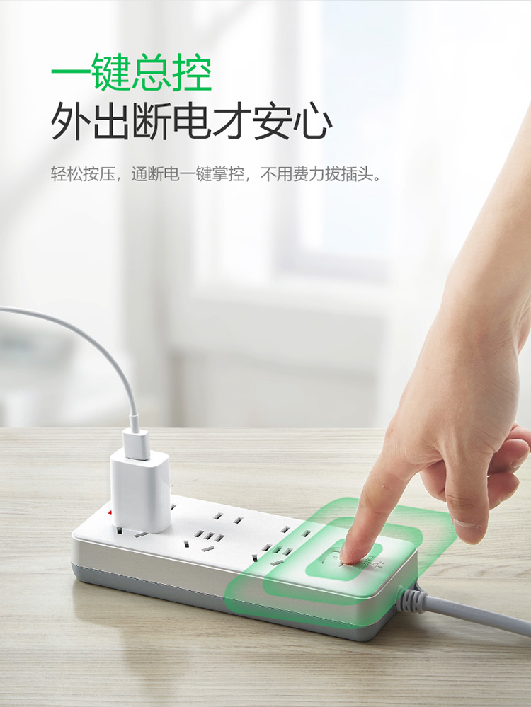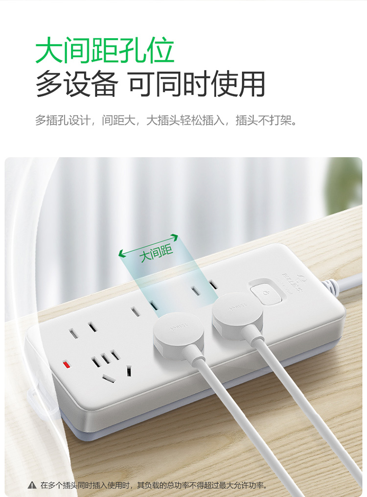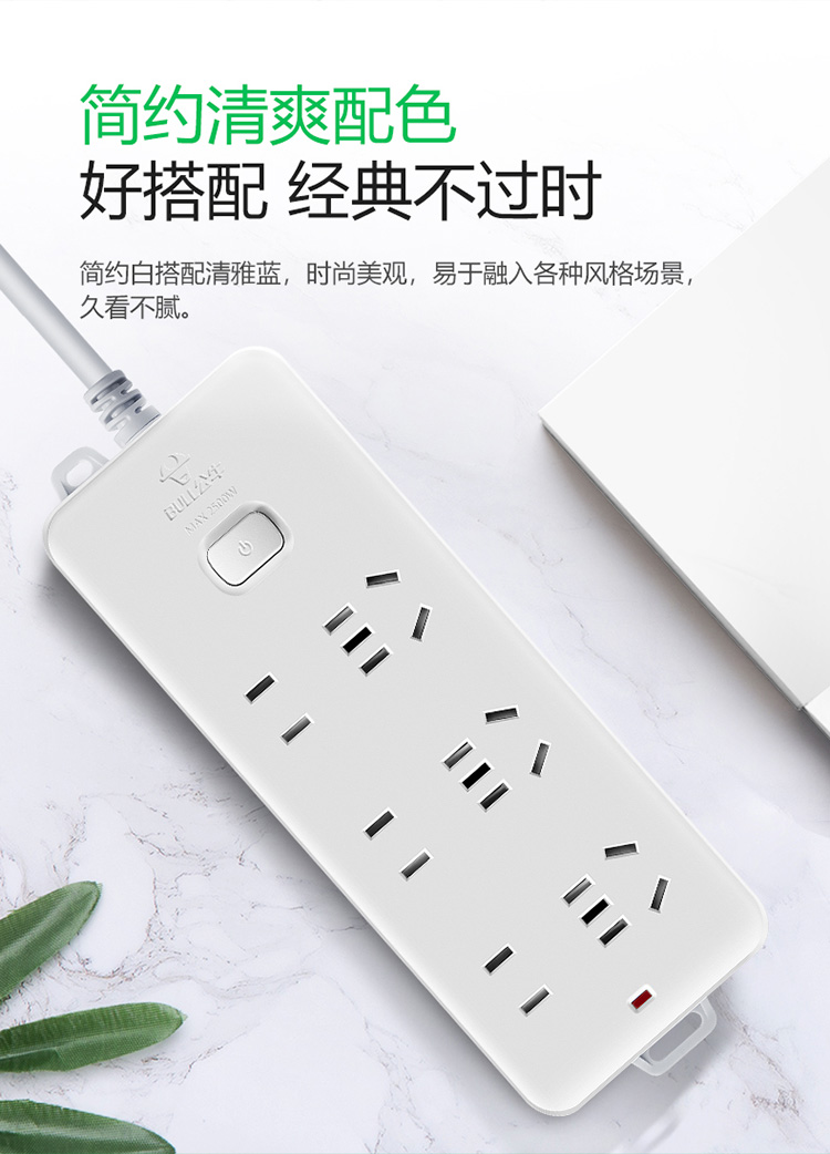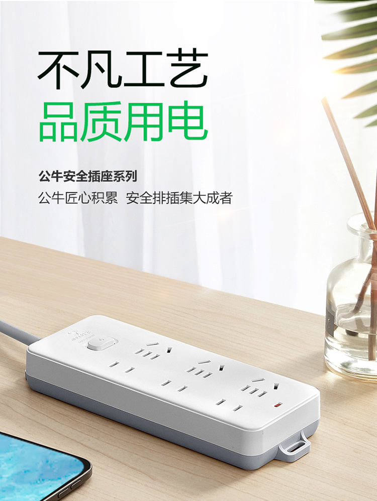 公牛(BULL)新国标插座/插线板/插排/排插/接线板/拖线板 GN-402 6位总控1.8米
