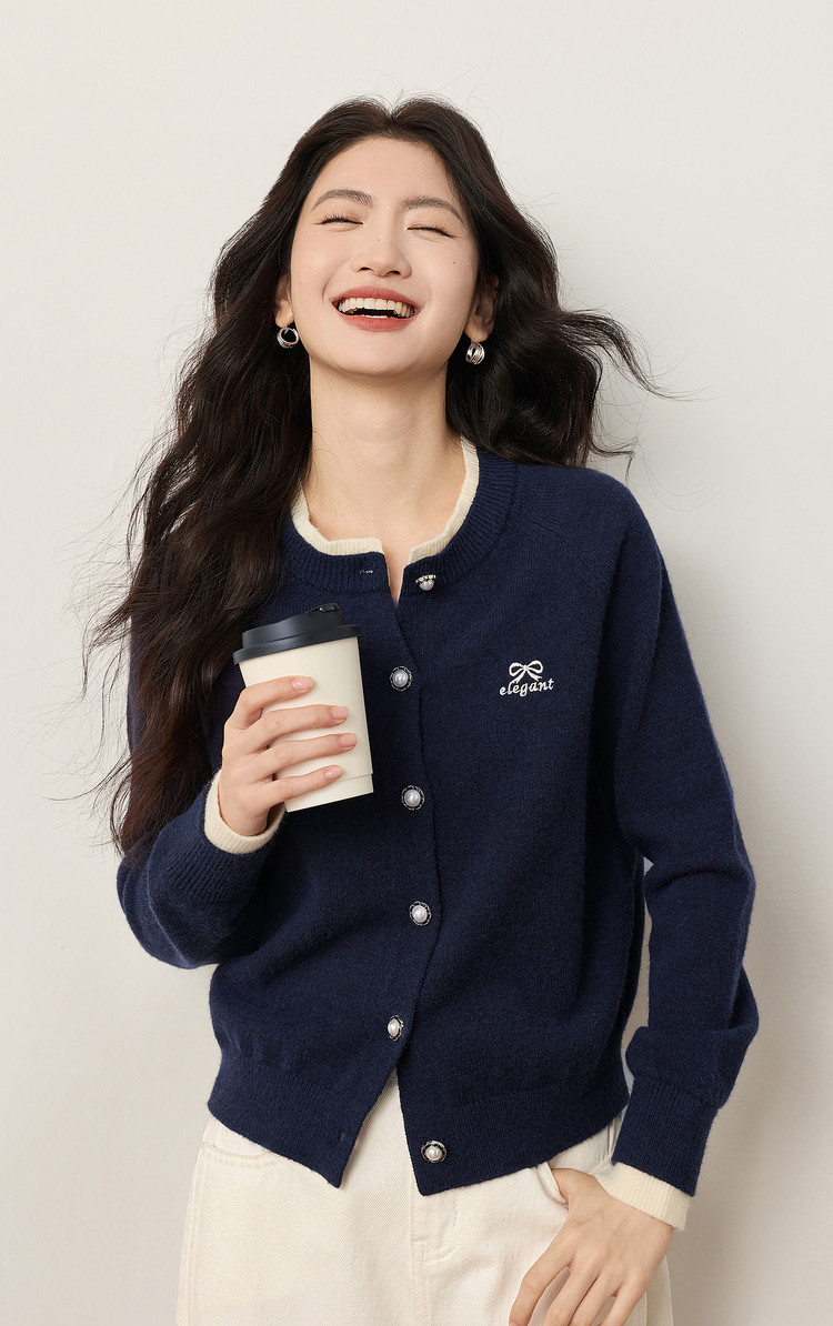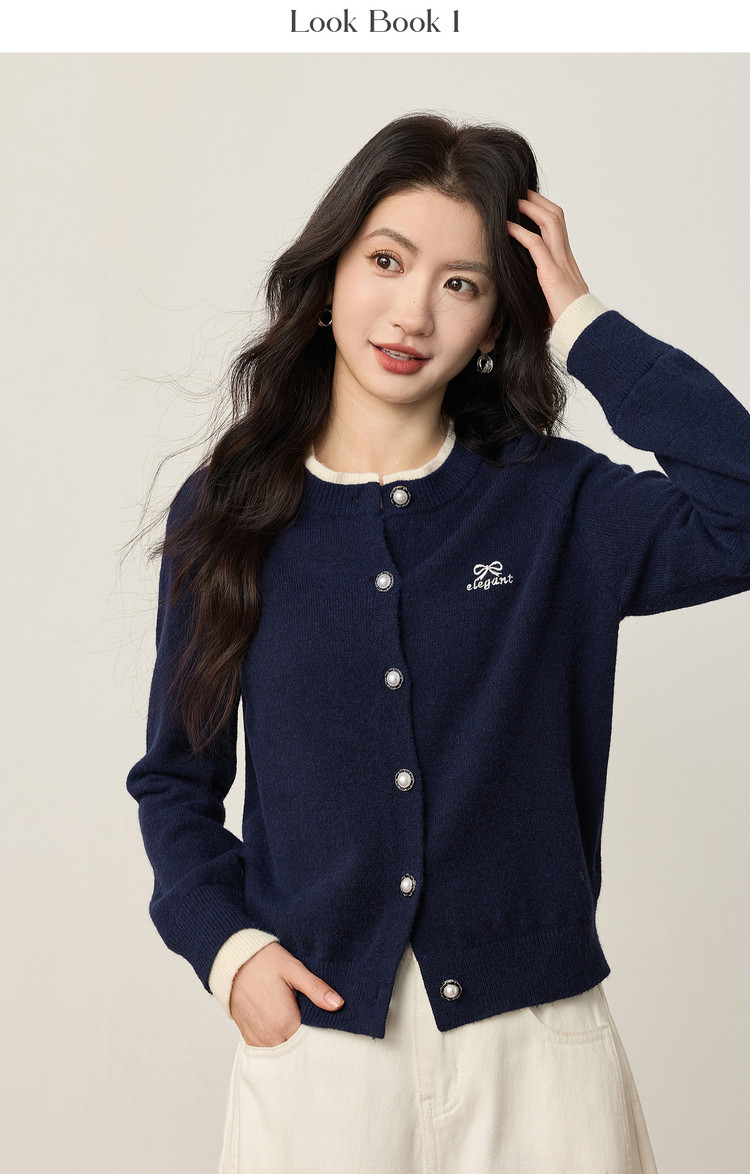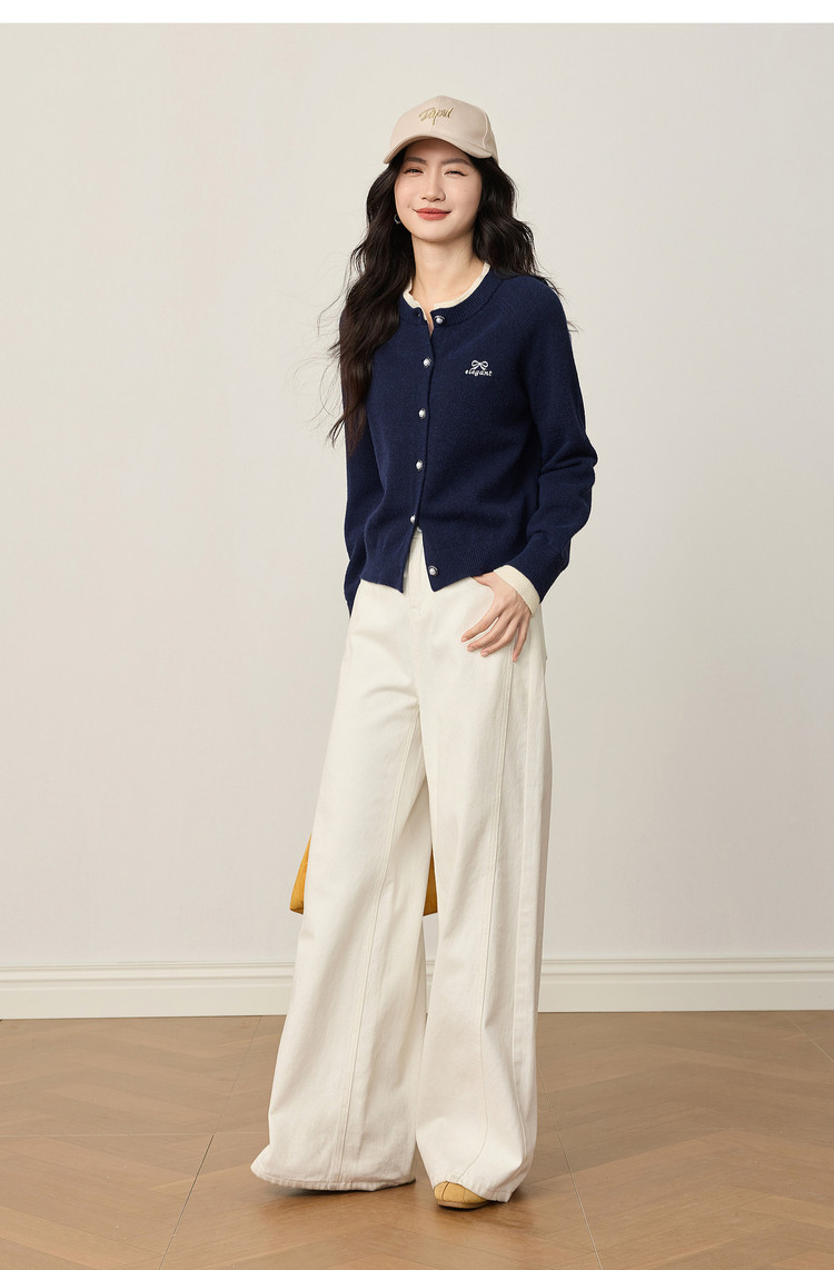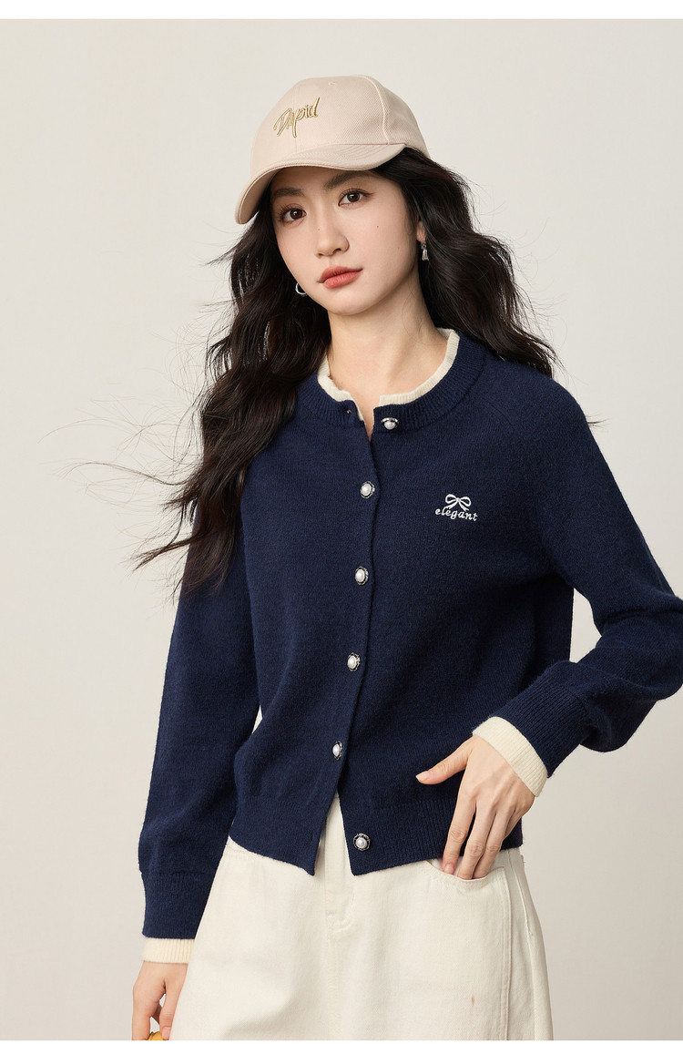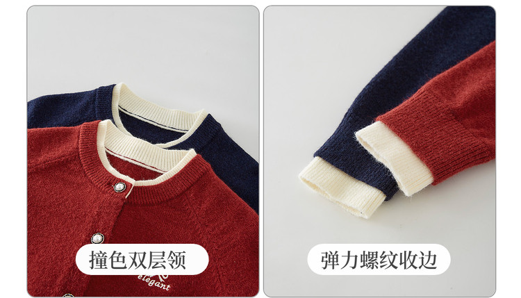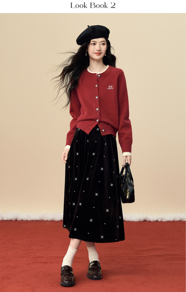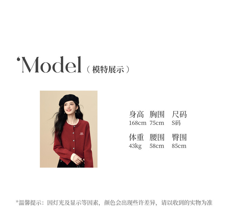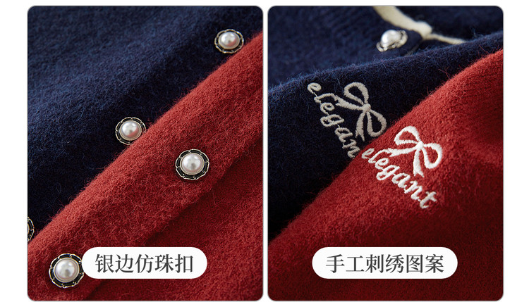 【12/24新品6.5折】熙世界学院风蝴蝶结刺绣针织衫女秋冬长袖短外套红色圣诞开衫毛衣