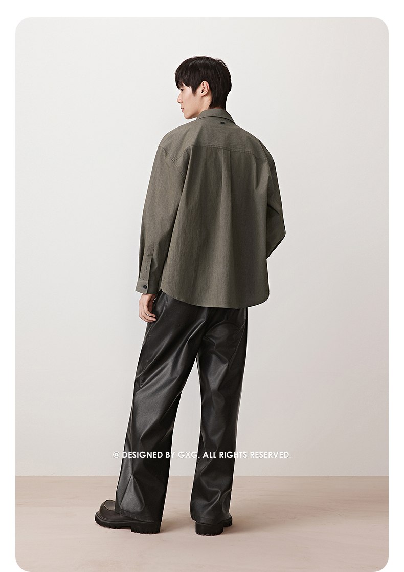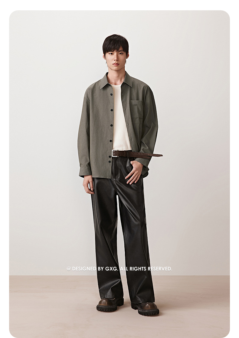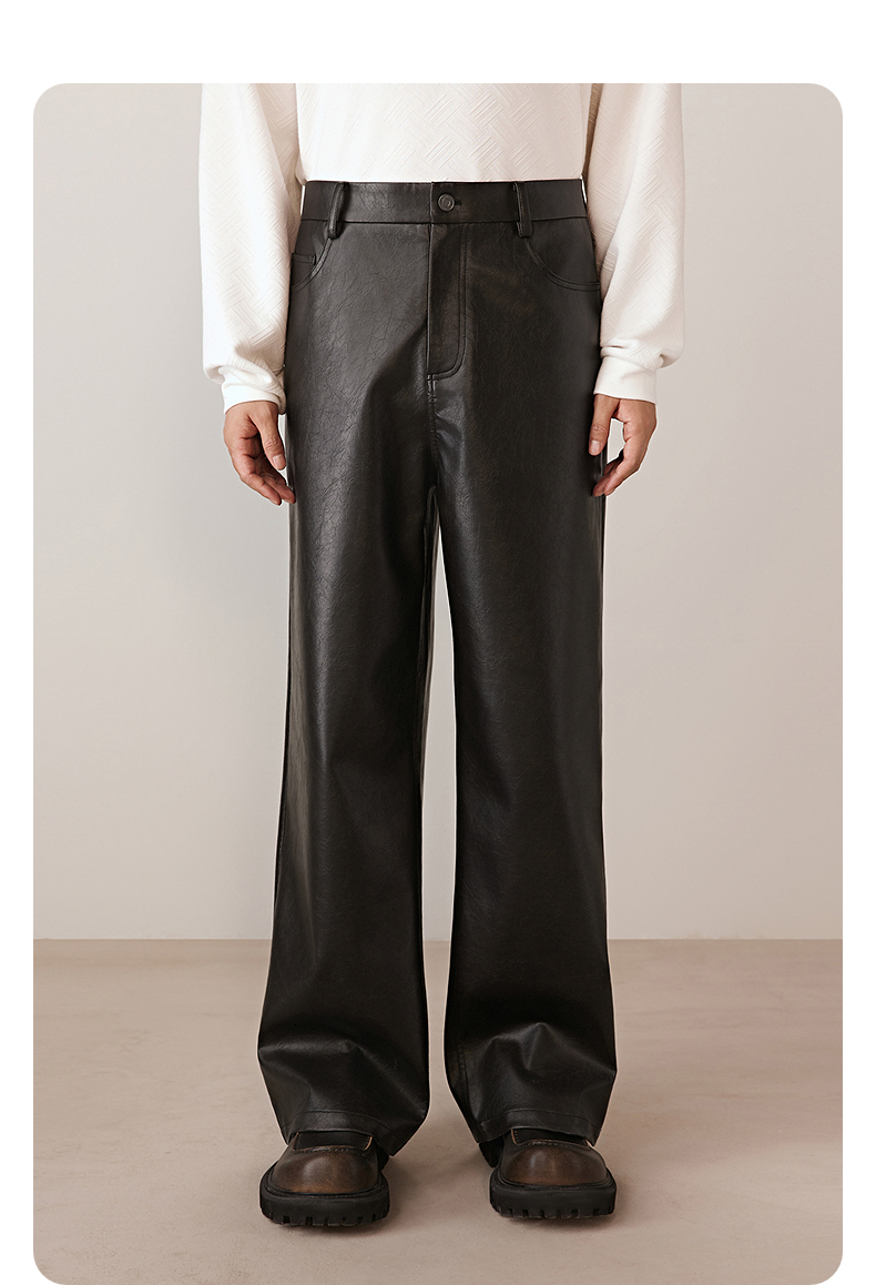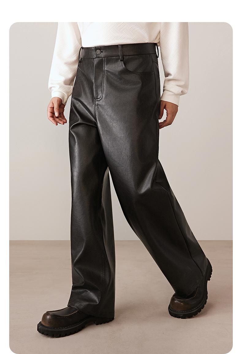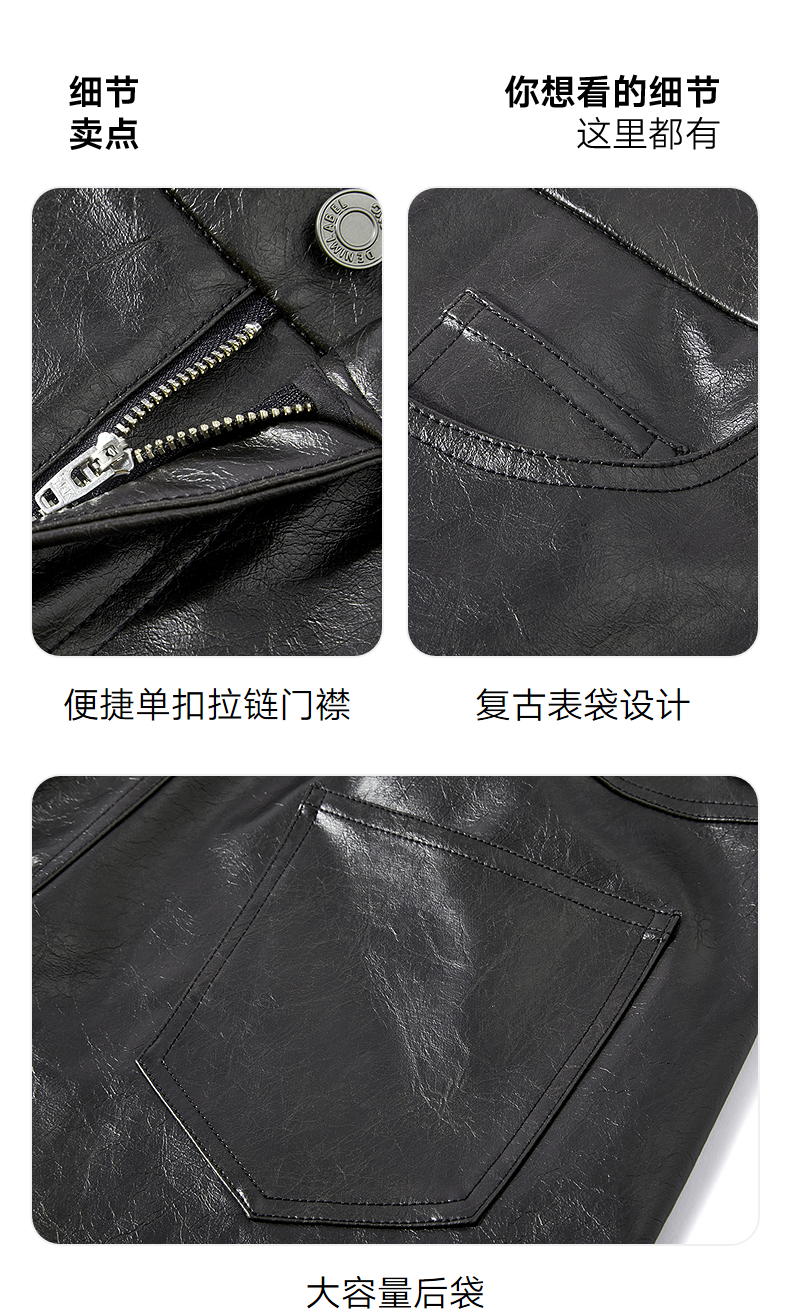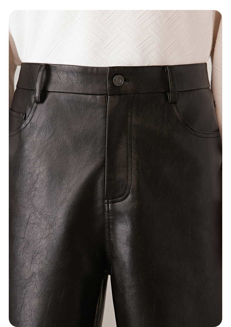 GXG男装 复古擦色pu长裤潮流时尚pu皮休闲裤男士裤 2025秋季热卖