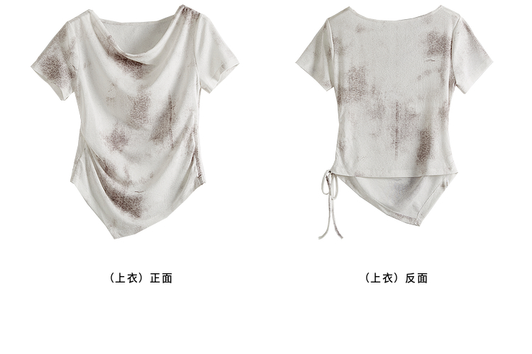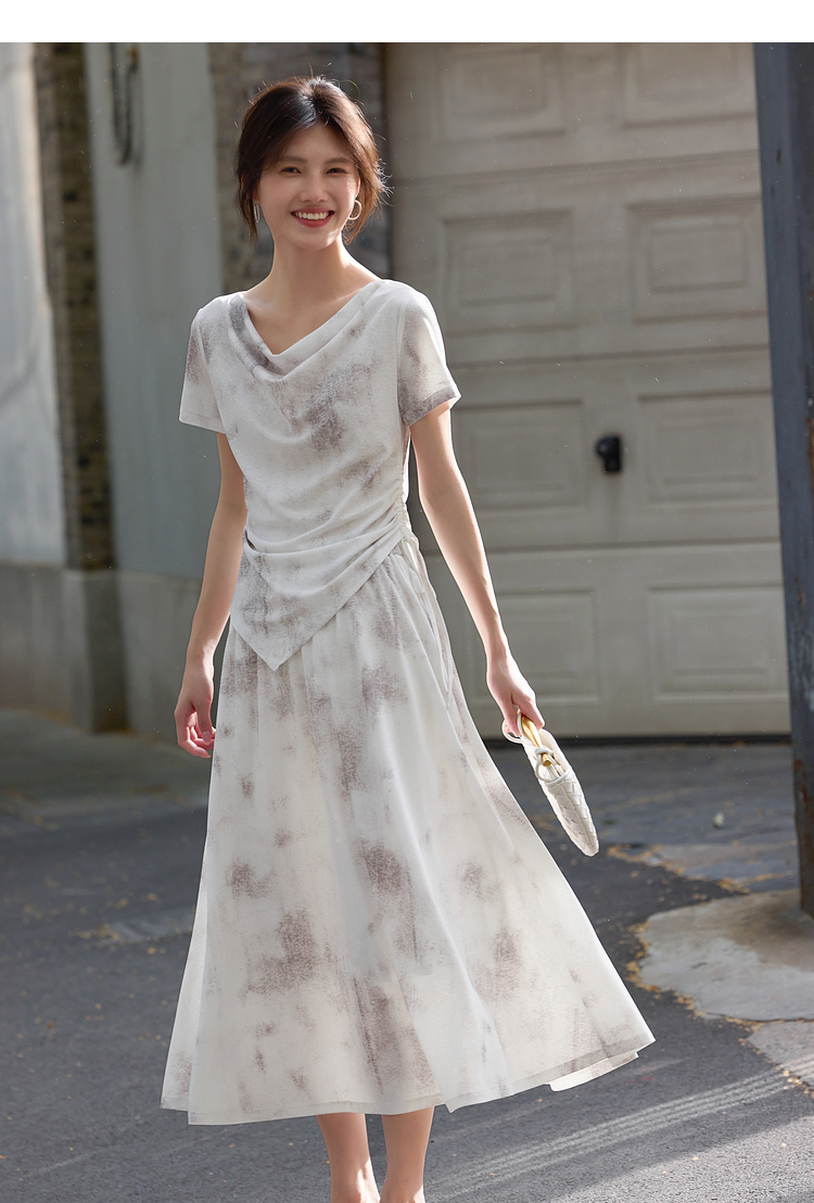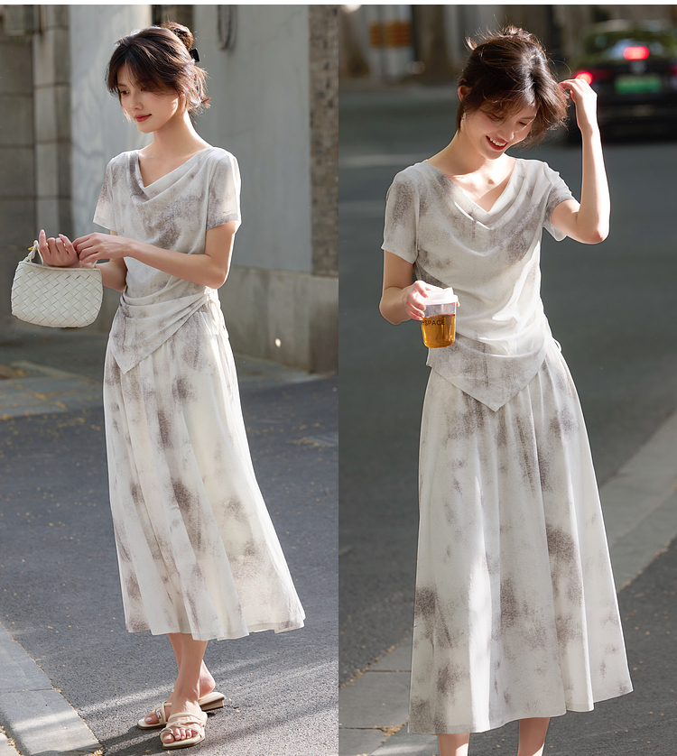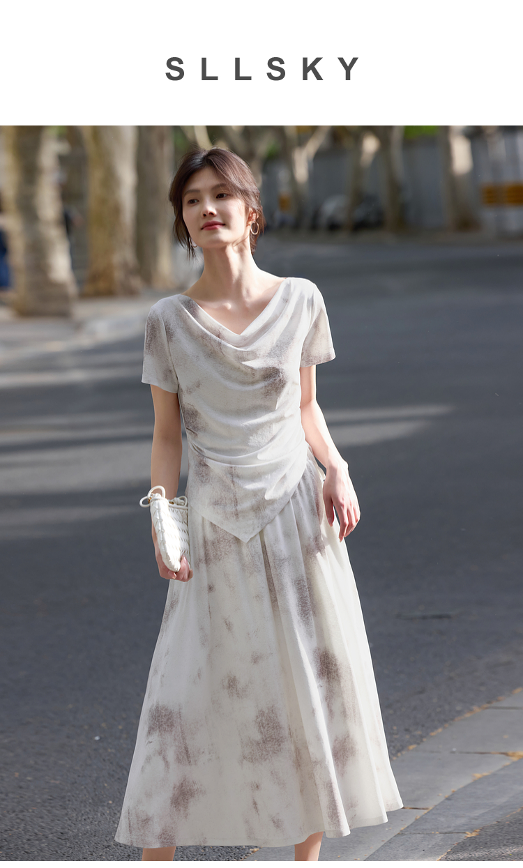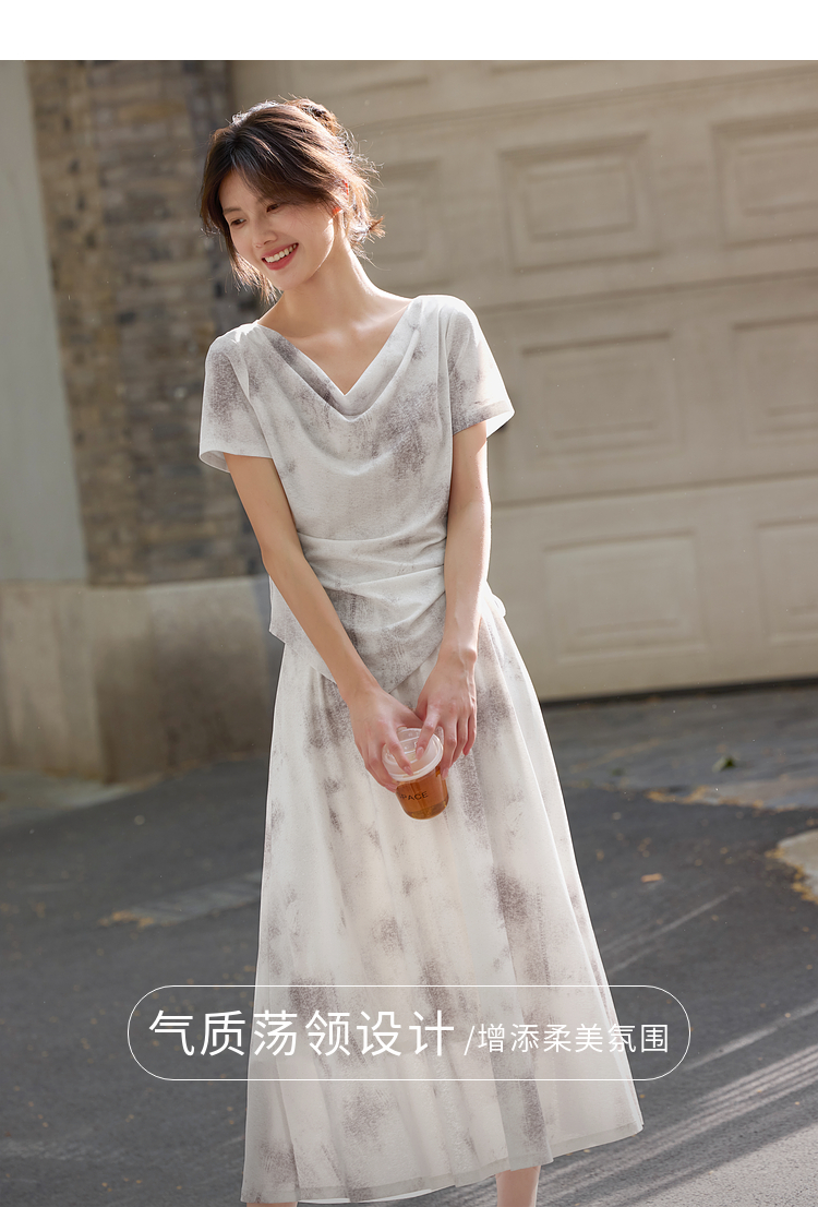 【07/16新品】熙世界轻国风复古晕染套装女2025夏装新款荡领上衣A字伞裙两件套