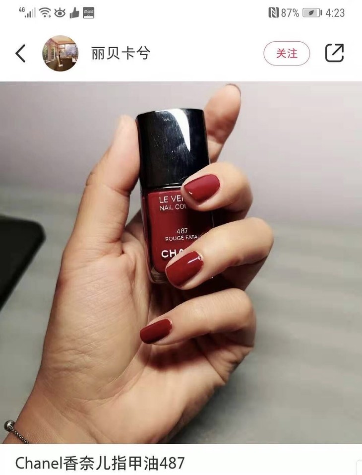 香奈儿指甲油,超级顺滑,487,致命胭脂,她是一种稍带暖调偏暗的正红,有一点点复古,
