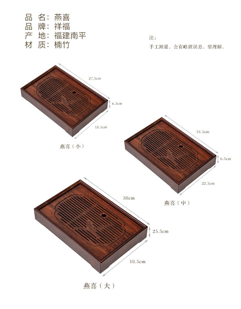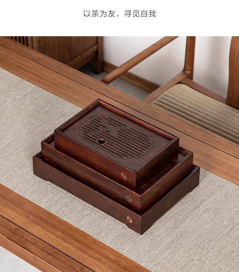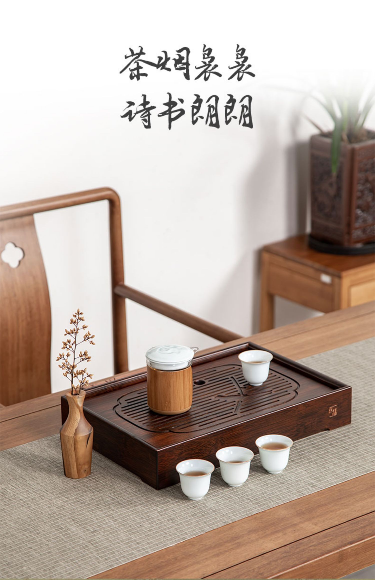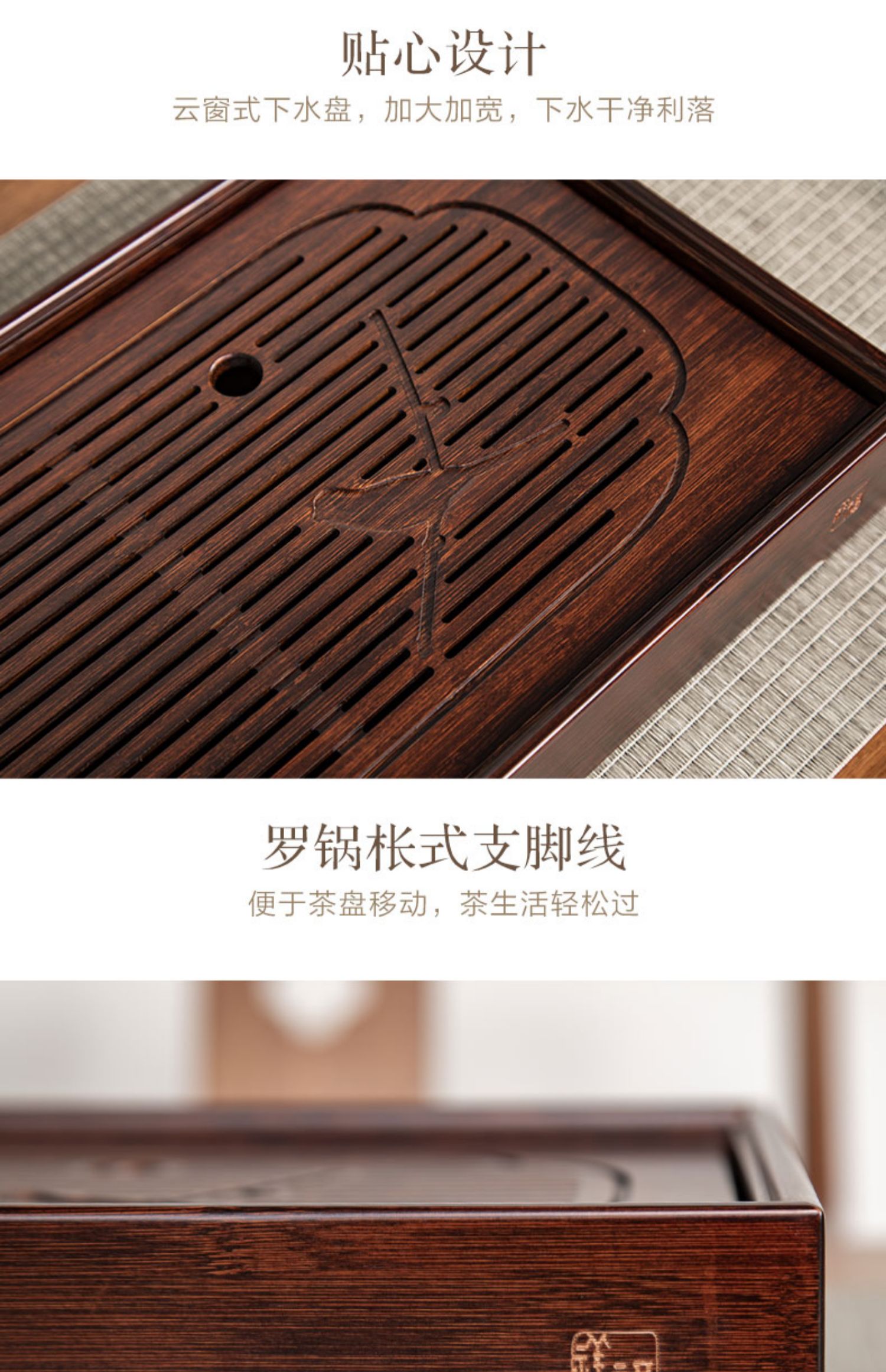 祥福燕喜茶盘 现代纯天然高端电木家用储水干泡台茶台托盘茶海茶几
