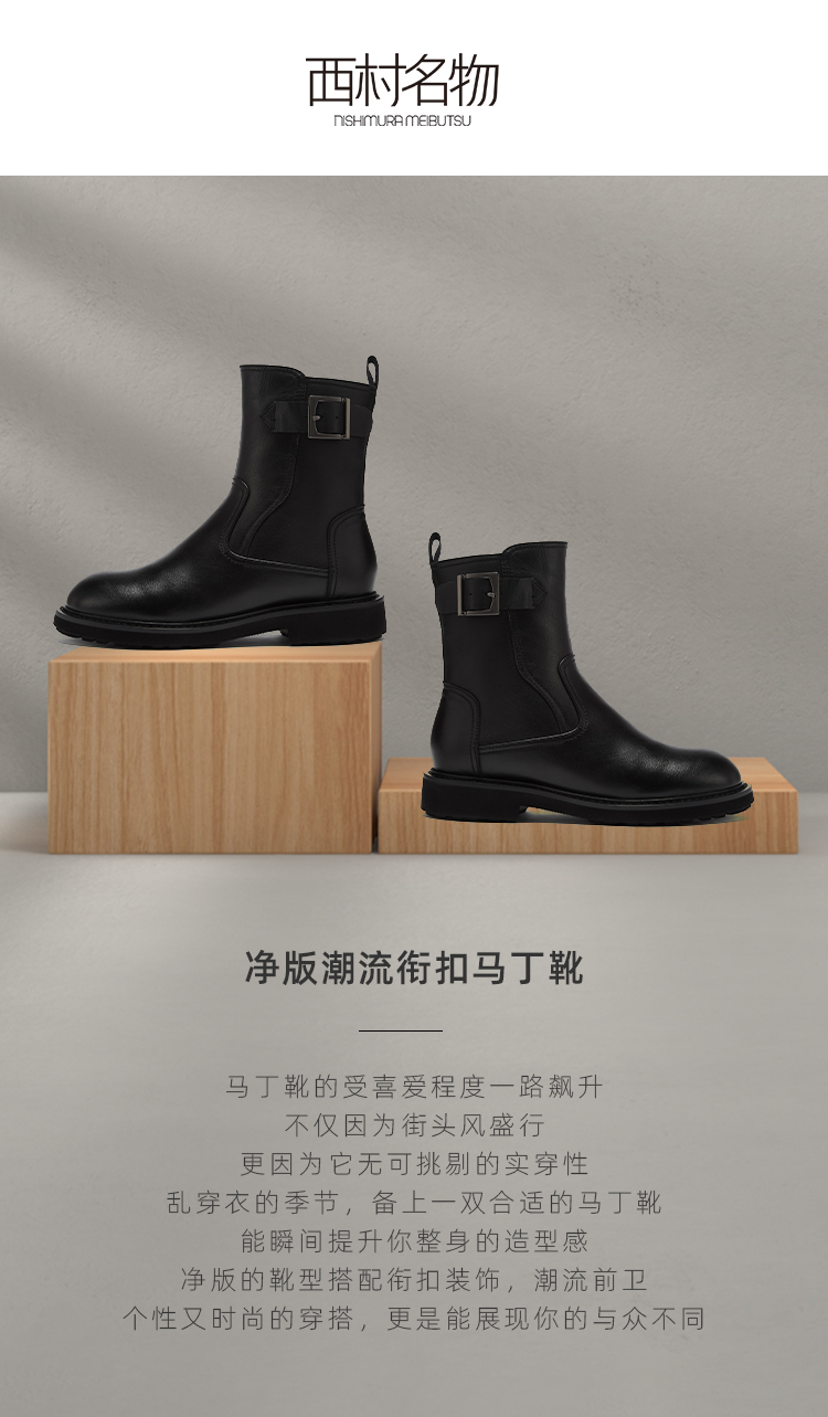 西村名物2021春季新款马丁靴女英伦风潮ins牛皮短靴女靴女鞋X20DC42341