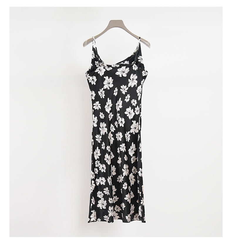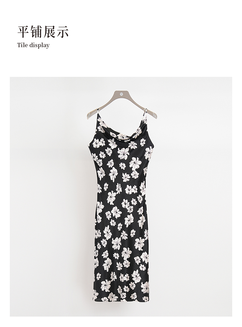 NUTS商场同款夏季黑白拼色时尚气质宽松碎花吊带连衣裙428102211