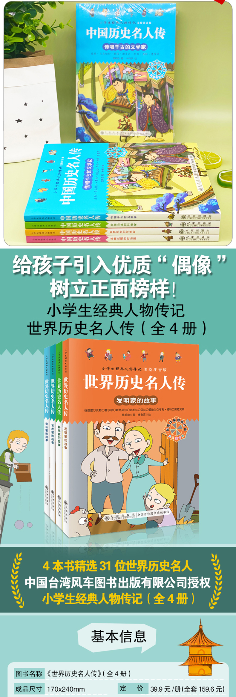 中国世界历史名人传全套8册彩图注音版经典写给孩子的中外名人传记故事历史知识读物老师推荐 小学生必读一二三年级课外阅读书籍