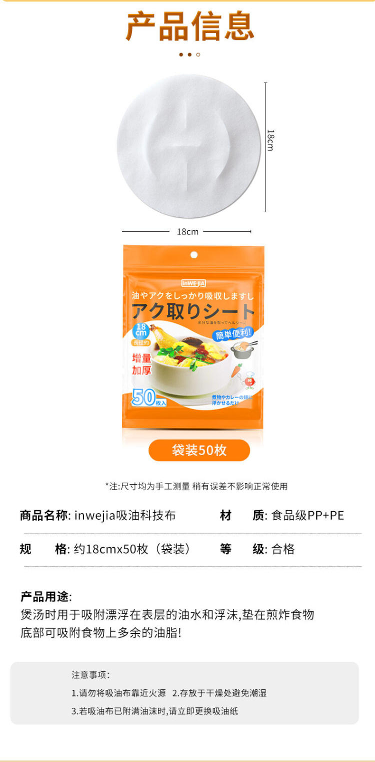 【吸油不长胖!】inwejia 吸油科技布 吸油纸袋装50枚/袋 食品级控油;瞬吸减脂;遇水不回渗