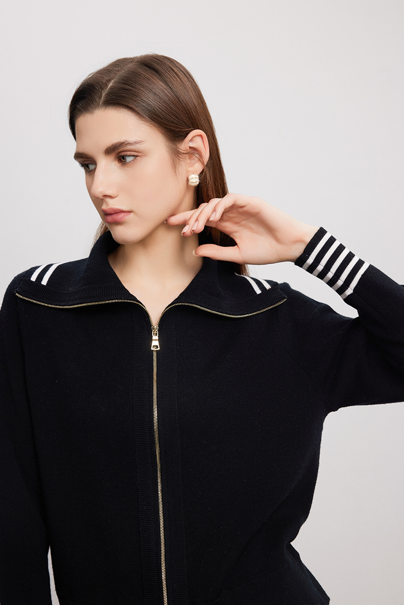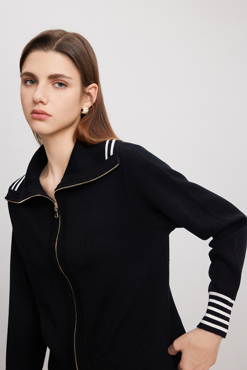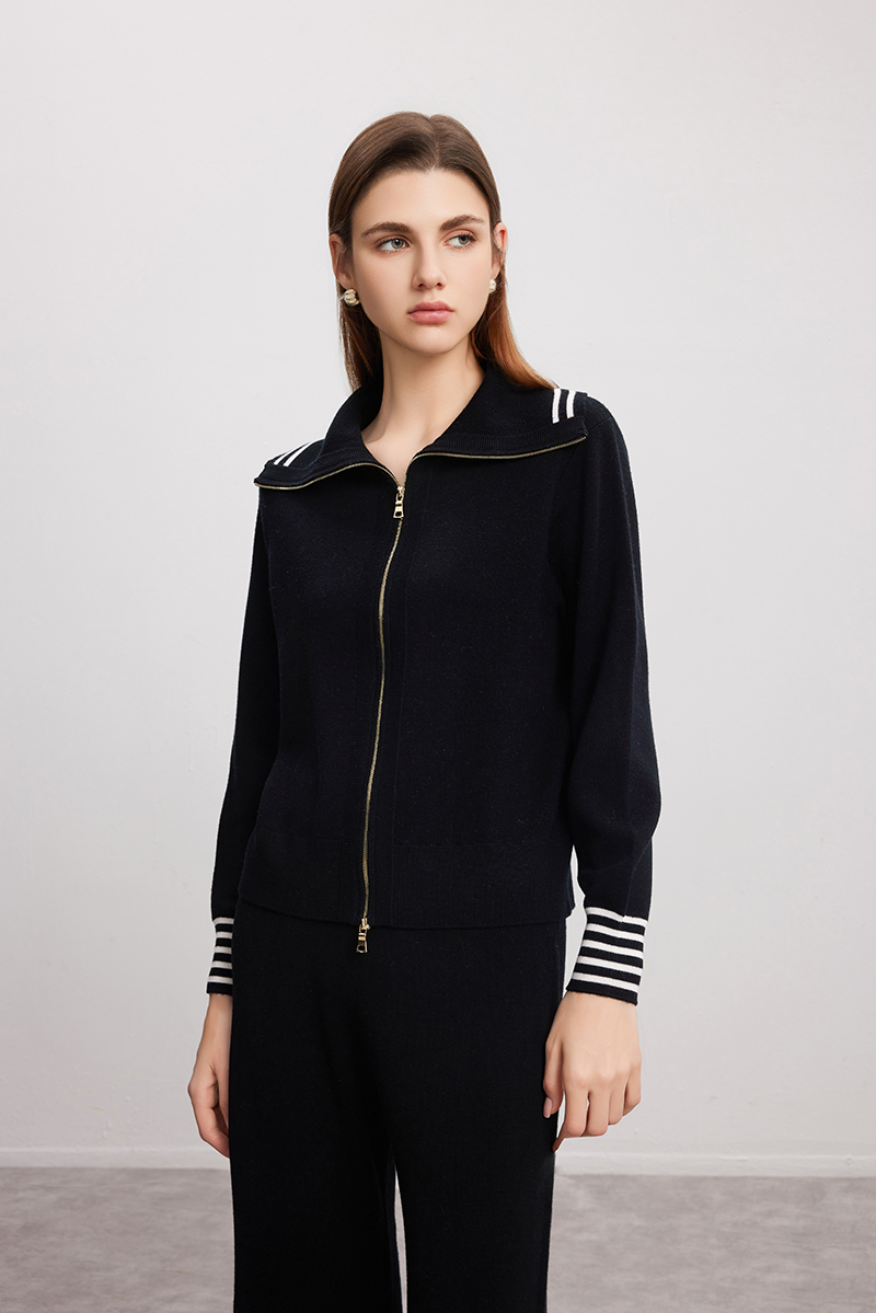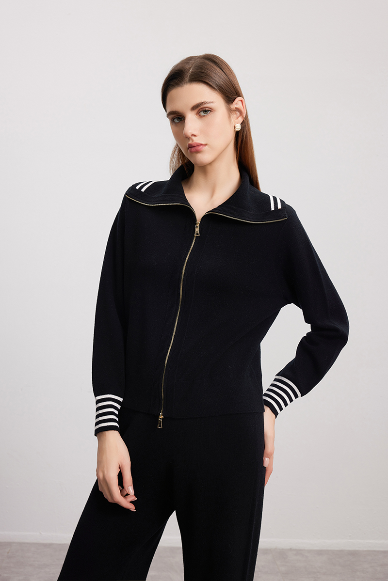 【条纹羊毛针织开衫】24年秋冬新品女士100%羊毛条纹撞色针织保暖外套