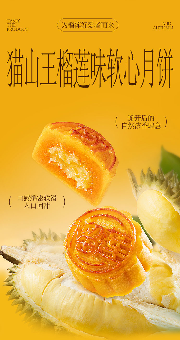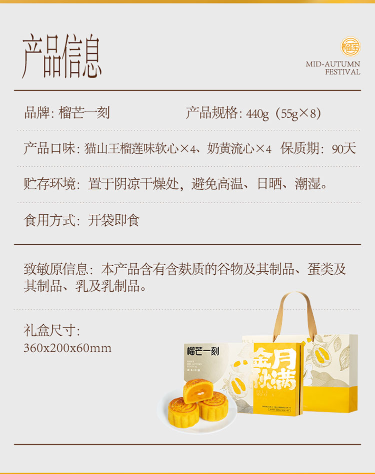 2025年中秋榴芒一刻 常温款猫山王榴莲+奶黄软心月饼礼盒55g*8枚*1盒【配手提袋】