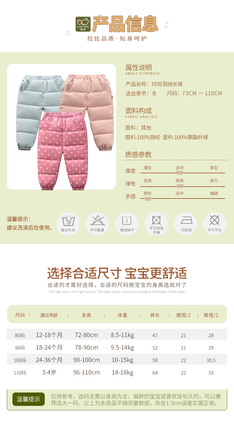 拉比-童衣类(冬)C9时尚羽绒长裤玫瑰红
