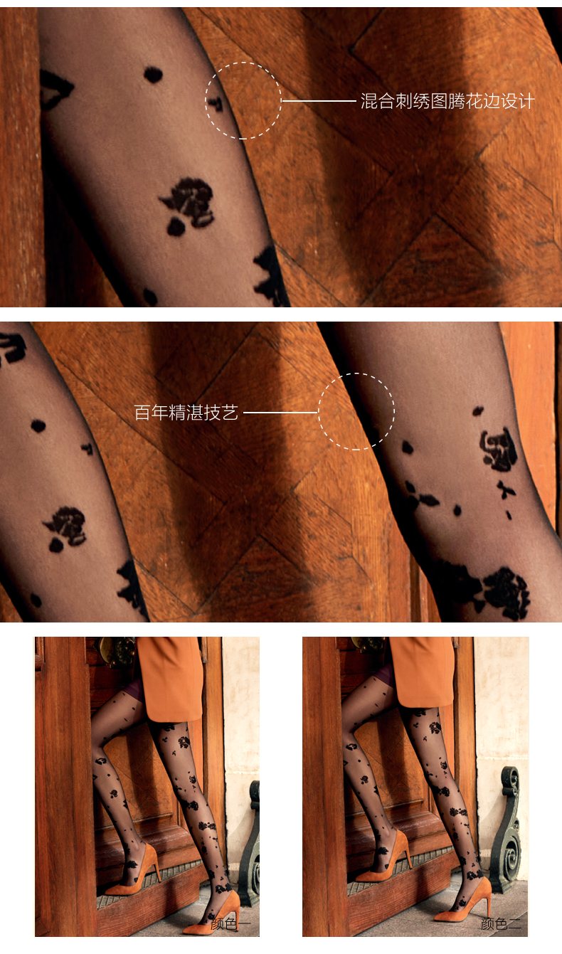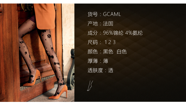 Gerbe格伯 法国原装进口连裤袜 优雅山茶花刺绣女丝袜 GCAML 21d