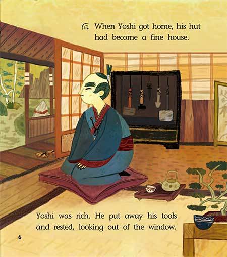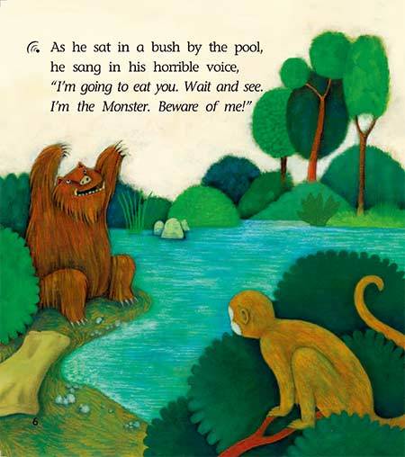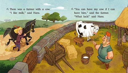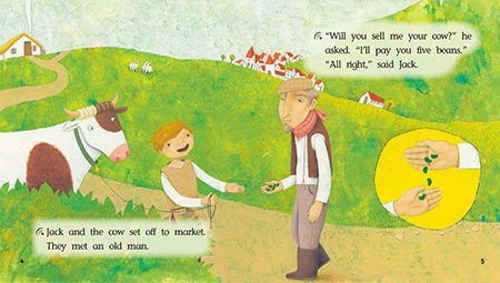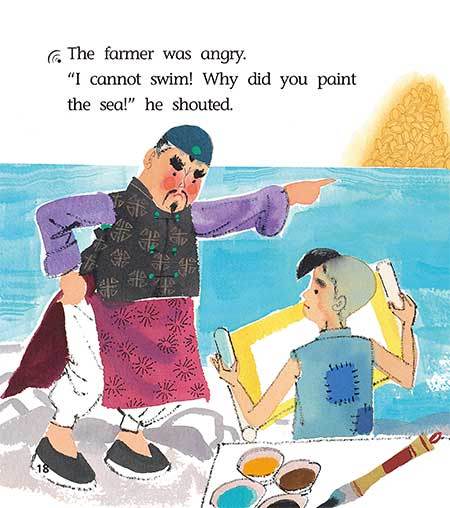 当然,绘画的精彩并不仅在于它们的画法,还在于它们所讲述的故事。这套读物共24本,讲述了世界各国24个知名的童话和民间故事。简单到用一个单词的句子就表达清楚的画面,却滋润着人生的哲理。不过,绘画再精彩,故事再经典,也要回到我的本行“学英语”这个角度来评价这套读物。像分级、语言地道、配CD、支持点读笔、家庭阅读指导、附后的中译文都不用说啦,外研社出版分级读物已经越来越有套路了,我蛮喜欢每本书的故事复述环节,小小的一页,浓缩了前面故事的核心画面,让孩子们看着这些画把故事讲一遍,理解程度、概括能力、关键用词一听便知了。