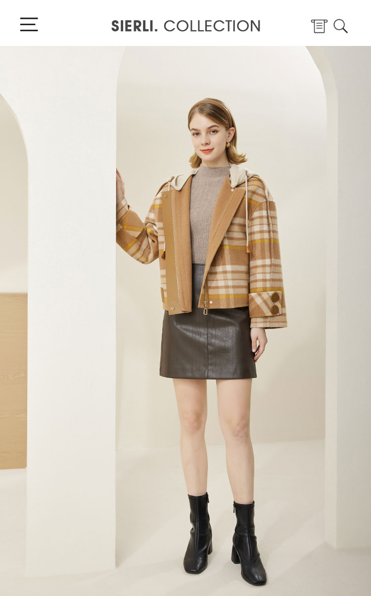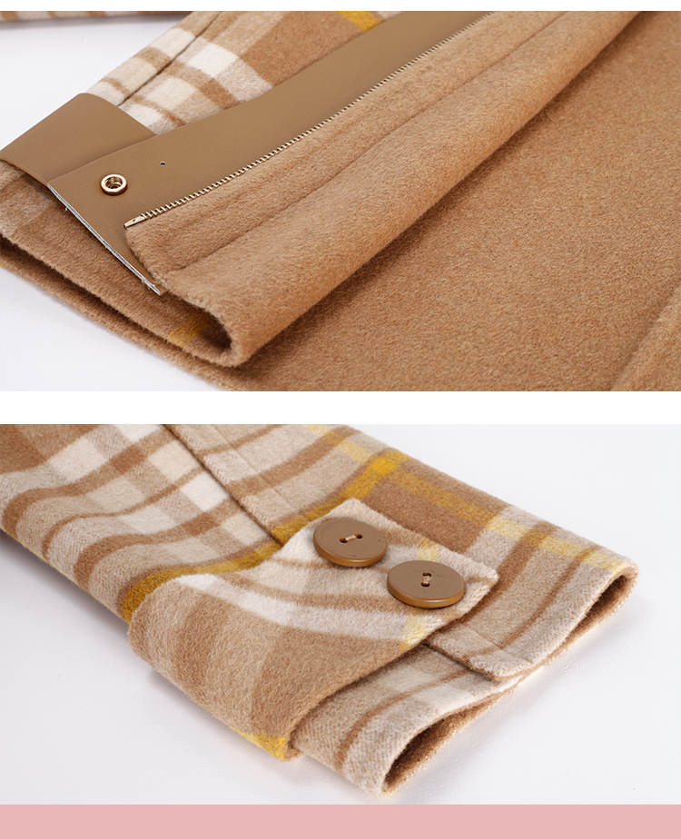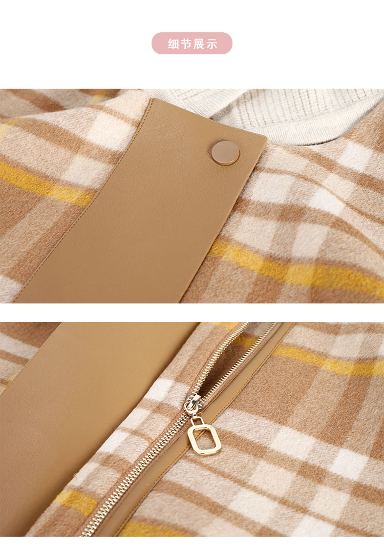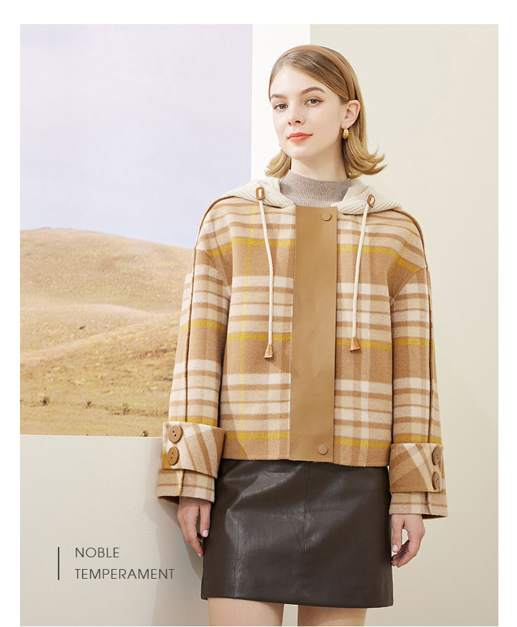 MD919斯尔丽瑟俪2022年冬上新时尚格纹拼针织帽大衣