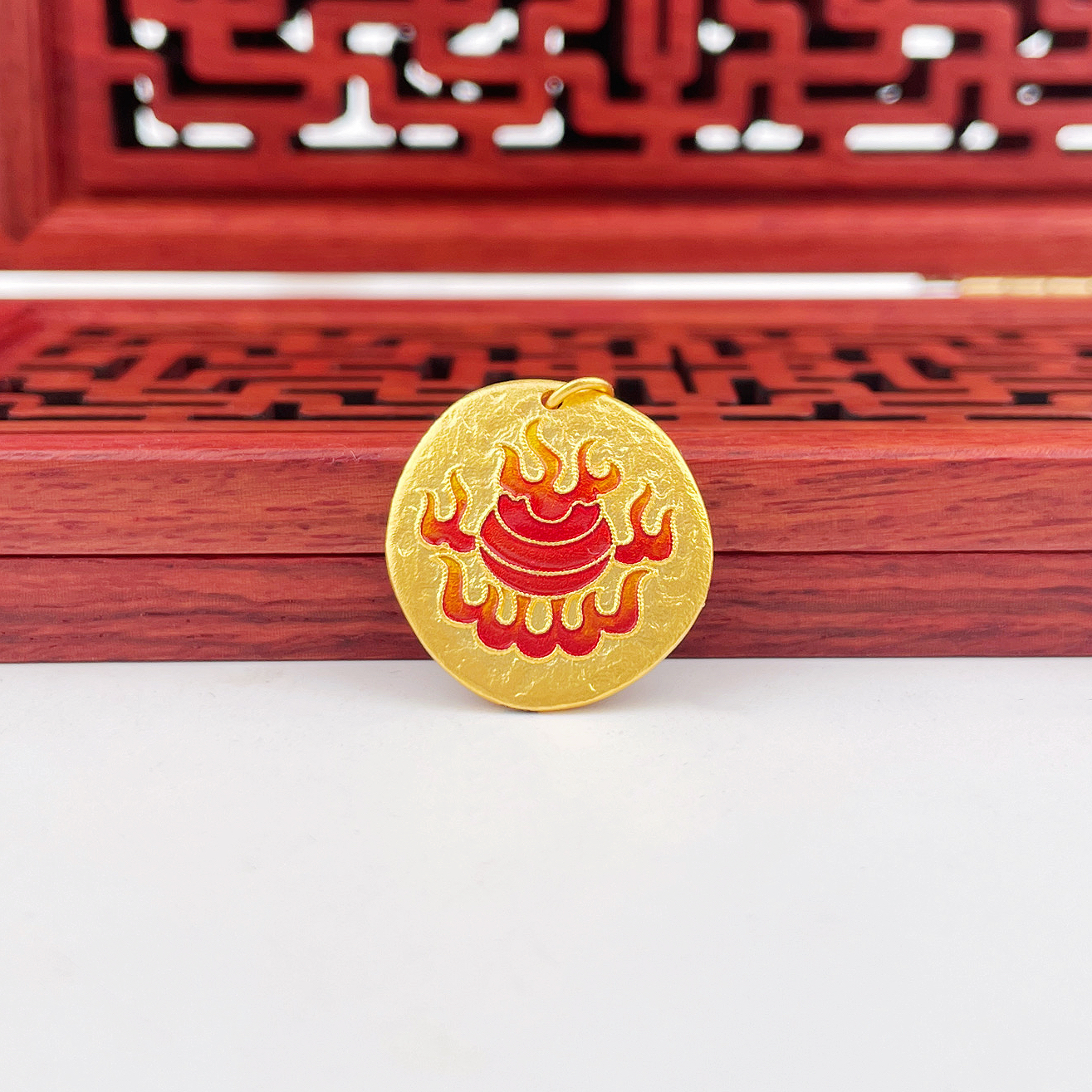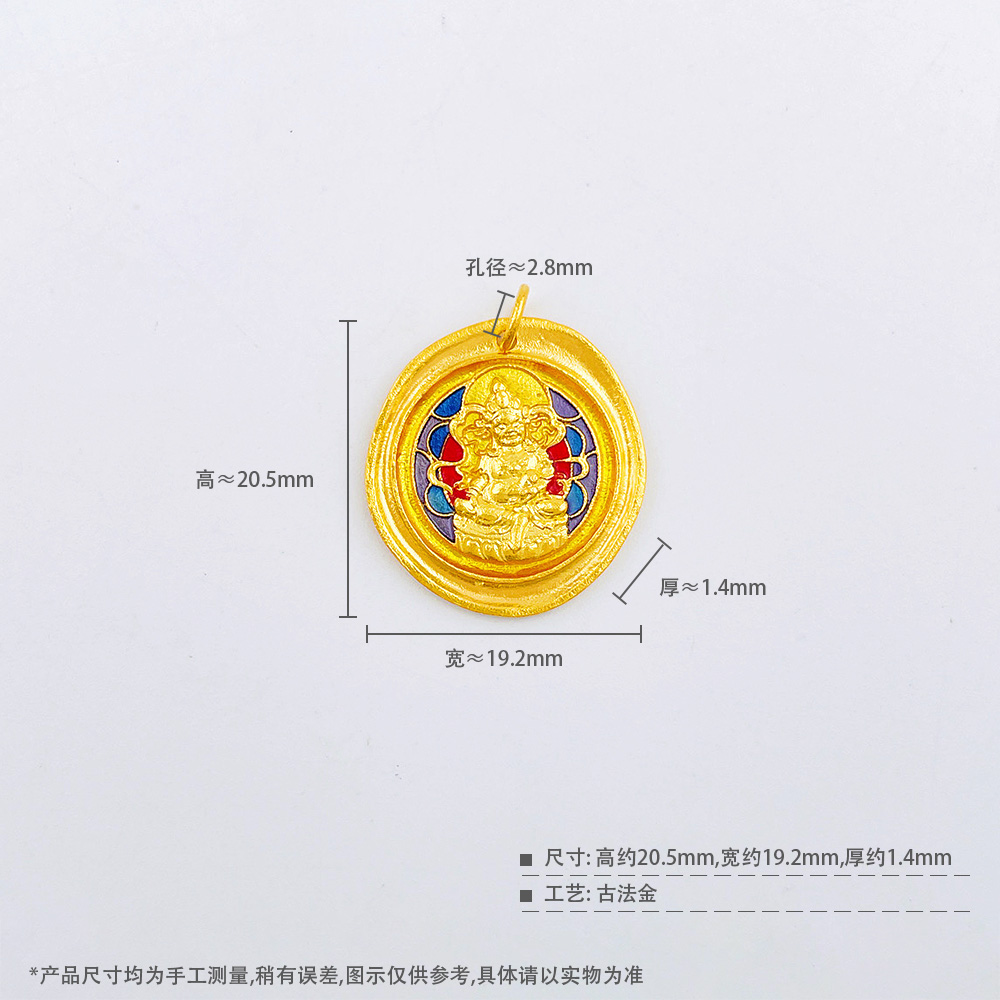 【限时克减150元】足金 古法实心低温珐琅如意圆牌吊坠黄财神手串配件Diy手串配饰(AMGFSC01334)(预售产品下单后不退款不退货不换货不补差价