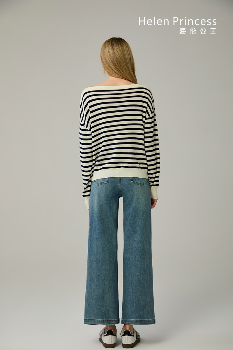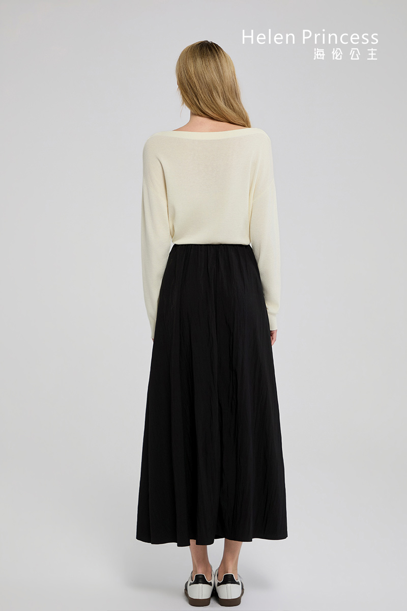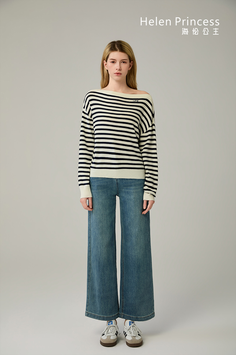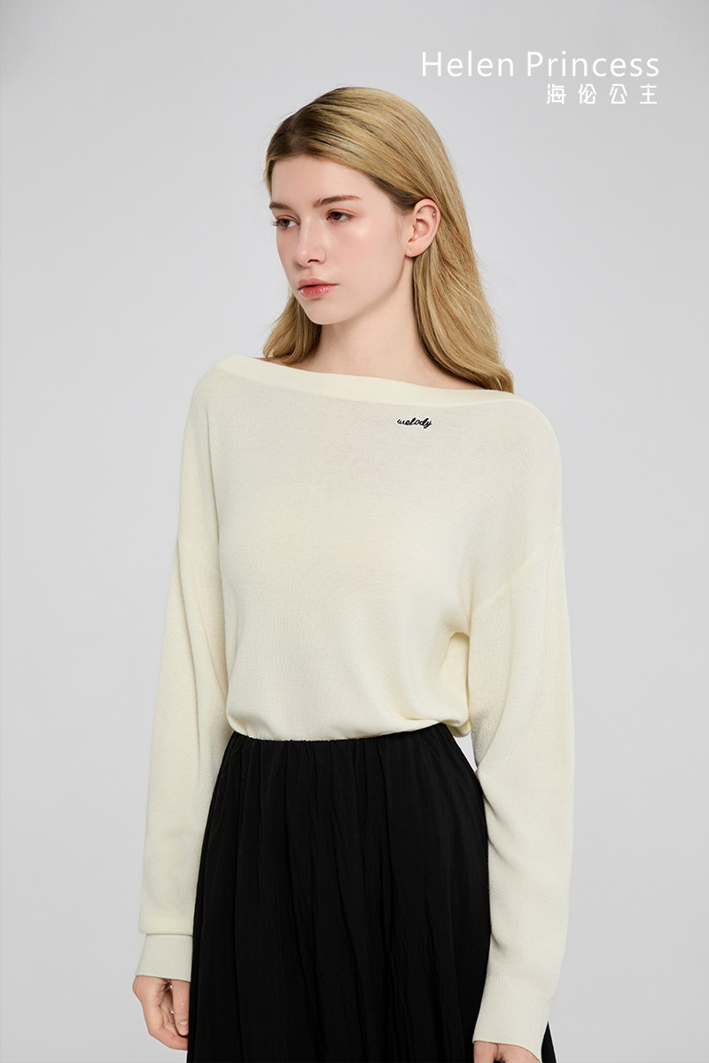 一字领设计修饰颈部线条,柔美自然。落肩长袖版型慵懒随性,轻松打造休闲自在的日常造型。领口处点缀小巧字母刺绣,简约而不简单,丰富细节质感。